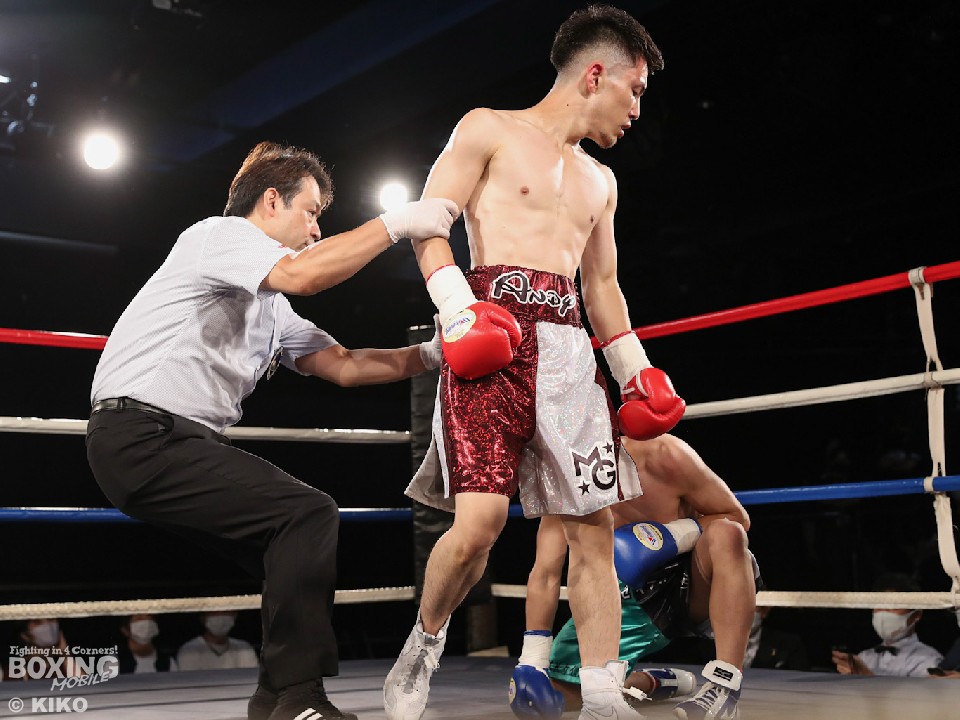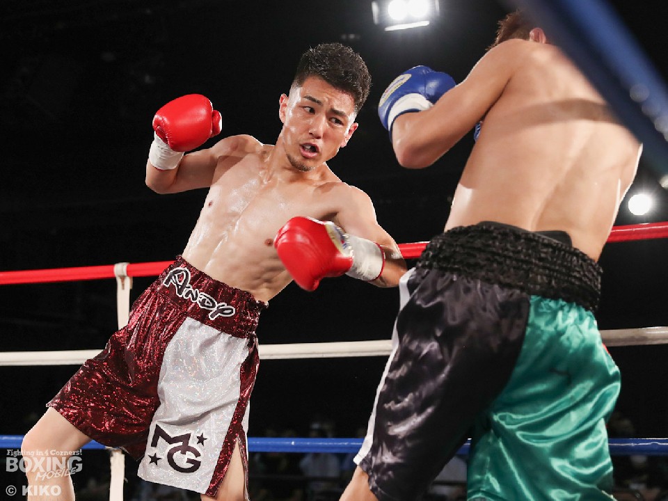 試合:ジャブから左ボディを削りあったアンディと根岸。初回から接近戦で上下左右に打ち合った。試合が決まったのは2回。ジャブと左ボディが当たり始めたアンディがパンチをまとめると、右ストレートでダウンを奪った。立ち上がった根岸は前に出てワンツーを繰り返すが、徐々に詰められ、クリンチで追撃を回避するもアンディのパンチが連続で当たったのを見てレフェリーが試合を止めた。