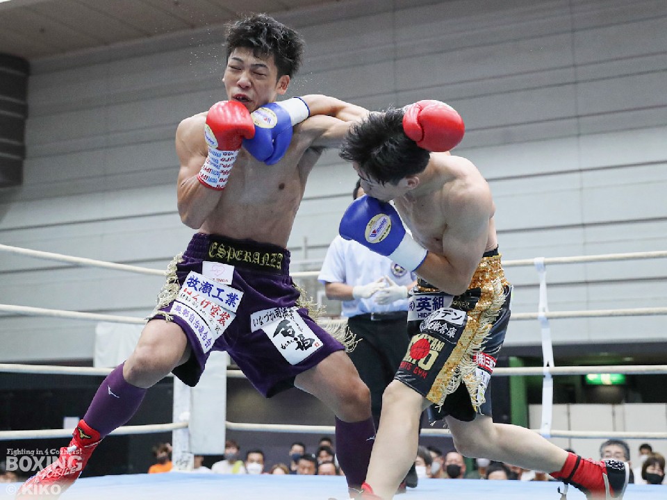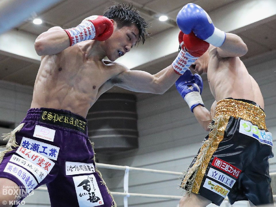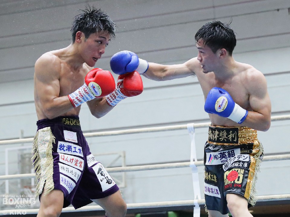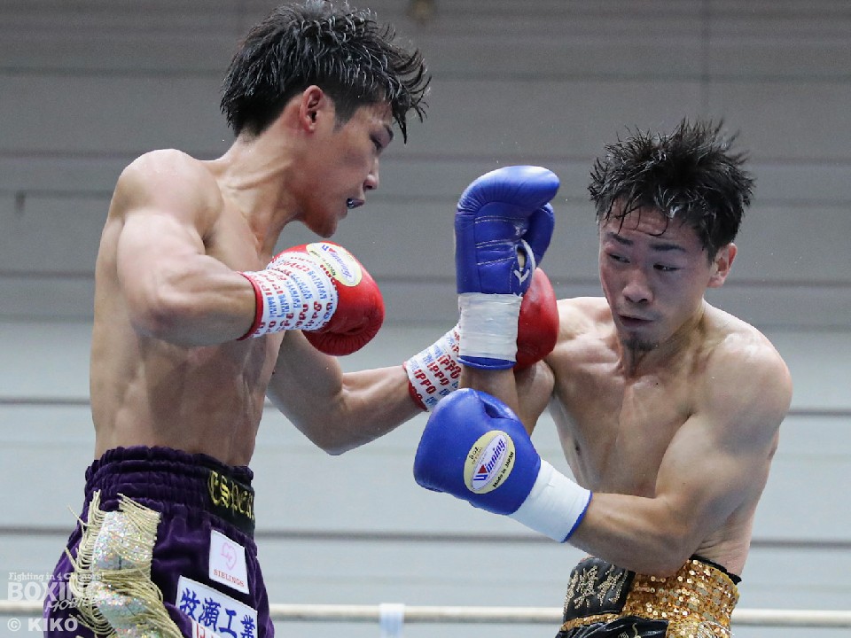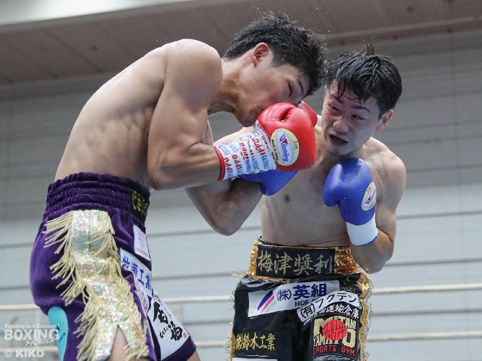 試合:梅津がプレスをかけて、ワンツー左ボディをヒット。対する小林はジャブから左ボディを返す。初回は梅津の力強いパンチが光った。2回、小林はジャブから組み立てると左ボディを好打。梅津もコツコツとボディにパンチを集めて譲らず。3回、梅津はコンパクトなコンビネーションで攻め立てるが、小林も右カウンターから左右をまとめて対抗。消耗戦が続いた。4回、梅津は上手くポジションを入れ替えながら上下に打ち分け見栄えの良さをアピール。5回、小林は左ショートアッパーから左ボディを痛打。豊富な手数を繰り出す梅津に対し、メリハリのある攻撃を見せた。梅津は偶然のバッティングで左目尻をカットした。最終6回、ボディへの細かいパンチを集めたのは梅津。小林も懸命にパンチを返した。ジャッジ2者の支持を得た梅津が敵地で価値のある勝利を挙げた。
