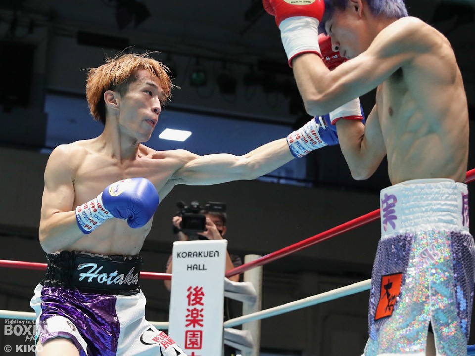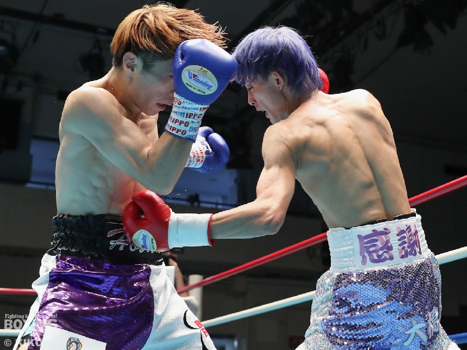試合:173㎝の島田がジャブを飛ばすが池田は左で圧力をかけて左フックをヒット。デビュー戦の緊張を感じさせずグイグイと前に出た。2回、島田は足を使いながら右で迎え撃ち、ジャブを軸に組み立てた。3回、池田は臆することなく、距離を詰めて右を強振。なかなか決定打を打ち込めない池田だが4回、ワンツーを決めてダウンを演出。立ち上がった島田だったが10カウントが数え上げられた。