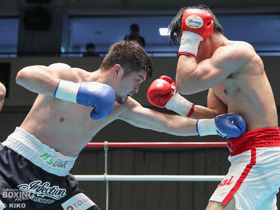 試合:赤井がジリジリと距離を詰めて右フックを強振。対する左右田は、距離を取りながらジャブから組み立てた。2回、左右田は上下のコンビネーションを決めて攻勢。被弾した赤井だが、臆することなくパンチを返して気持ちの強さを見せた。3回、赤井はプレスをかけて左を突いて反撃。しかし、相手のパンチを真正面から浴びてしまう。4回、左右田はワンツー、左ボディをヒット。赤井も最後まで食い下がった。有効打で上回った左右田がジャッジ2者の支持を得て勝利した。
