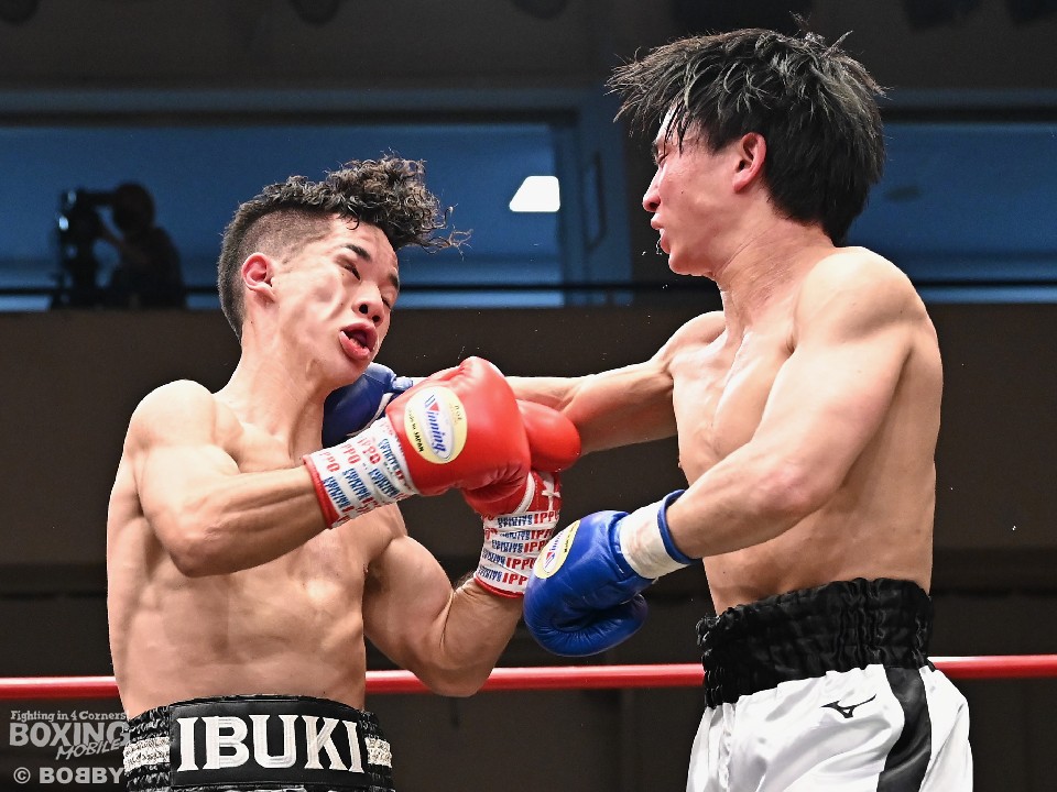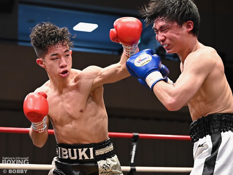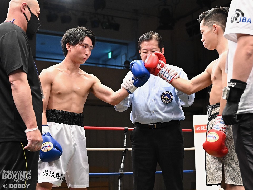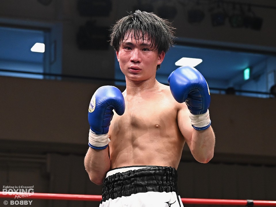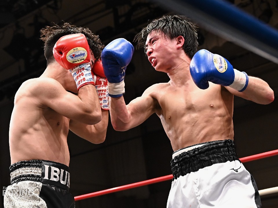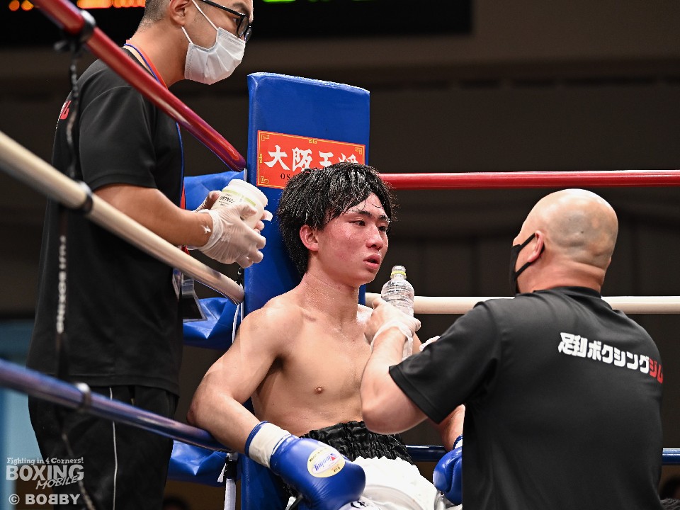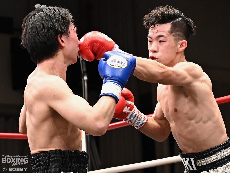 試合:飯野が距離を詰めてワンツー左フックで先制攻撃。しかし、釜石はガードで被弾を回避すると右カウンターを好打。落ち着いた試合運びを見せた。2回、顔面を紅潮させながらも手数を増やす飯野に対し、釜石のカウンターが冴えわたる。右アッパー、左ショートフックを織り交ぜた攻撃で見栄えの良さをアピールした。最終4回、飯野はギアを上げて細かいパンチを繰り出すと右フックを振り抜きダウンを演出。再開後、畳みかけると防戦一方になった釜石を見てレフェリーが割って入った。