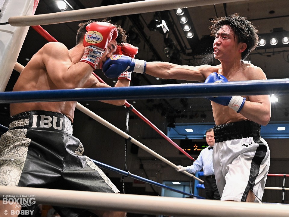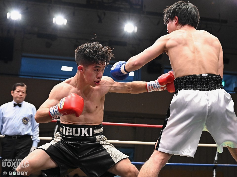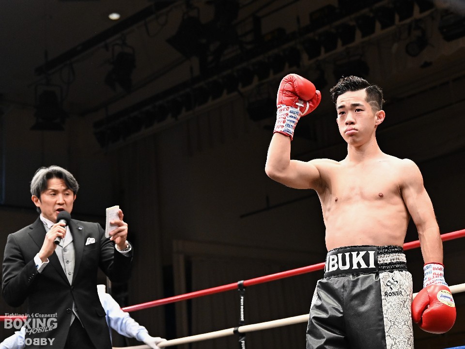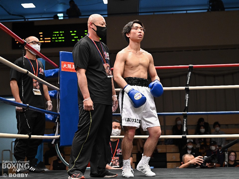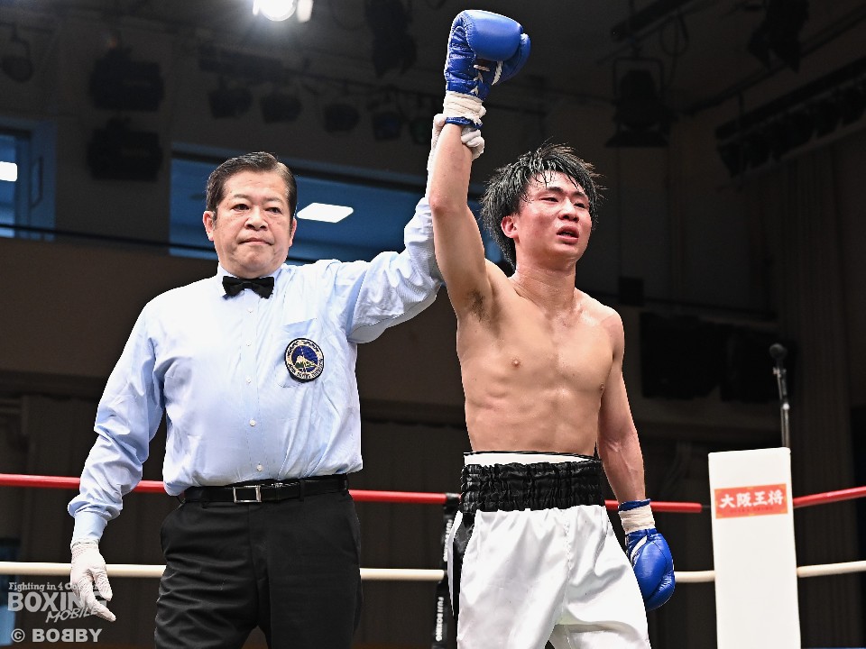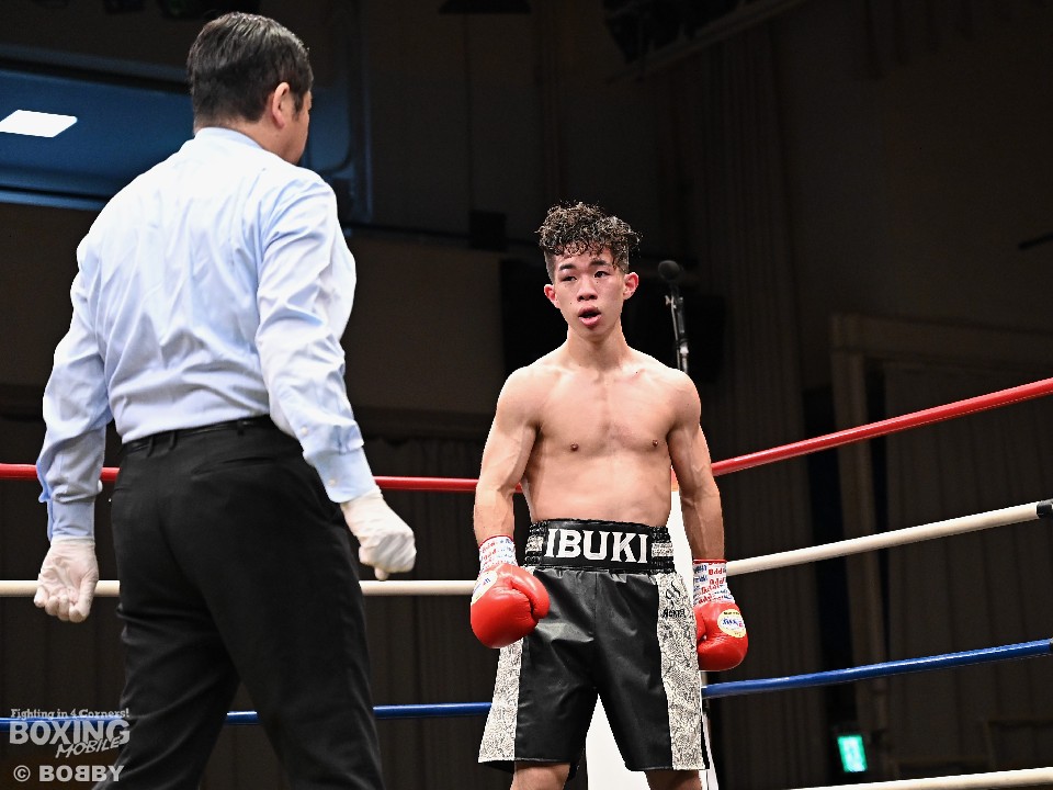 試合:飯野が距離を詰めてワンツー左フックで先制攻撃。しかし、釜石はガードで被弾を回避すると右カウンターを好打。落ち着いた試合運びを見せた。2回、顔面を紅潮させながらも手数を増やす飯野に対し、釜石のカウンターが冴えわたる。右アッパー、左ショートフックを織り交ぜた攻撃で見栄えの良さをアピールした。最終4回、飯野はギアを上げて細かいパンチを繰り出すと右フックを振り抜きダウンを演出。再開後、畳みかけると防戦一方になった釜石を見てレフェリーが割って入った。