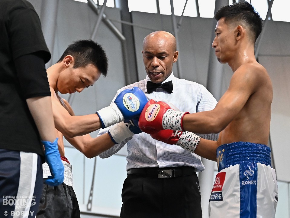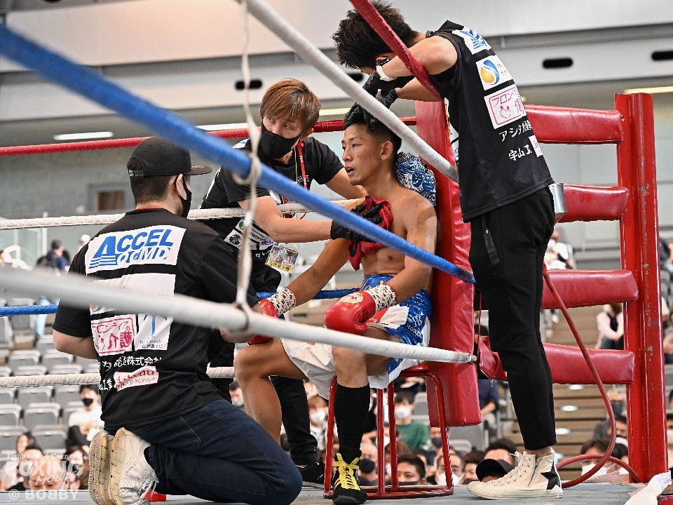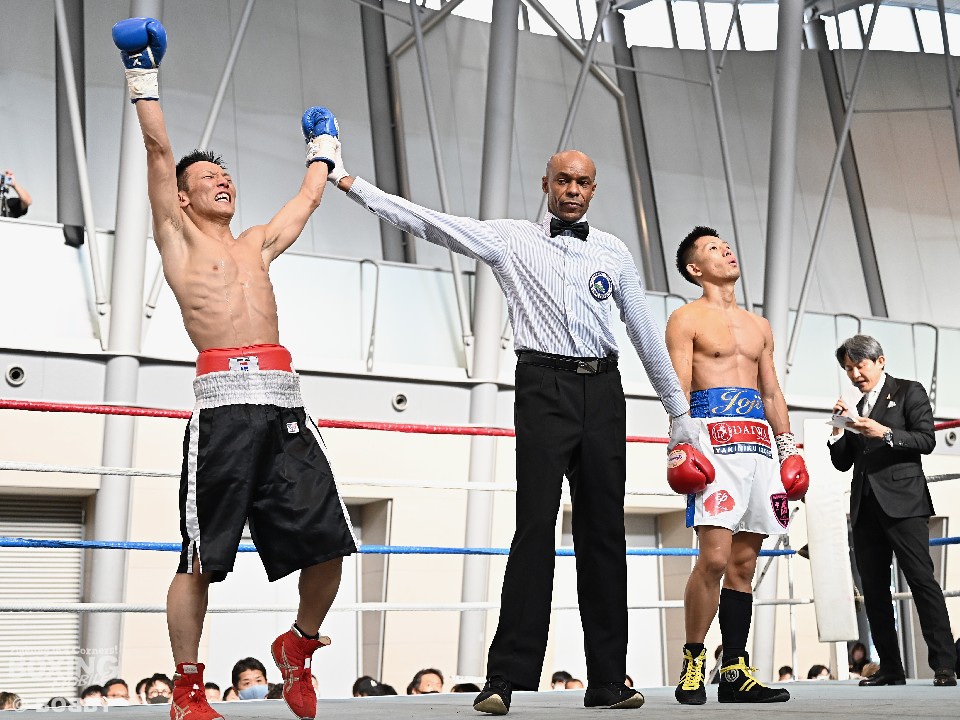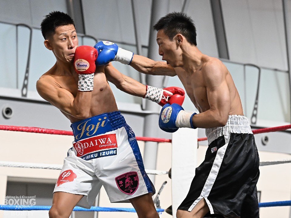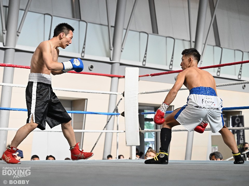 試合:プロデビュー戦を迎えた大坪とプロ初勝利を目指す山田が対決。ガードを下げて誘った大坪は、山田のパンチを上体をそらして外すと時折スイッチしながら左を見せた。中に入りたい山田は2ラウンド、ジャブで距離を測るが、タイミングが取れず。中間距離からの距離の潰し合いが続いたが、互いに手数は増えず。最終回、大坪が前に出て先に仕掛けるが、山田と足を使って、ウイービングしながら、被弾を回避した。