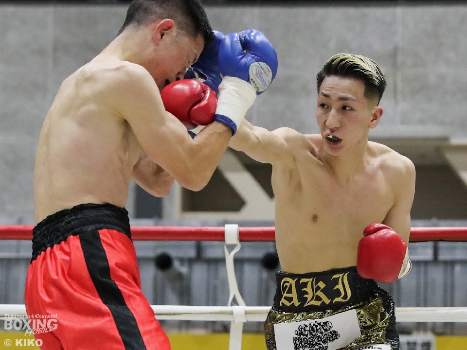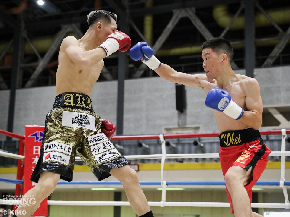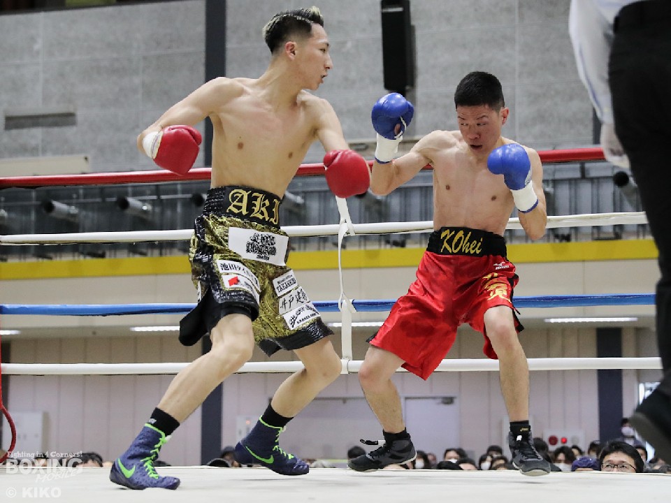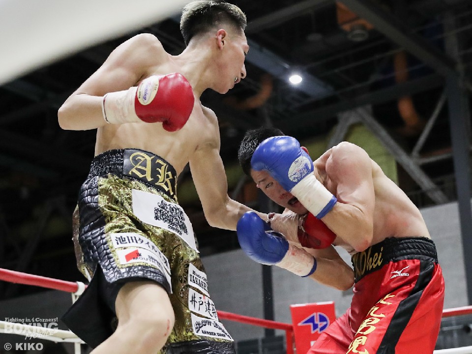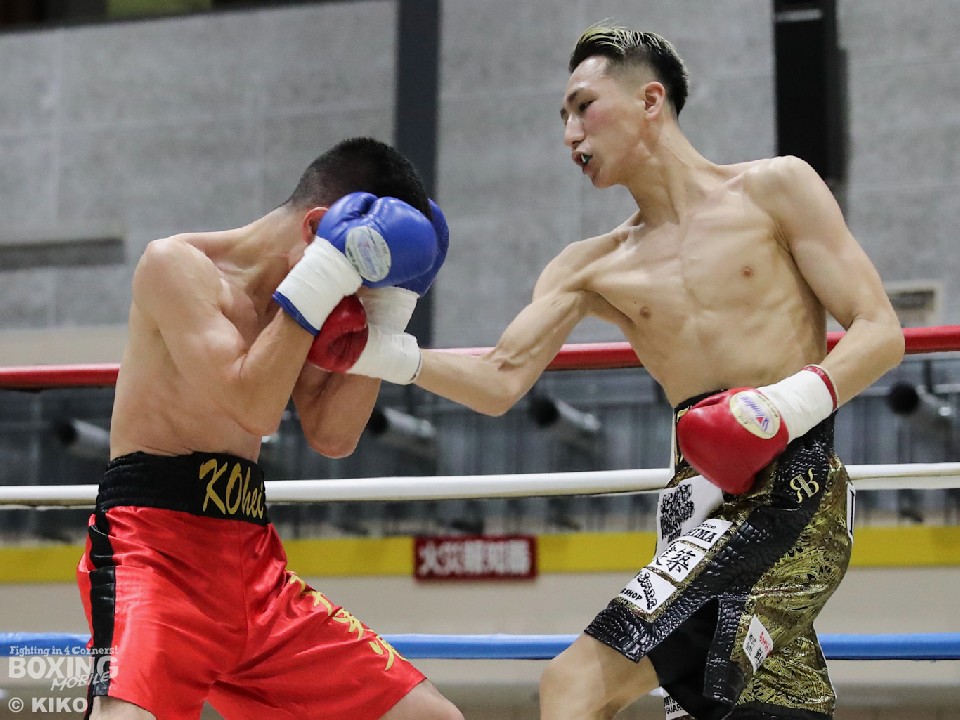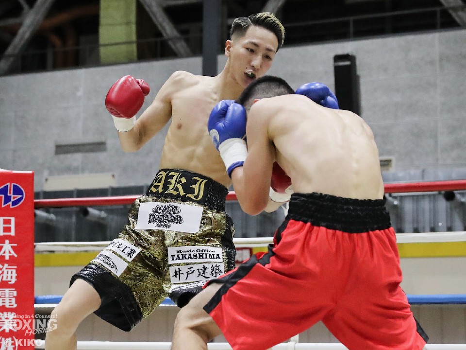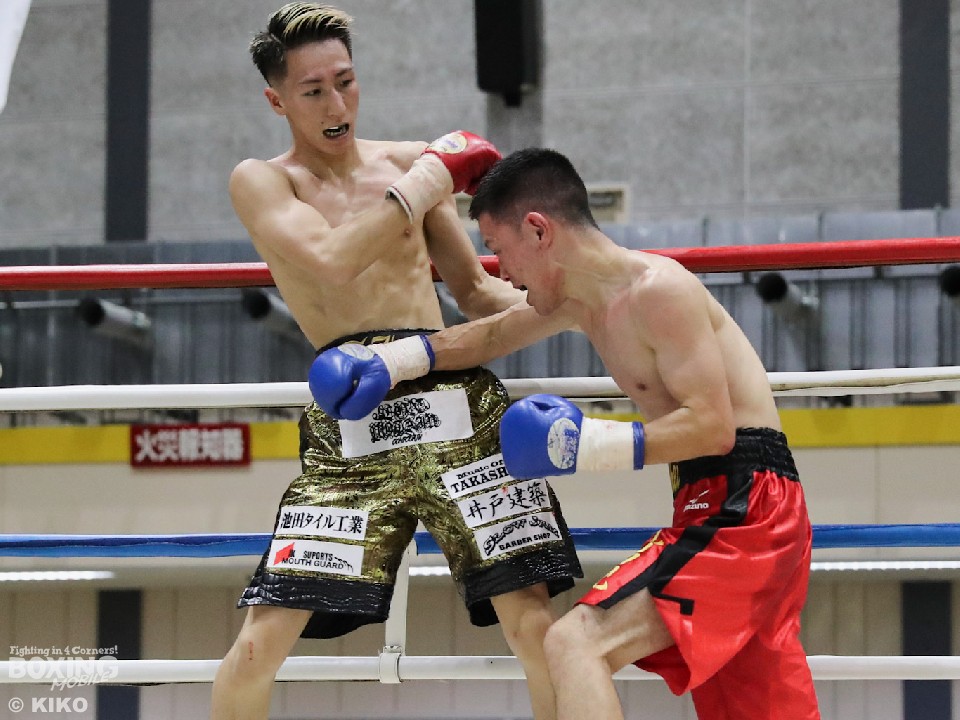 試合:プロデビュー戦の高島と7戦目の百田の対決。長身の高島に対して、百田はガードを固めて、頭を左右に振り子のように振りながら前に出て右ストレートと左右のボディの連打でコーナーに詰めた。左のリードで距離を保つ高島は2回、一気に左右の連打を中間距離から放って、ペースを掴んだが、百田はガードを固めて決定打を回避し、下がらず前で応戦した。3回、高島は中間距離から右ストレートに右アッパーと左右のボディを打ってペースをキープするが、ガードを下げたところに百田は右ストレートを打ち込むと接近戦に持ち込んで、左右のボディを叩いた。最後は両者ともに頭をつけて離れ際に打ち合った。ジャッジは3者ともにボクシングセンスを見せた高島を支持した。