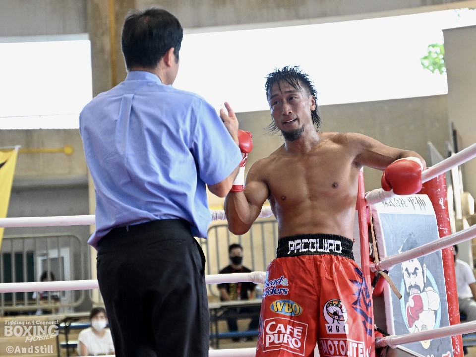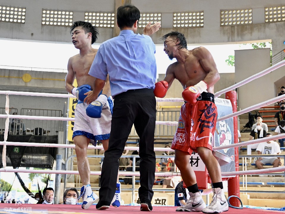 試合:独特のリズムで前に出て左右フック、右オーバーハンドを振る浜崎に対し、B級デビュー戦の砂川はジャブを差し、スピードのある逆ワンツー、右ボディ、右のトリプルと豊富なコンビネーションで攻勢をかける。2回、クロスレンジの打ち合いから、砂川は一度距離を外し打ち込んだワンツーでダウンを演出。再開後、プッシュしながら上下に回転力のあるパンチを繰り出し、主導権を強固に握った。3回も砂川は右アッパー、左右フックと多彩なコンビネーションで着実にポイントを加点。4回、砂川はさらに猛攻を仕掛け、豊富な手数で攻め立てると、動きが鈍くなった浜崎を見て陣営が棄権を申し出た。砂川がデビュー戦をKO勝利で飾った。