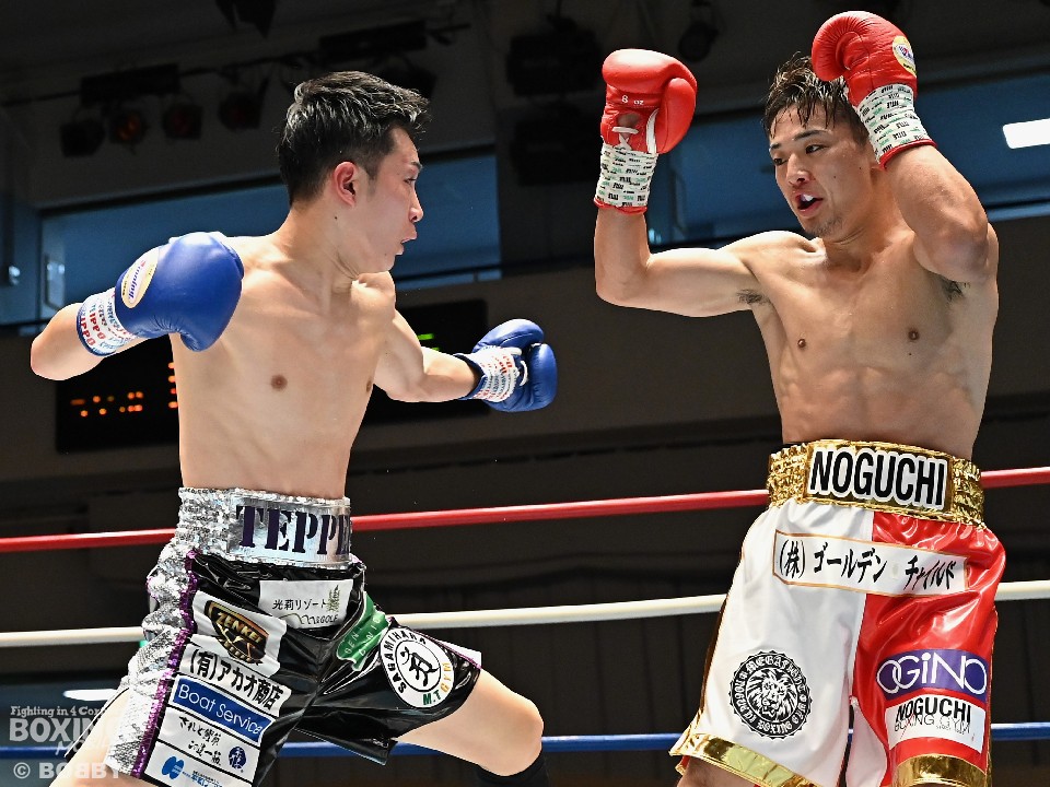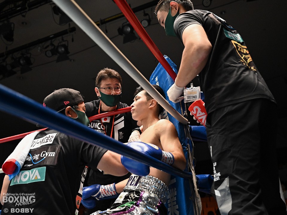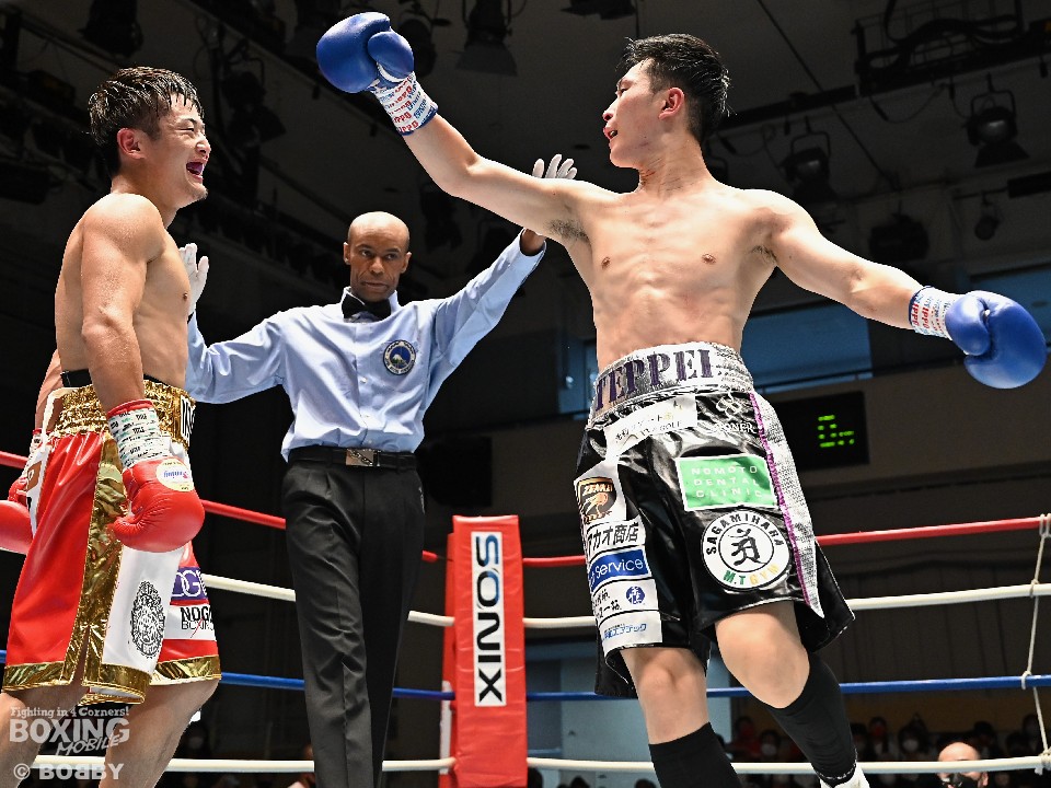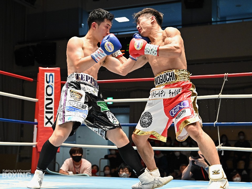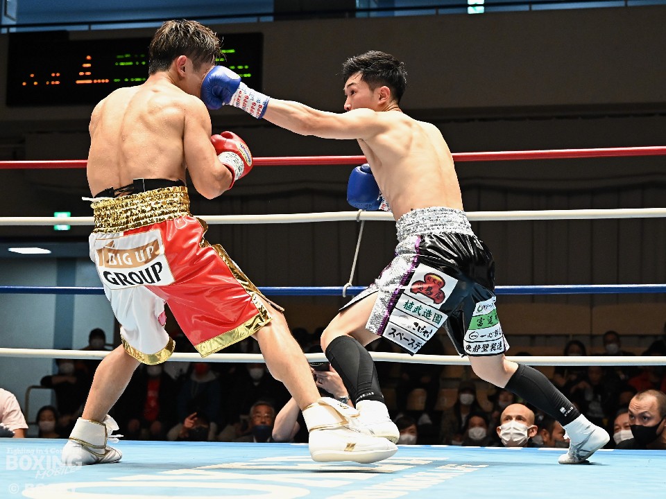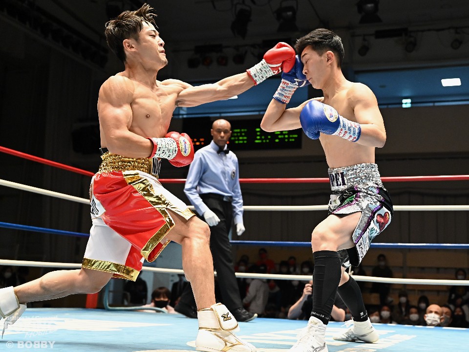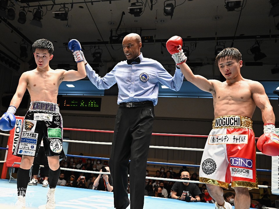 試合:サウスポー篠田が前の手で距離を測りながら左を狙うのに対し、齋藤は右フックを合わせて対抗。2回も篠田は思い切りの良い左スィングで脅かすと単発の左をヒット。流れを変えたい齋藤は3回、打ち終わりに右ストレートを好打。グイグイと前に出る篠田と右カウンターを狙う斉藤の構図が続いた。最終6回、篠田の左が再三ヒット。最後まで倒しに姿勢を見せたが齋藤も粘りを見せてパンチを返した。ジャッジ2者が引き分けとし勝敗がつかなかった。