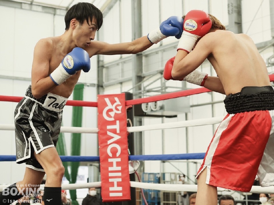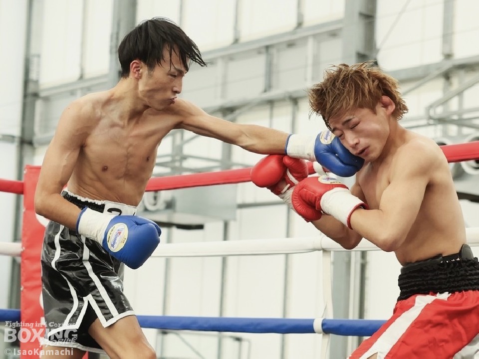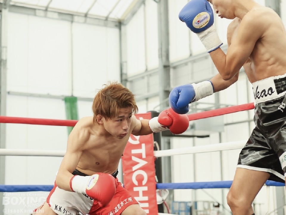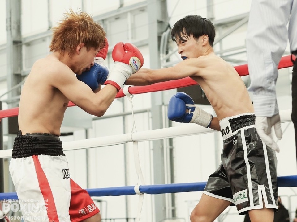 試合:初回から左右のフックを振り圧力をかける根岸に対し、冷静に左ストレートを放つサウスポー井上。2回、適所で左ストレートを当て続けた井上がこの回は優勢か。3回~4回と身体を預け上下にパンチを放つ根岸の打ち終わりを狙いパンチを返す井上がカウンターの左ストレートで好打をアピール。判定の結果、井上が3者の支持を得た。