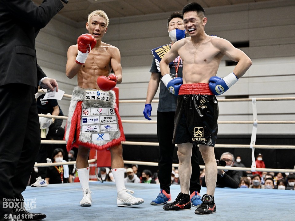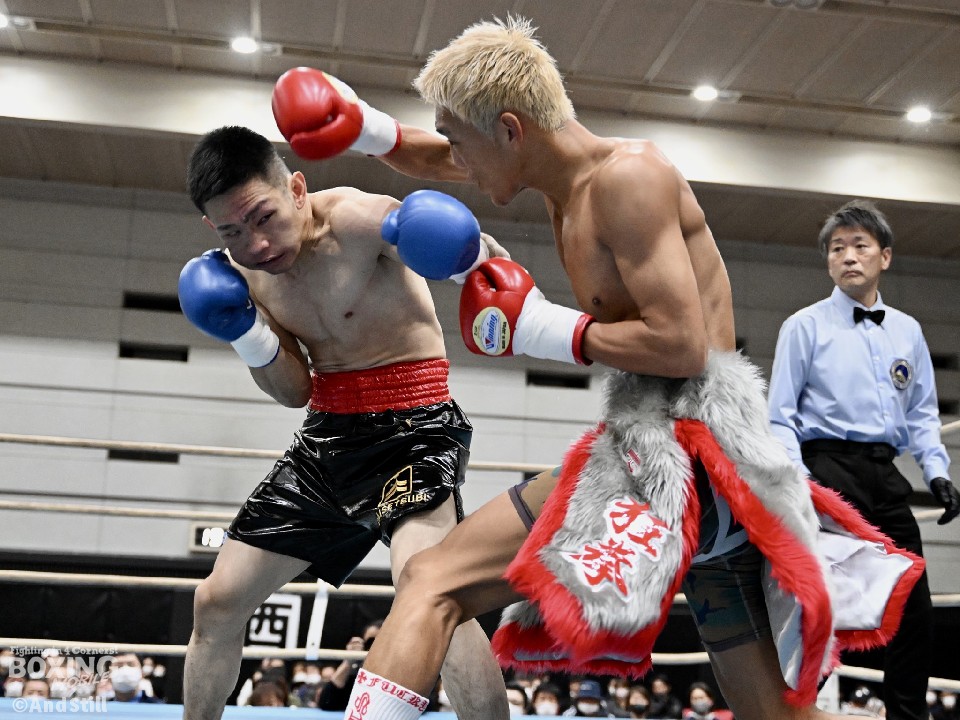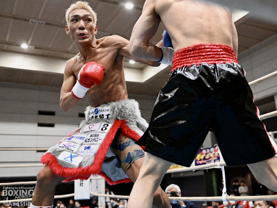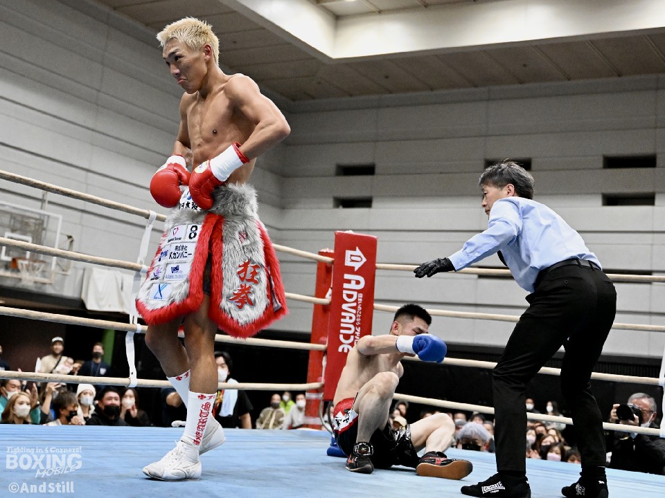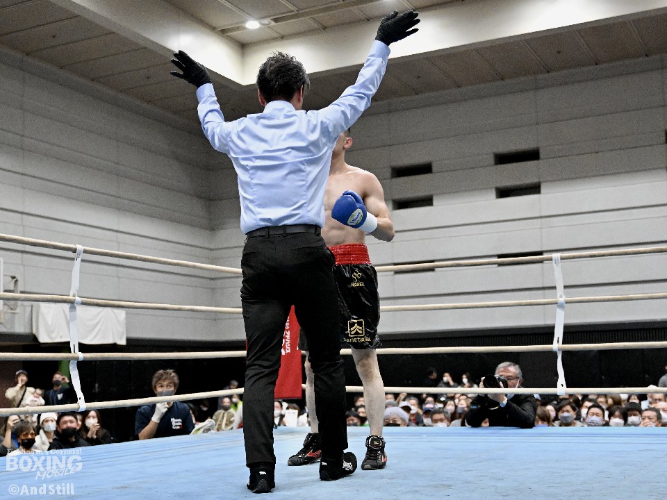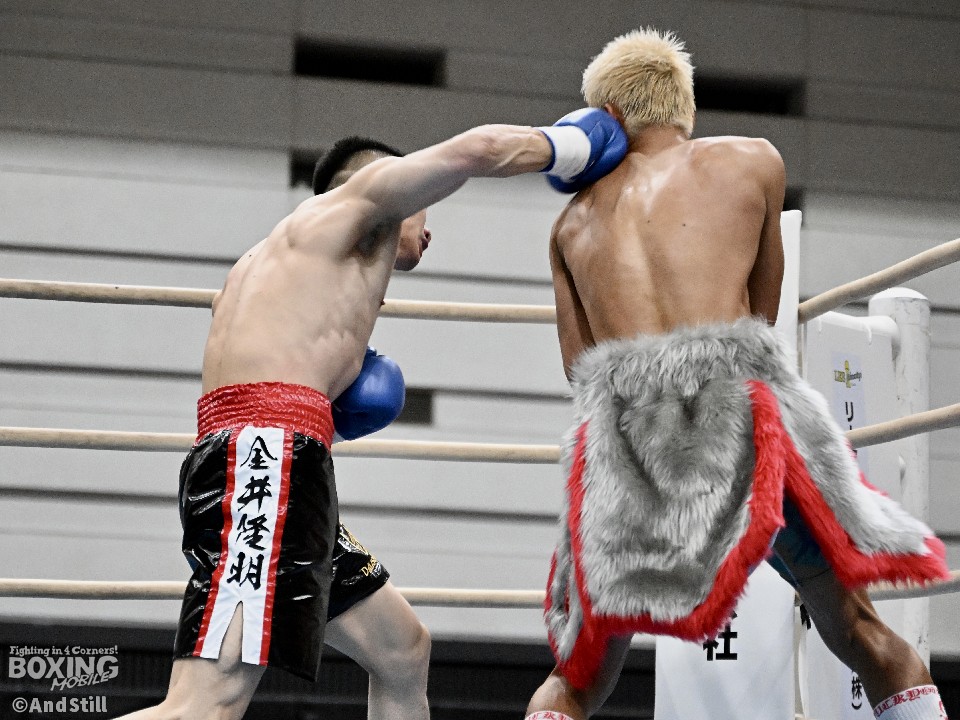 試合:亀田がシャープな左を飛ばしながら距離とタイミングを探る。対する金井はジリジリと距離を詰めて右を狙った。ラウンド終盤、亀田は右ストレートを好打し先手を奪った。2回、亀田は左ボディから右フックをねじ込み、見栄えの良さをアピール。スピードのある攻撃を披露した。臆することなく前に出た金井だが捉えることができず。勝負が決まったのは3回。亀田が左フックから右ストレートをジャストミート!痛烈なダウンを喫した金井は立ち上がったが、レフェリーは10カウントを数え上げた。亀田がインパクトのあるKO勝ちで再起2戦目を勝利した。