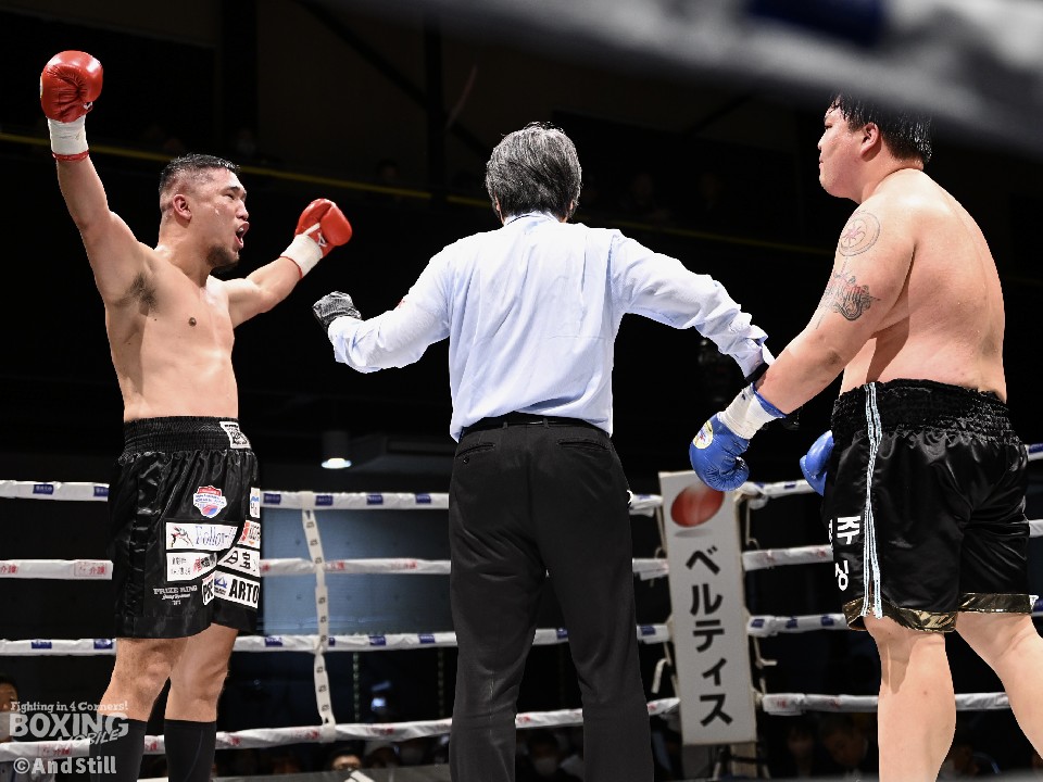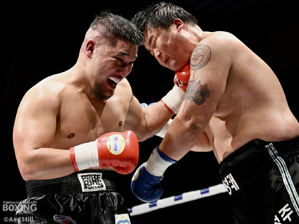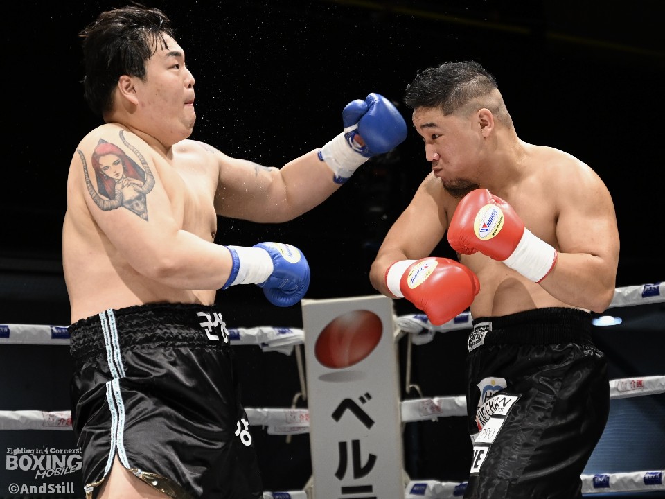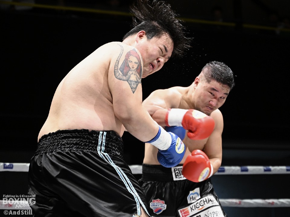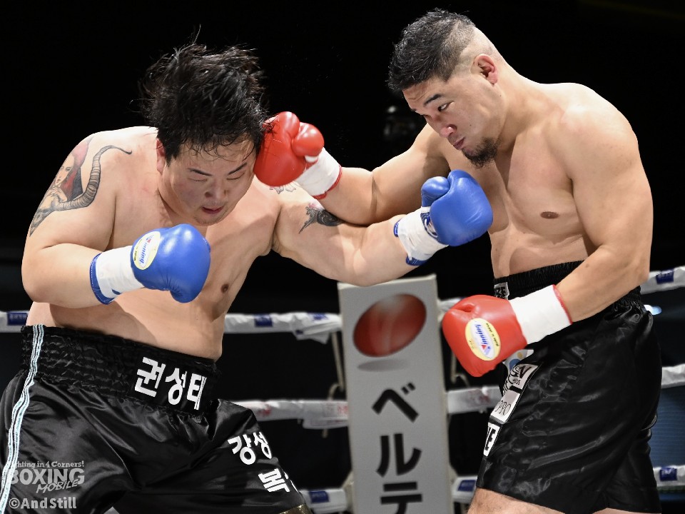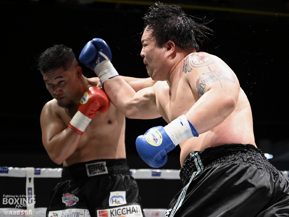 試合:開始から高山が左右フックをヒット。ヘビー級ならではの迫力に打ち合いに会場からどよめきが起こった。ラウンド終了間際、高山は前に出てくる相手に右フックを合わせてダウンを奪った。2回、高山は右ストレートを決めてジャッジに攻勢をアピール。3回、高山はスタミナが消耗したのか手数が減った。グオンは決定打こそ出ないものの、細かくパンチを出して攻勢をアピールした。最終4回もグオンは距離を詰めてアグレッシブに攻め立てた。前半にポイントを稼いだ高山が判定勝ちした。