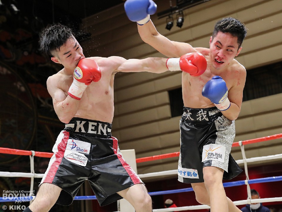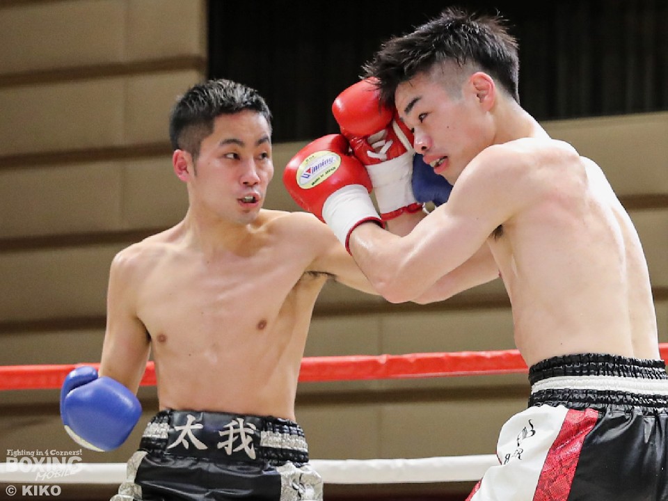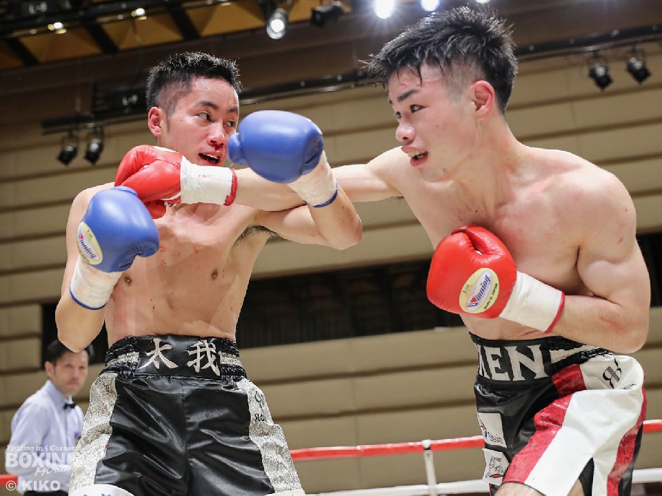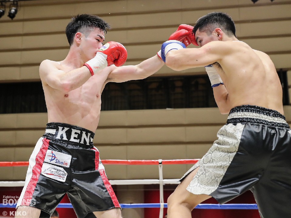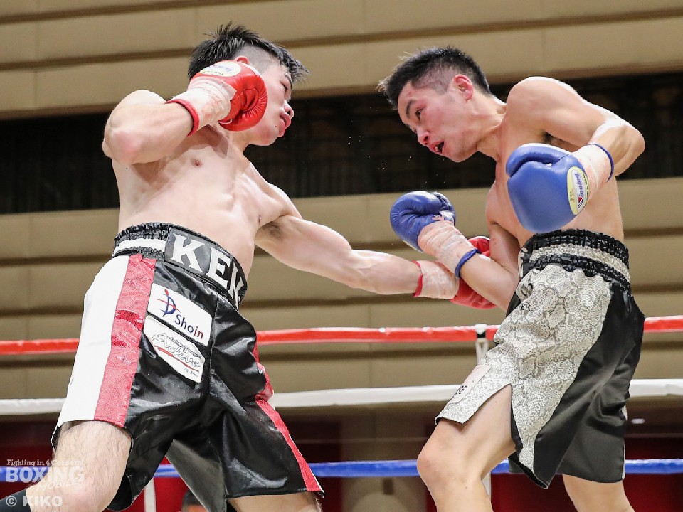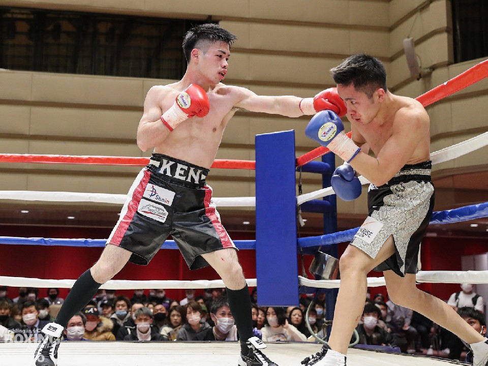 試合:距離を詰め左右のアッパーを強振する長尾に対しガードを上げ中間距離でパンチを返す渡辺。長尾の放った右の強打がクリーンヒット、先制のダウンを奪う。2回、3回と左右の強打を振りプレスをかけ続ける長尾と打ち終わりを狙いパンチを返す渡辺。最終4回、距離を詰め上下に攻める長尾と中間距離からワンツーを軸にパンチを返し続ける両者の試合は判定へ。初回にダウンを奪い、終始攻め続けた長尾が勝利。