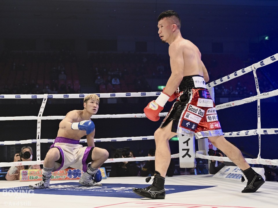 試合:元OPBF東洋太平洋王者の大沢のラストマッチ。初回、樋口がフィジカルの強さを活かして左右フックを繰り出し積極的な攻撃を展開。ロープに詰めて連打を繰り出すが、大沢はカウンターの左フックでダウンを先取。再開後、左を合わせてダウンを追加した。2回、大沢はジャブで3度目のダウンを演出。その後も打ち終わりにパンチを合わせて優勢に進めた。3回、劣勢を挽回したい樋口は果敢に攻めるが大沢のブロックにヒットを奪えず。それでもラウンド終盤には豊富な手数で勝利への執念を見せた。逆転を狙う樋口は5回、左右フックで仕掛けるが、大沢は冷静に対応。ラスト30秒を切ったところで渾身の打ち合いを見せた。キャリアの差を見せた大沢が有終の美を飾った。