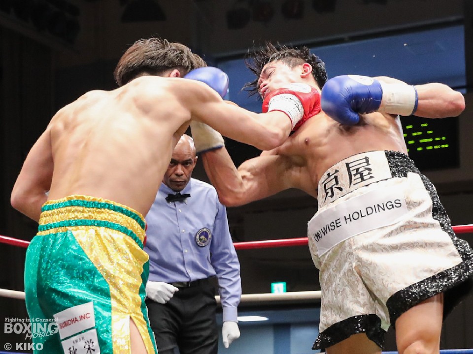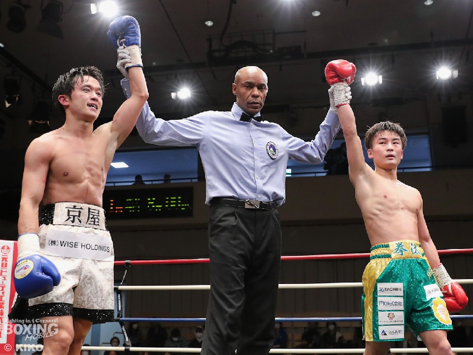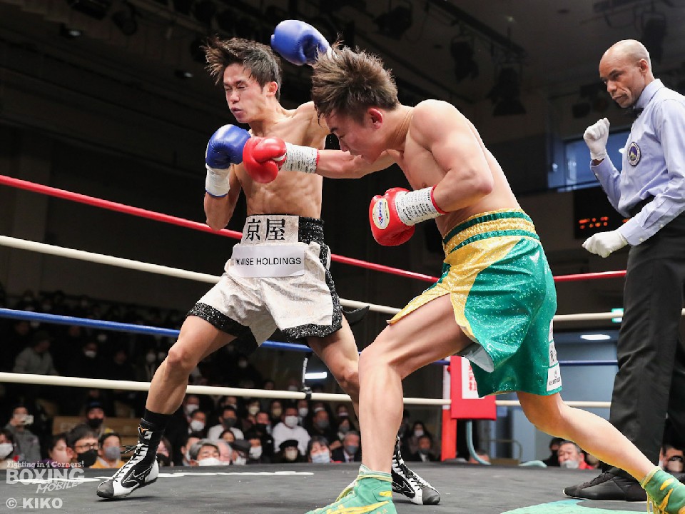 試合:初回、プレッシャーをかけながら左右フックで攻める川上とスピードのあるパンチで応戦する京屋。2~3回とプレッシャーをかけてボディから左右のフックへ繋げる川上にキレのあるカウンターから右ショートアッパーをヒットさせる京屋。4回、ジャブで距離を取り強打を放つ京屋に対し川上はプレスをかけ続けた。勝負の決着は判定へ。ジャッジ2者が引き分けとし勝敗はつかなかった。