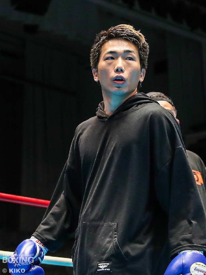試合:寺崎と椎名の対決。右ストレートを下から打ち上げながら左の返しを上下に散らした椎名に対して、寺崎は左を上下に打ち分けて組み立てた。2回には、距離を保ってジャプを差し込む寺崎に対して、椎名は下がらず右ストレートから左右のボディにつなげて、一発一発に力を込めた。3回、偶然のバッティングで左目上をカットした寺崎。椎名は右ストレートを軸にテンポを変えず。寺崎は右ストレートを混ぜて、左を軸にリズムを作った。4回に入ると、ジャプで顔面を捉え始めた寺崎が小さくサークリングしながら、距離を保った。最終回、手数の減らない椎名にワンツーで放った右ストレートで倒して試合を決めた。