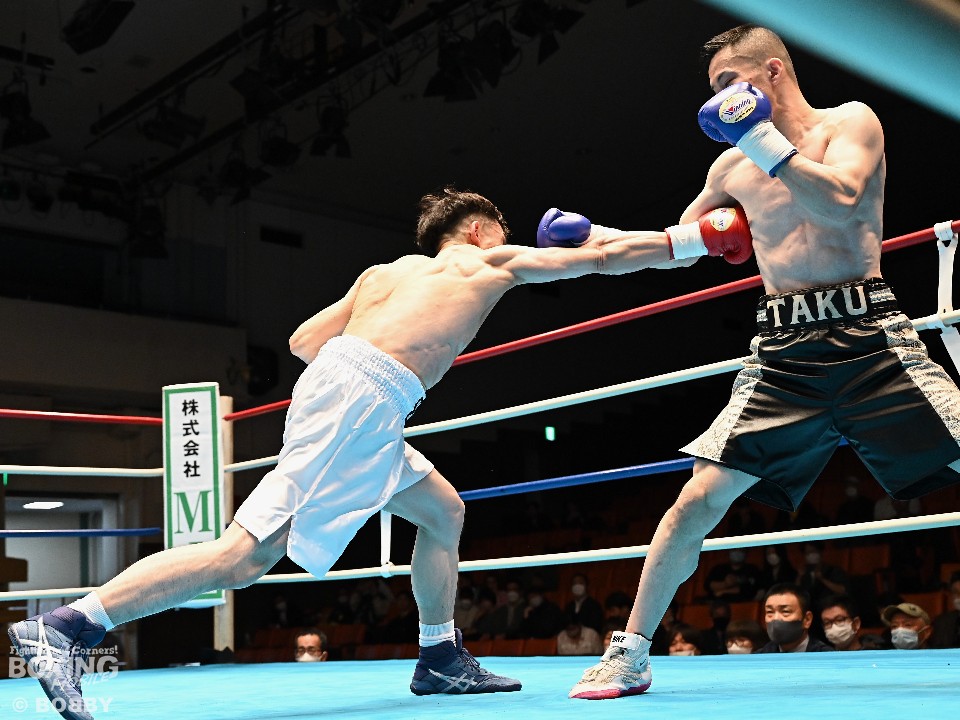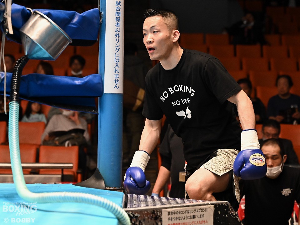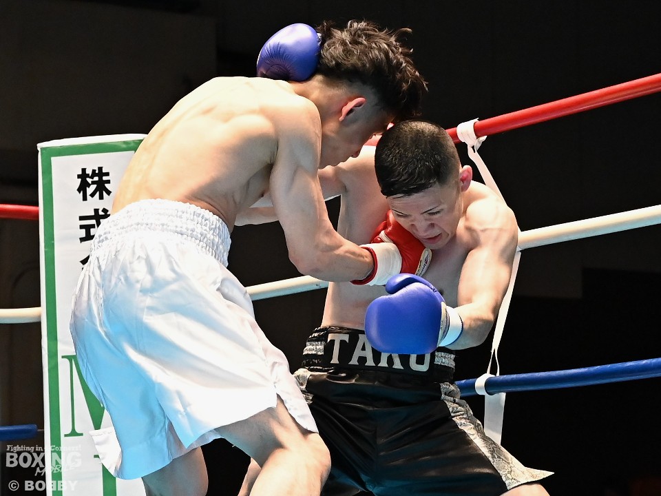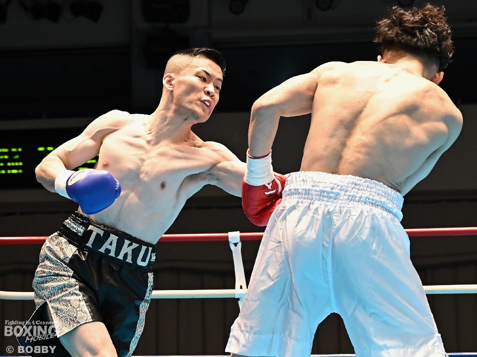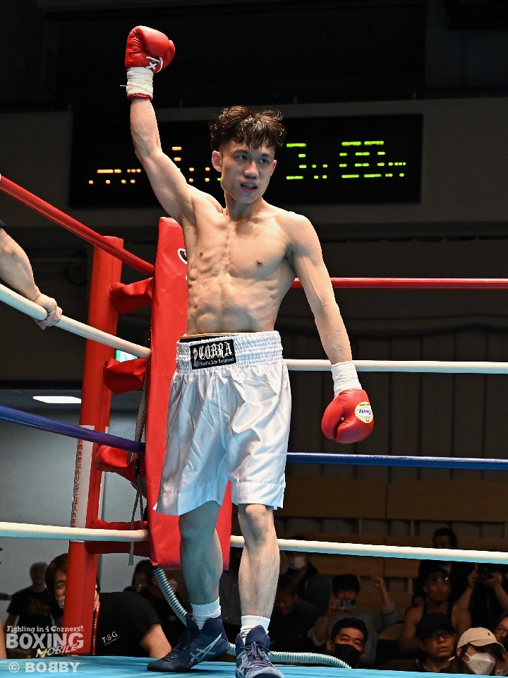 試合:サウスポー犹守が広くスタンスを取りながら左ボディアッパー、ジャブをヒットし先手を奪う。右ストレートにつなげたいリューだが、距離が遠く思い通りの展開を作れず。2回も犹守がワンツーで突き放してリズムを作るが、ここでリューの右ストレートが直撃!痛烈なダウンを奪った。なんとか立ち上がった犹守だが、レフェリーはカウント途中でストップした。リューがワンパンチKO勝ちでデビュー戦を飾った。