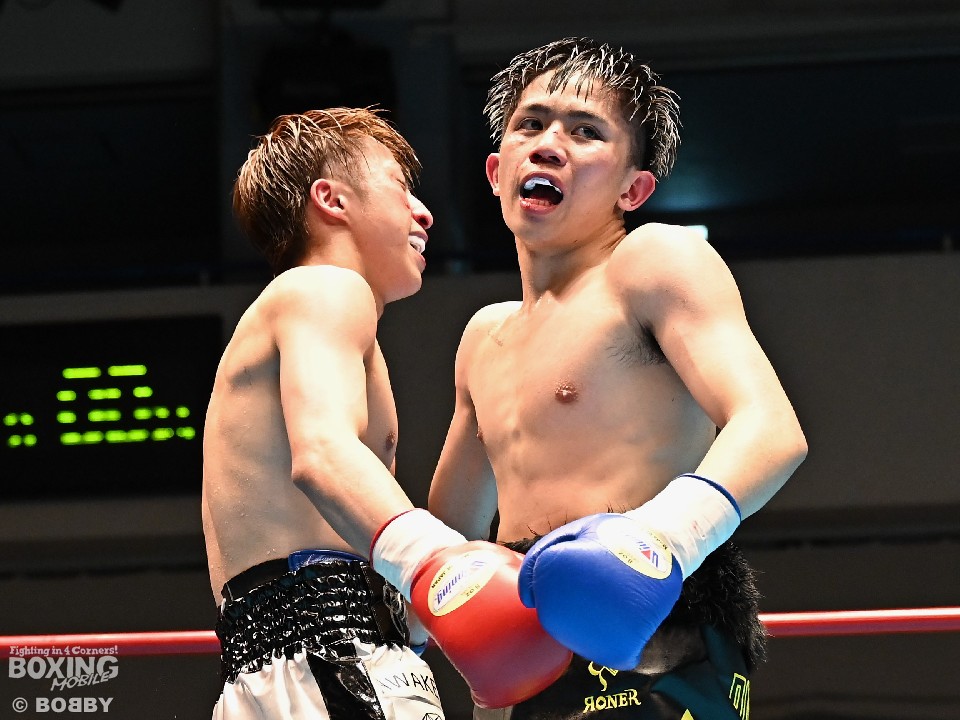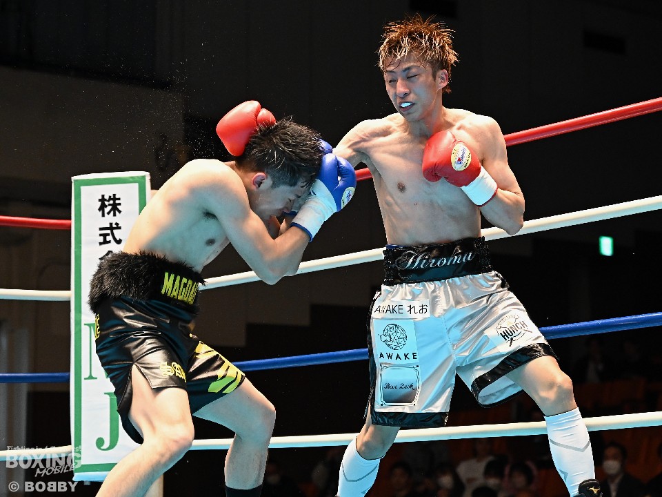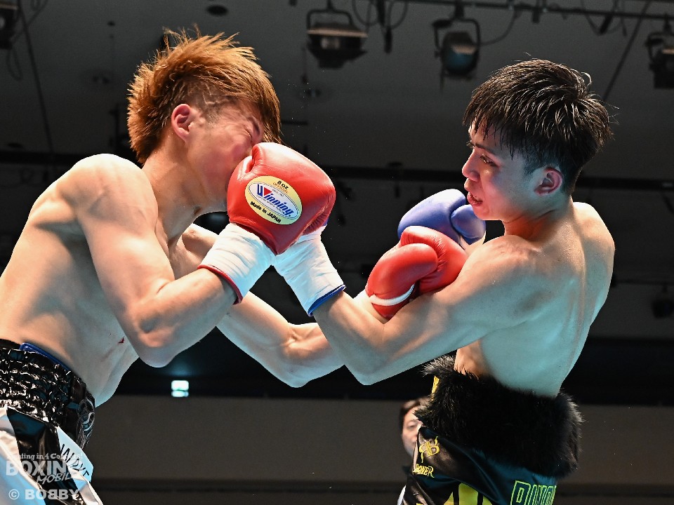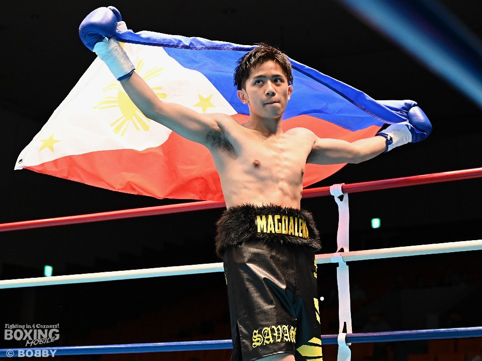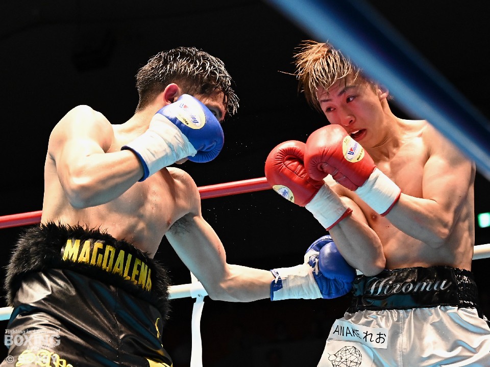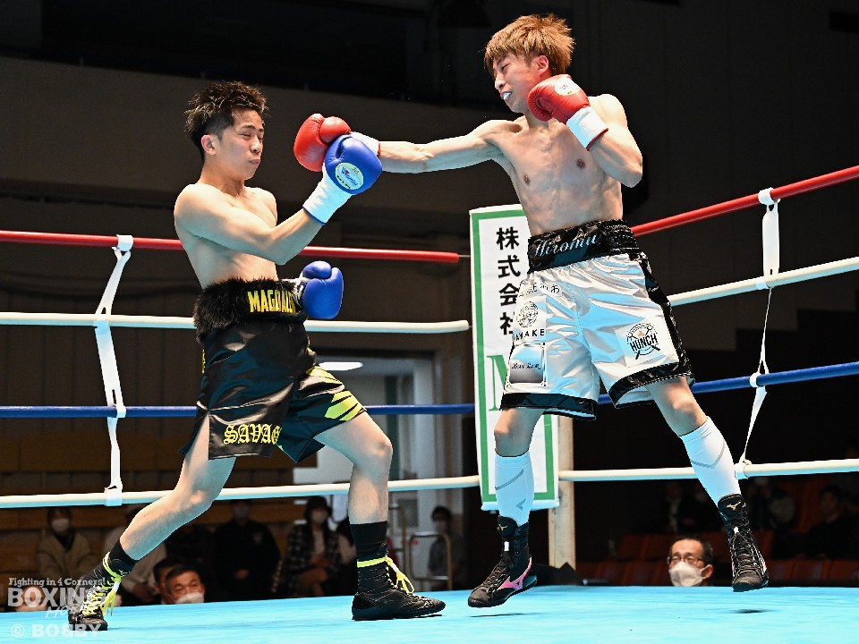 試合:サウスポー荒木がキレのある右フックから左ストレートを叩きつけるが、フィリピン出身のマグダレナはガッチリとガードを固めるとコンパクトな左ボディで応戦。2回、マグダレナはプレスをかけてボディ攻撃で体力を削りに行くが、荒木はカウンターの右フックでグラつかせると右フックを強振。3回、マグダレナはなおも左ボディに狙いを定める。ガードの上だが効果は十分。我慢の時間が続いた荒木だが、ラウンド終盤に右ショートアッパーでガクッと腰を沈めさせた。最終4回、マグダレナは回転力を活かした連打で攻勢。荒木も最後まで意地を見せた。ジャッジ2者が引き分けとしたが、激戦を繰り広げた両者にこの日、一番の歓声が沸き起こった。