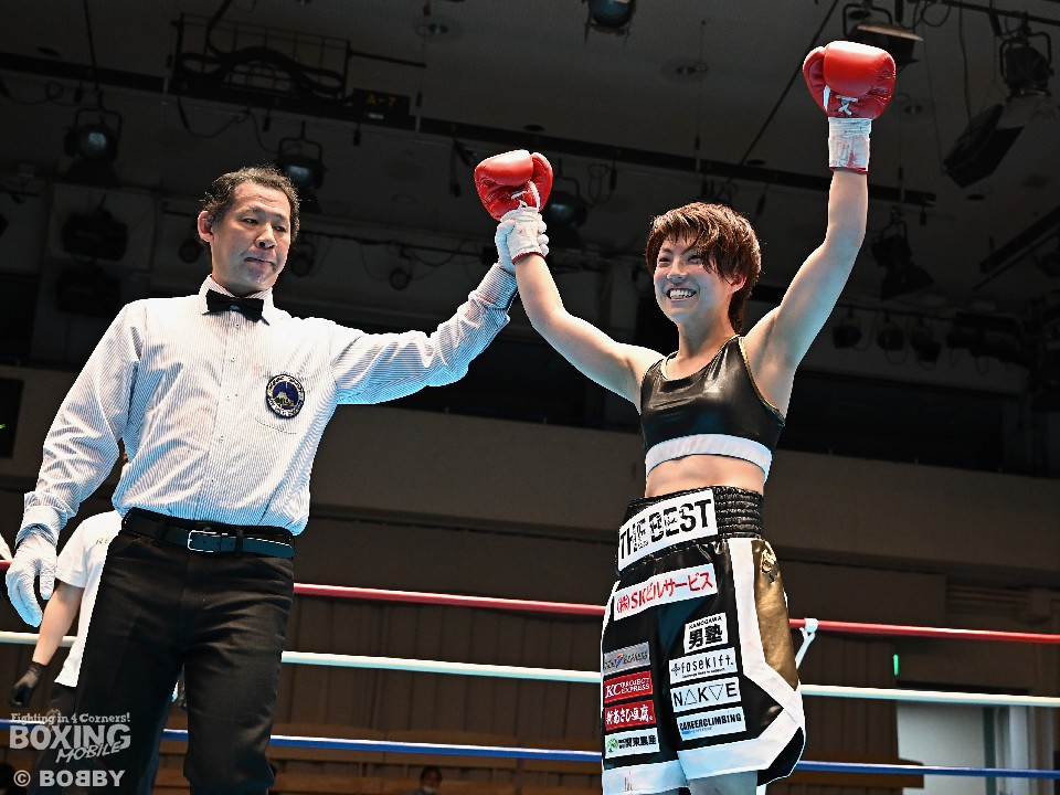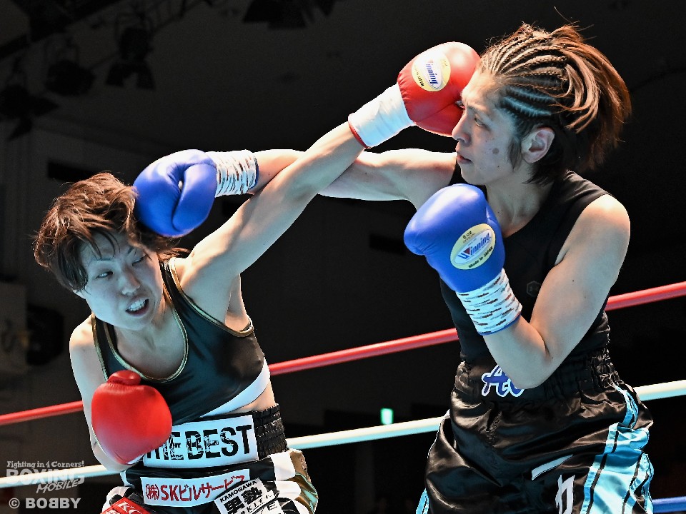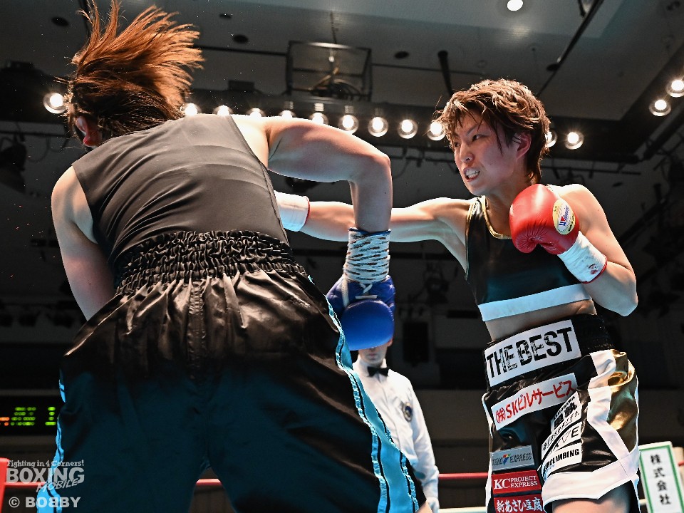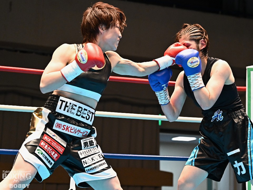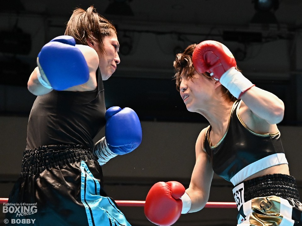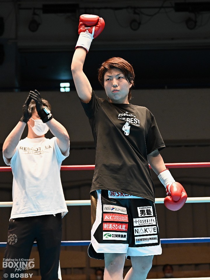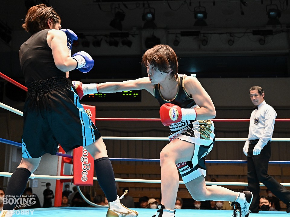 試合:2021年5月以来の再戦。山下がジリジリと距離を詰めて単発の右ボディストレートをヒット。2回、サウスポー椙元は上下の打ち分けを見せるが、山下は慌てる素振りを見せず、ステップインから右ストレートを痛打。相手の動きを冷静に見ながらヒットを重ねた。3回も山下はプレスをかけて貫通力のある右ストレートを軸にペースを維持。コーナーに押し込まれた椙元は鼻血を流した。4回、椙元は左右フックで反撃を試みるが、冷静に対応した山下はコーナーに詰めて連打で攻勢。防戦一方になった椙元を見てレフェリーが割って入った。山下が返り討ちを果たした。