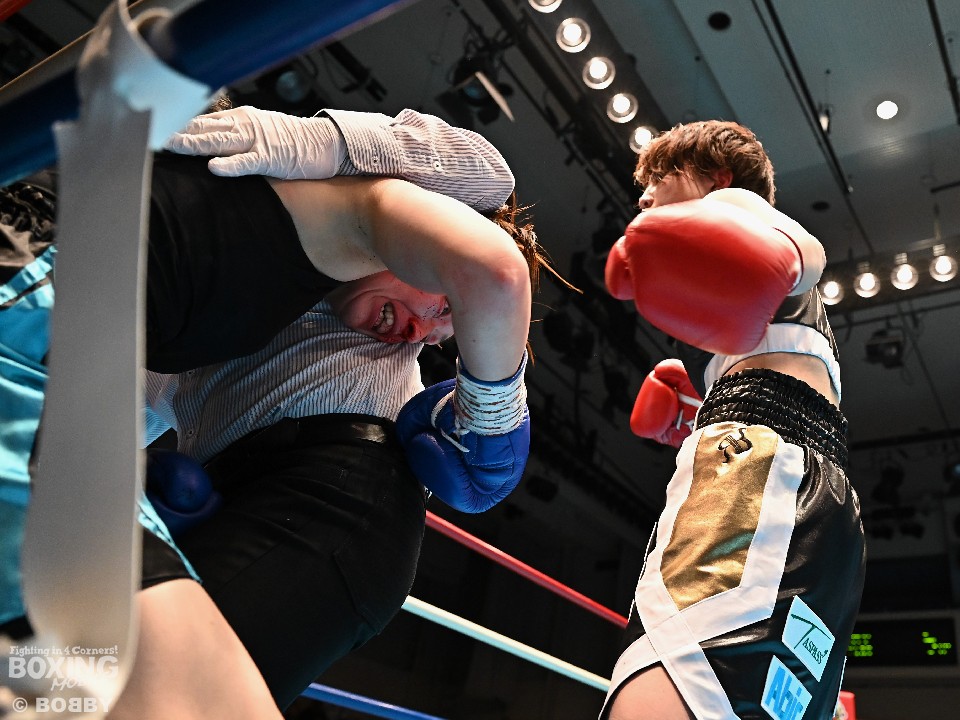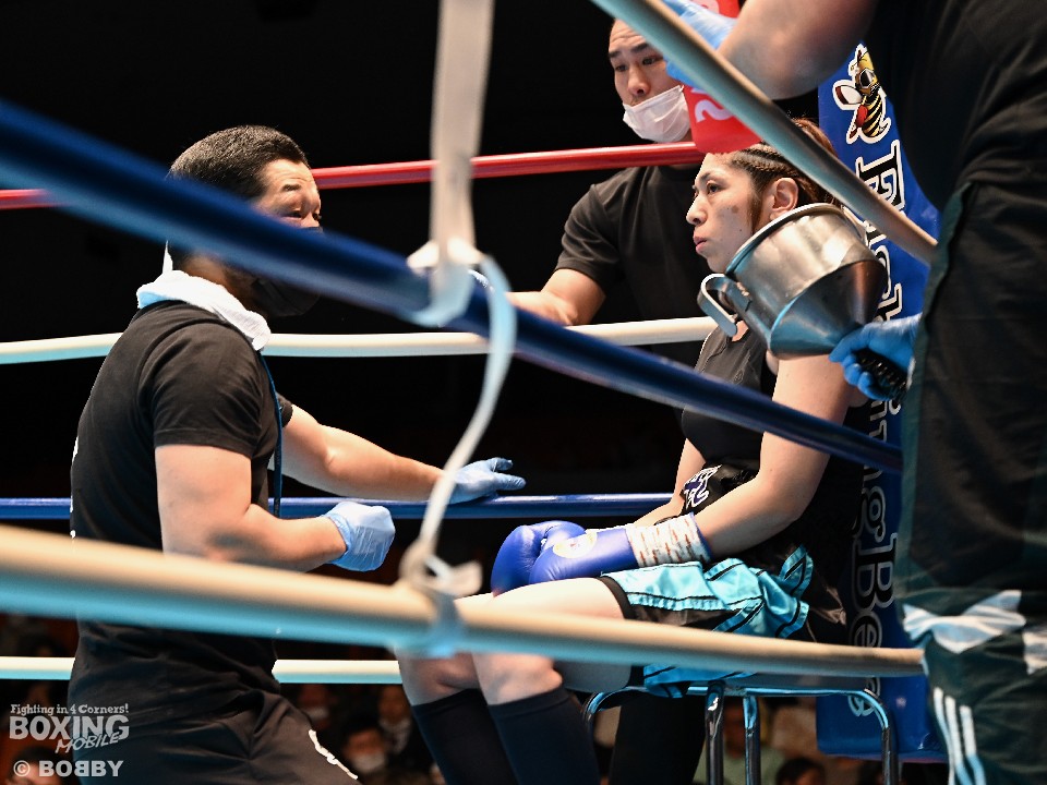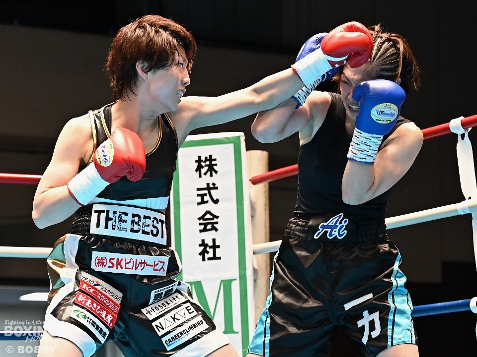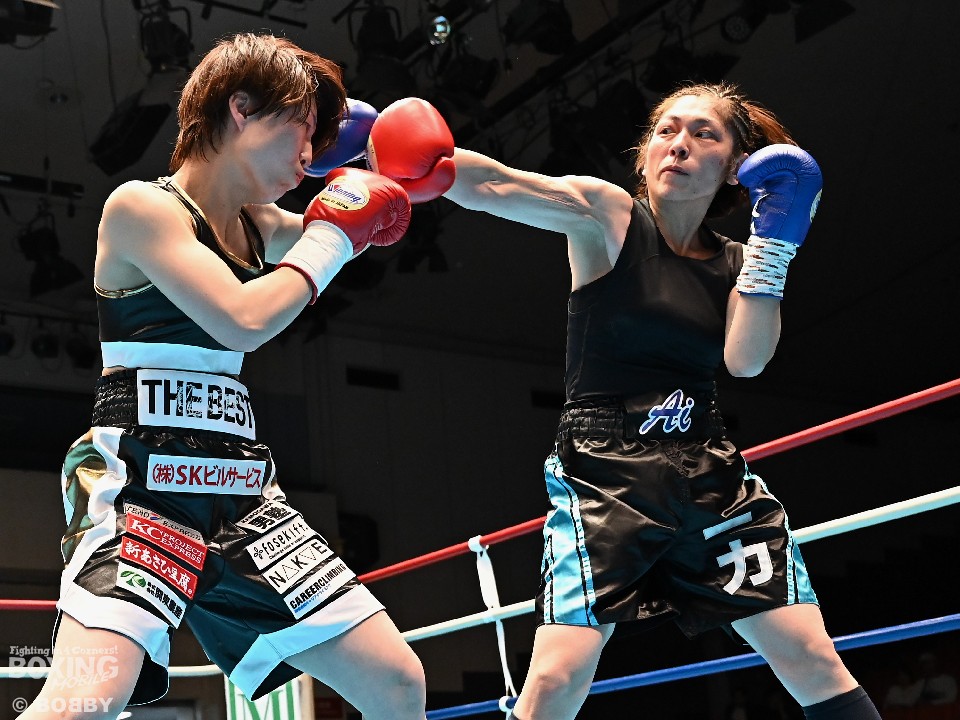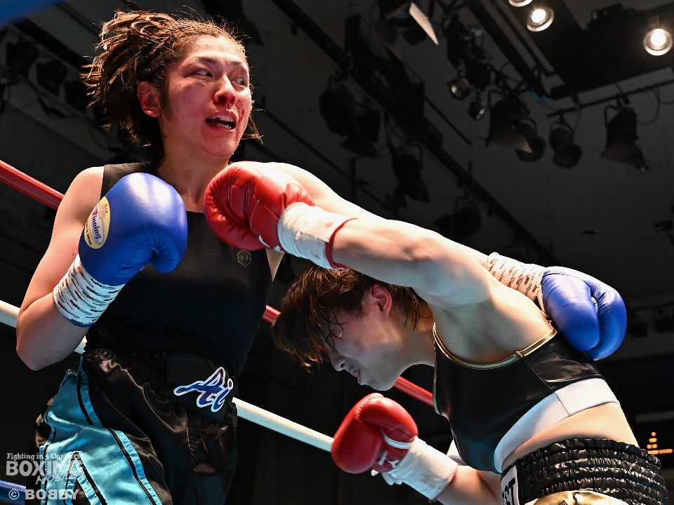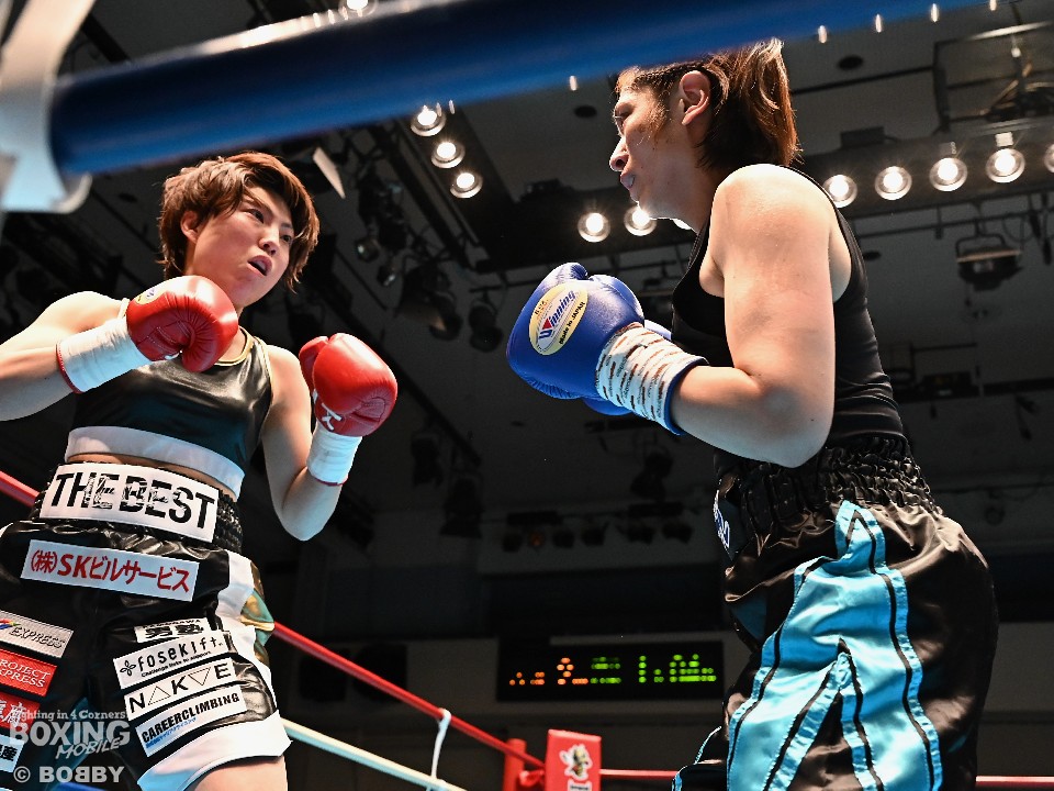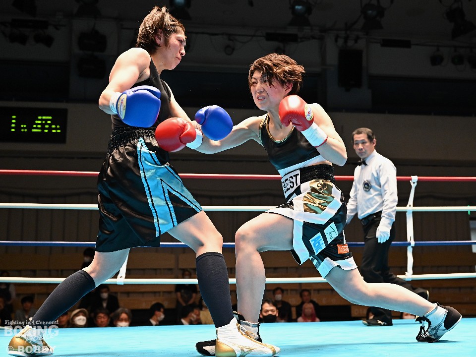 試合:2021年5月以来の再戦。山下がジリジリと距離を詰めて単発の右ボディストレートをヒット。2回、サウスポー椙元は上下の打ち分けを見せるが、山下は慌てる素振りを見せず、ステップインから右ストレートを痛打。相手の動きを冷静に見ながらヒットを重ねた。3回も山下はプレスをかけて貫通力のある右ストレートを軸にペースを維持。コーナーに押し込まれた椙元は鼻血を流した。4回、椙元は左右フックで反撃を試みるが、冷静に対応した山下はコーナーに詰めて連打で攻勢。防戦一方になった椙元を見てレフェリーが割って入った。山下が返り討ちを果たした。