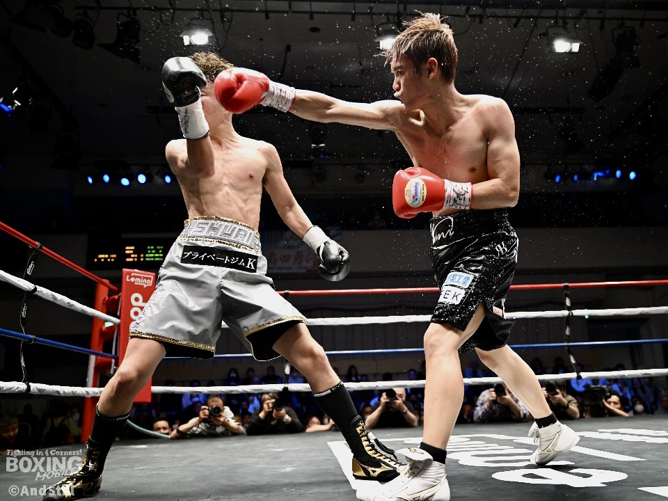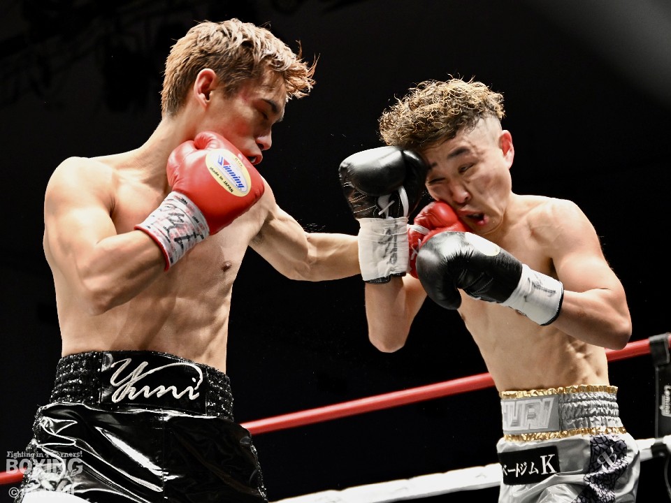 試合:4回戦時代に拳を交えた(長谷部の4回TKO勝ち)両者が7年の時を経てベルトを懸けて激突した。距離とタイミングの探り合いからスタート。高田がスピードを活かした左で顔を弾き先手を奪う。2回、長谷部は頭を振りながらプレスをかけていくが、高田は右カウンターを好打。さらにステップインから左フックを叩きつけて攻勢。長谷部は左目下が腫れてきた。流れを変えたい長谷部は4回、ジリジリと距離を詰めて左ボディ、右クロスをヒット。しかし、高田が慌てる素振りを見せずキレ味鋭いパンチを返した。5回、一進一退の攻防の中、長谷部はワンツーを好打し粘り強さを発揮。前半終了時の公開採点は、48-47×1、49-46×2で高田がリード。6回、中間距離でパンチを交錯させてスリリングな打ち合いを見せる中、高田が左フックでガクッと腰を沈めさせて攻勢。チャンスと見るやパンチを畳みかけてレフェリーストップに持ち込んだ。リベンジを果たした高田が創設38年目のライオンズジム初の日本チャンピオンに輝いた。