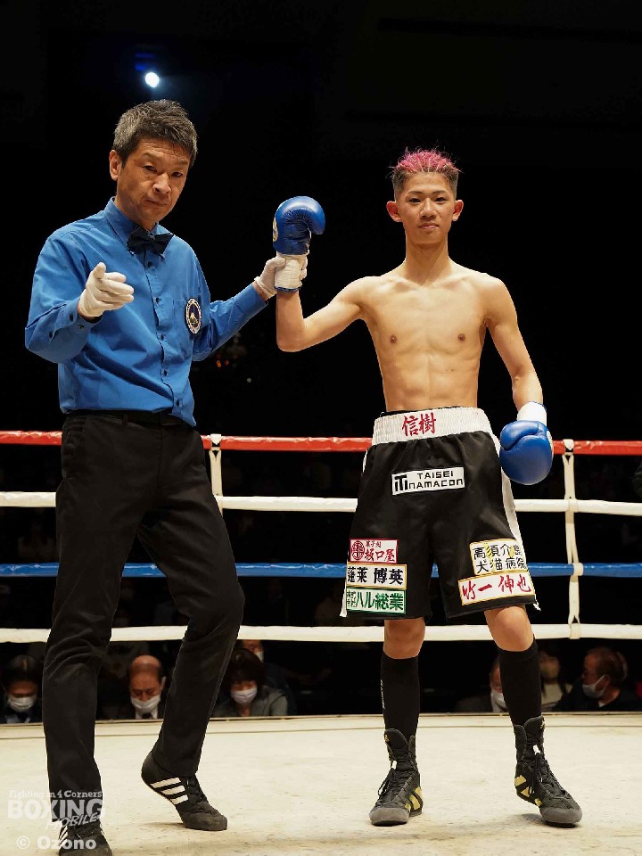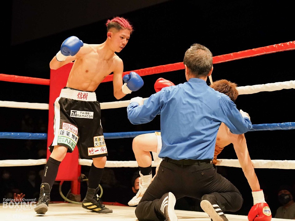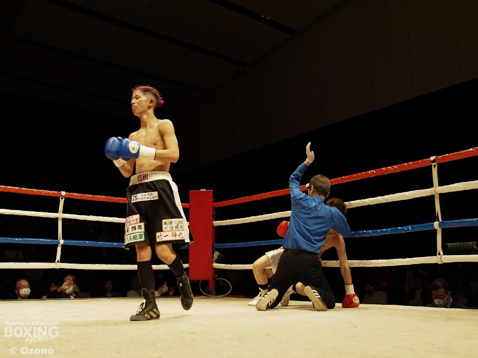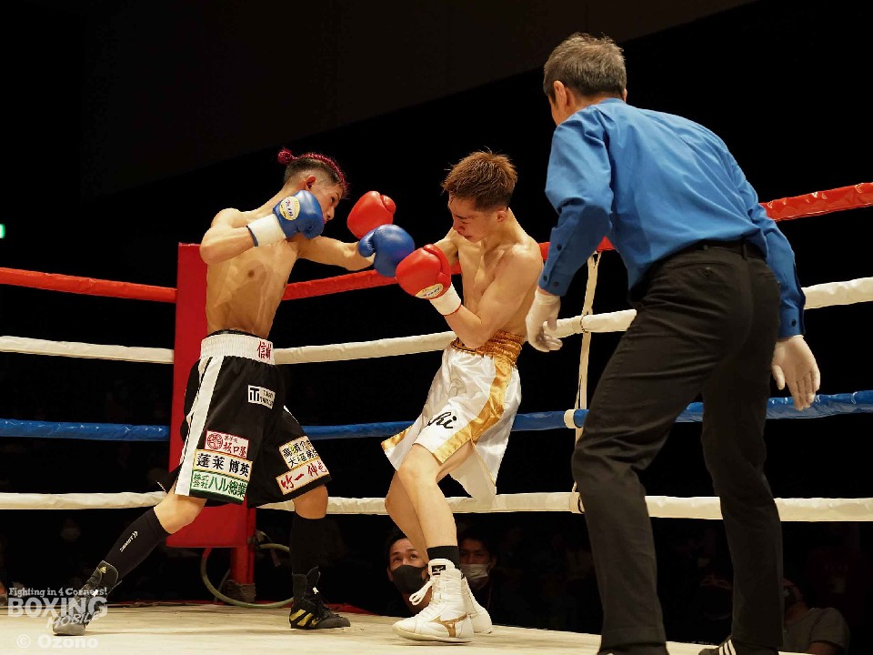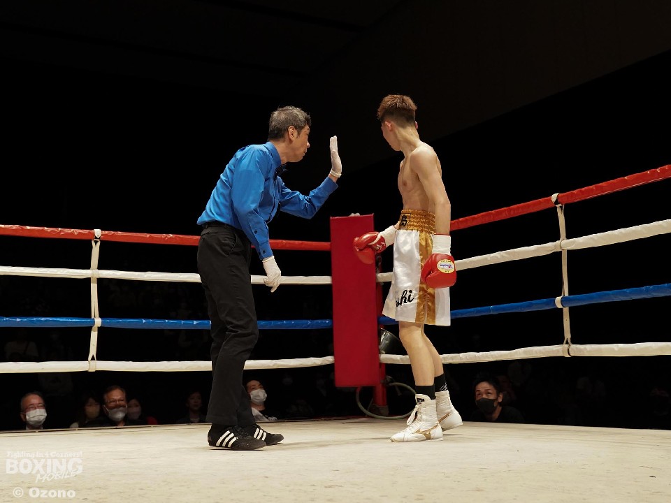 試合:序盤から松村がワンツーを繰り出し、右ストレートで膝を揺らすと攻勢。ロープに押し込んで上々の立ち上がりを見せる。西野はジャブを軸に立て直しを図った。2回、松村は右ストレートでダウンを演出。立ち上がった西野にプッシュすると、右ストレートで顔を弾くと一気に猛攻。連打で2度目のダウンを奪いレフェリーストップに持ち込んだ。