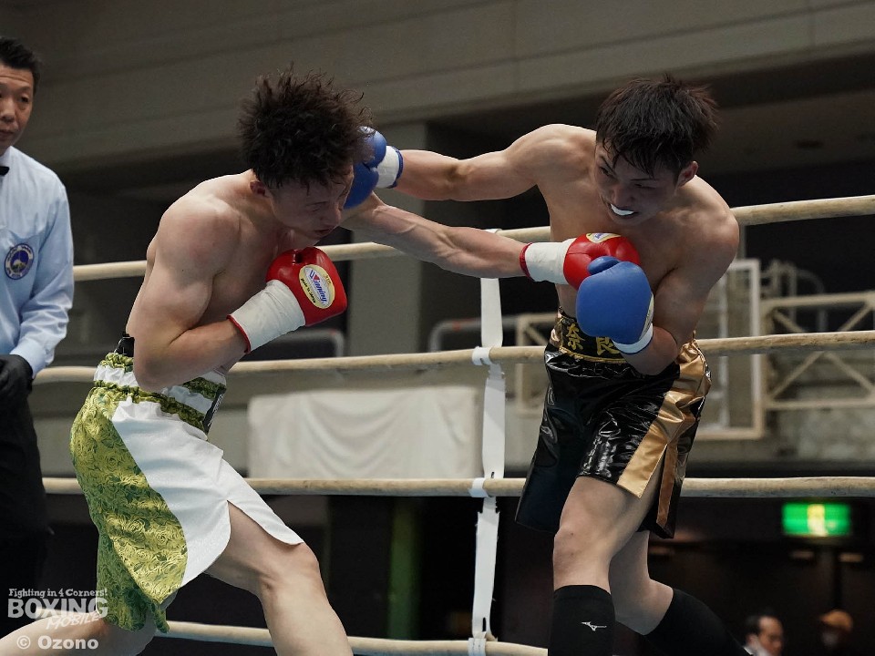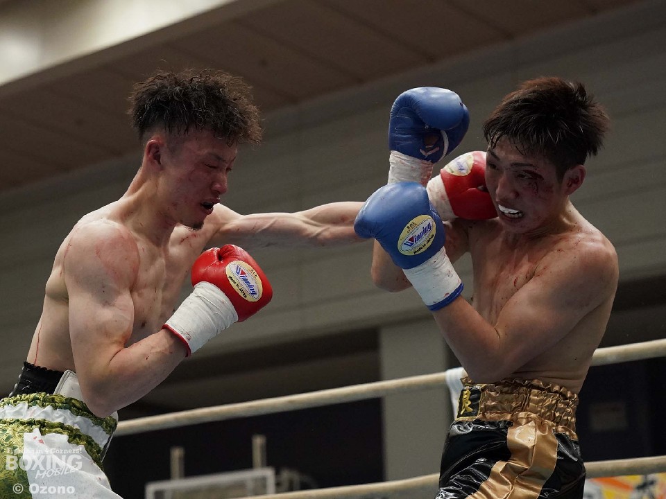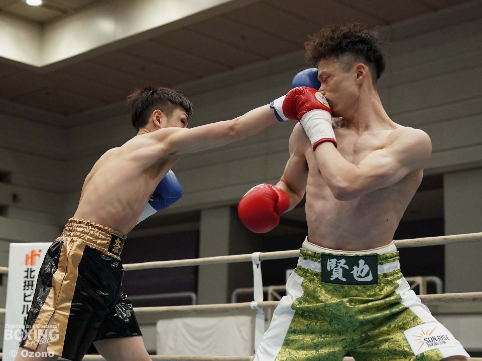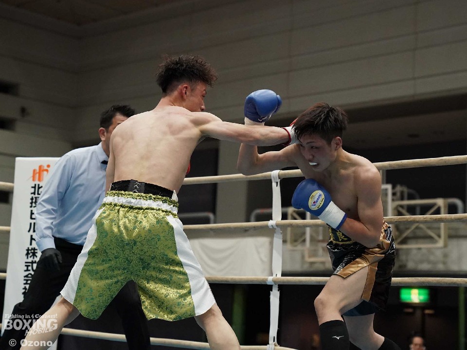 試合:サウスポー芝本は前の手でタイミングを測りながら、左ボディストレートを繰り出す。早川はステップインのワンツー、右ストレートから攻撃のリズムを作る。初回は静かな立ち上がりとなった。2回、早川は右ストレートで顎を跳ね上げ、攻勢をかけるが、芝本はクロスレンジで右フックを再三ねじ込み対抗。3回、芝本はプレスをかけて右フックで顔を弾き、プッシュするが、早川も手数を繰り出し対抗した。4回、芝本は右フックで早川の左瞼下を切り裂いた。プッシュし左ストレートを好打するが、早川も最後まで決定打は許さず。採点は三者三様のドローで決着は着かなかった。