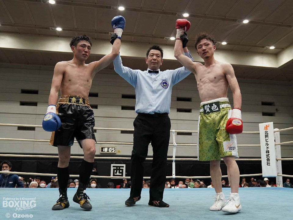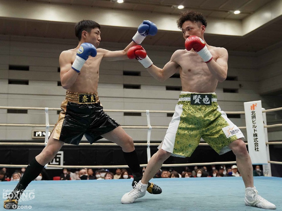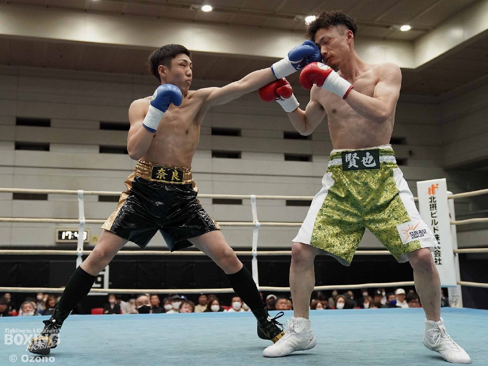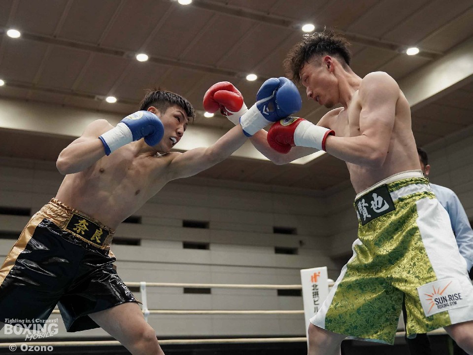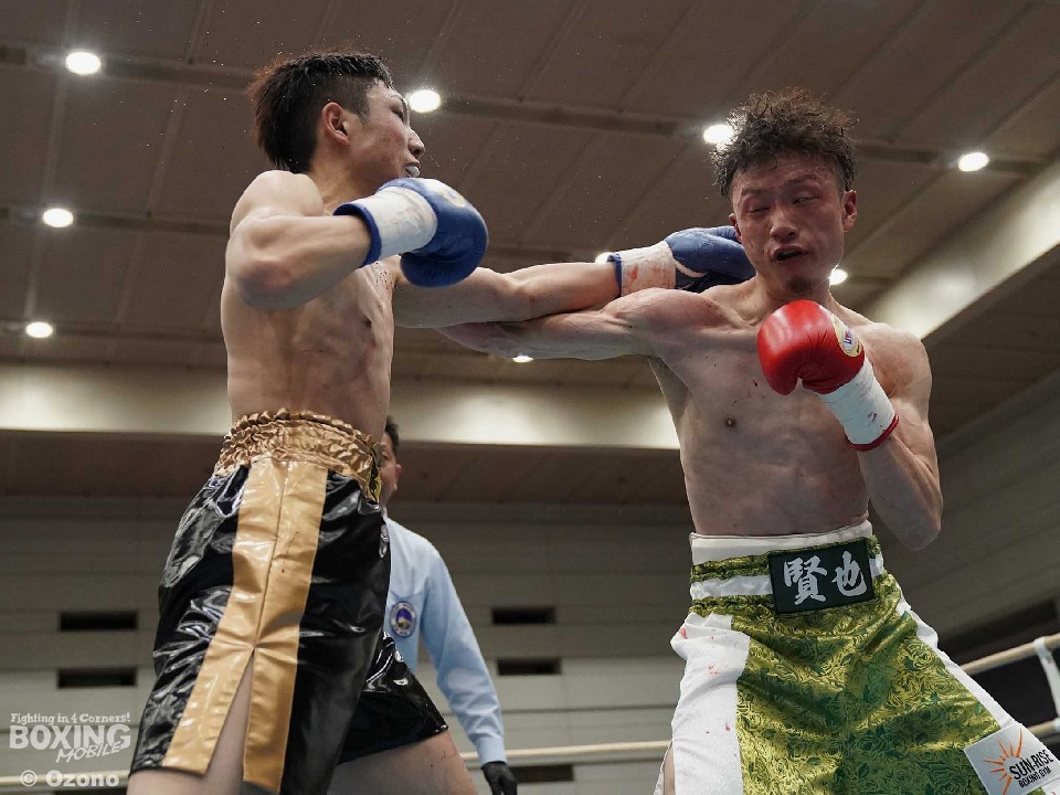 試合:サウスポー芝本は前の手でタイミングを測りながら、左ボディストレートを繰り出す。早川はステップインのワンツー、右ストレートから攻撃のリズムを作る。初回は静かな立ち上がりとなった。2回、早川は右ストレートで顎を跳ね上げ、攻勢をかけるが、芝本はクロスレンジで右フックを再三ねじ込み対抗。3回、芝本はプレスをかけて右フックで顔を弾き、プッシュするが、早川も手数を繰り出し対抗した。4回、芝本は右フックで早川の左瞼下を切り裂いた。プッシュし左ストレートを好打するが、早川も最後まで決定打は許さず。採点は三者三様のドローで決着は着かなかった。