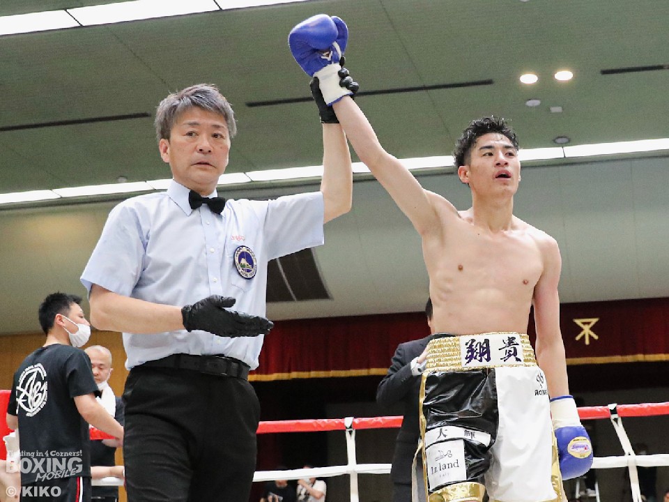 試合:ジャブの差し合いからスタートした試合は、浅井がボディワークでかわすと右カウンターをヒット。ランカー初挑戦の山内も果敢に攻めた。2回、山内は右ストレートで膝を揺らすと連打で攻勢。ワンツーでグラつかせて連打でダウンを演出。ファイティングポーズを取った浅井だがレフェリーは10カウントを数え上げた。熊本から参戦した山内が下剋上を果たした。