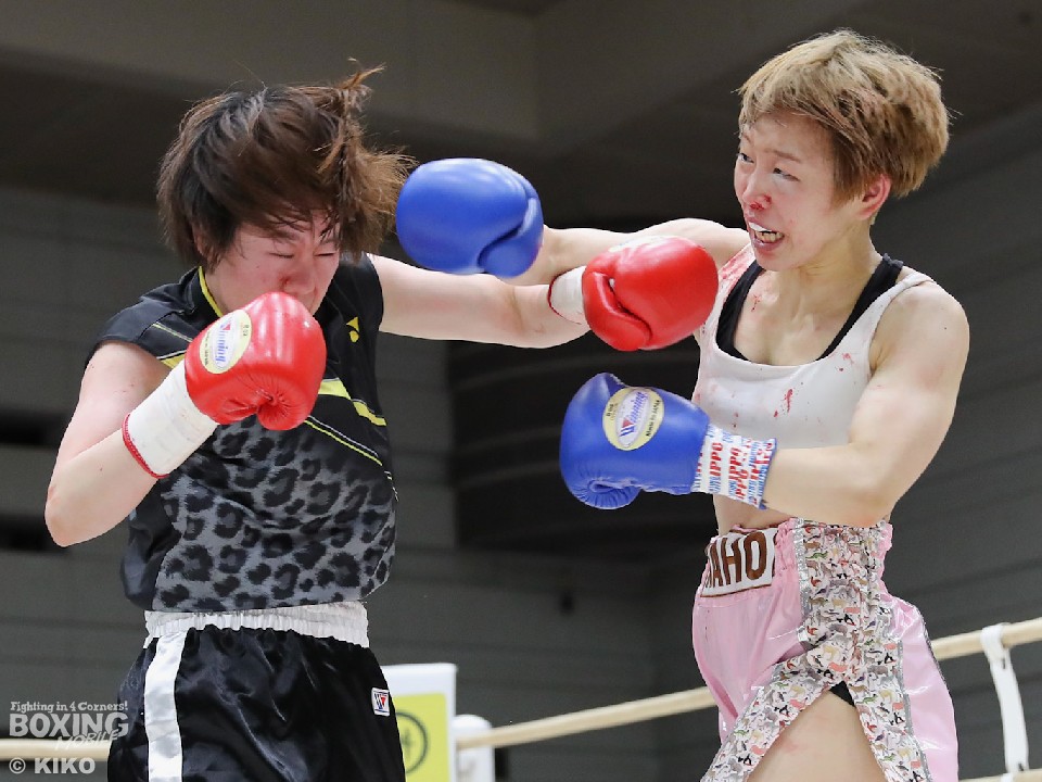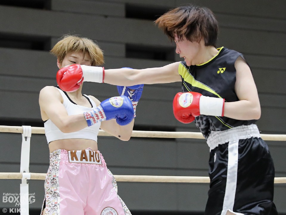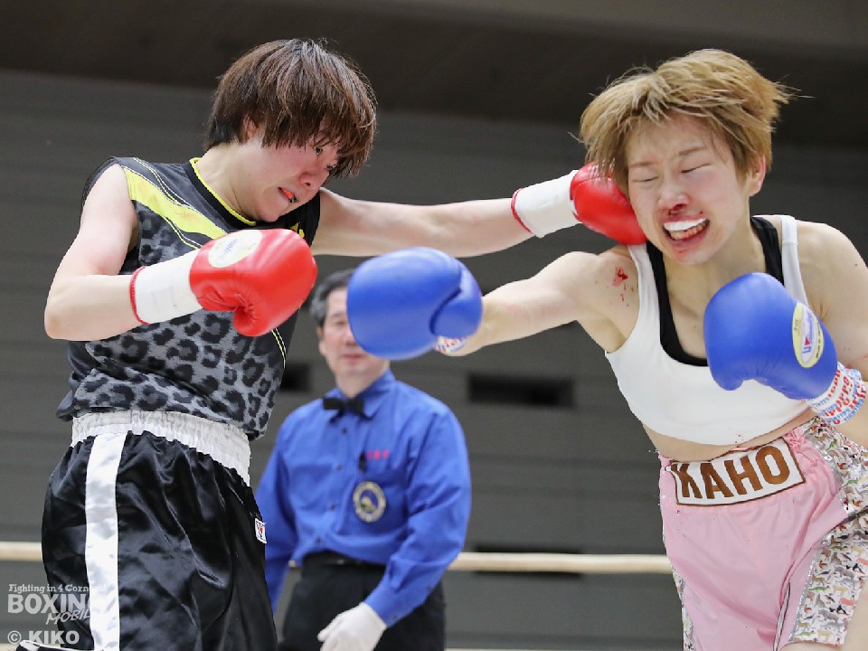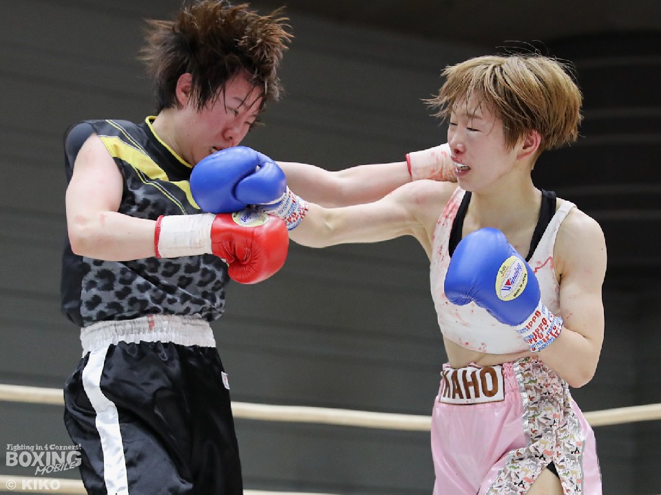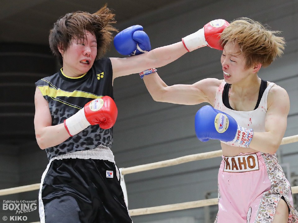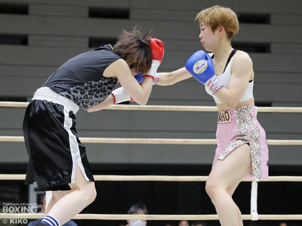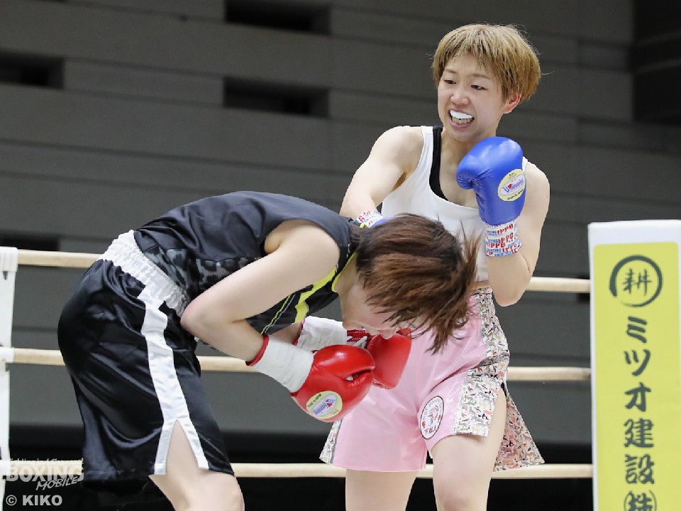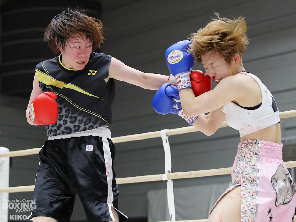 試合:長崎は開始早々、グイグイと前に出てワンツーから連打で攻勢をかける。右ストレートを差し込み上々の立ち上がりを見せた。宗利はジャブをついて立て直しを図るが、長崎のプレスに後手に回ってしまう。2回、宗利は鼻血を流しながら前に出てクロスレンジで左右フックをねじ込むが、長崎はお構いなしにプッシュして右ストレートを再三好打した。3回、両者とも疲労の色が見える中、互いにパンチが顔面を捉えて意地がぶつかり合う打ち合いに。4回、最後まで死力を尽くした打ち合いの中、宗利の右ストレートが再三頬を弾いた。ジャッジ3者とも長崎を支持。嬉しい初勝利を挙げた。