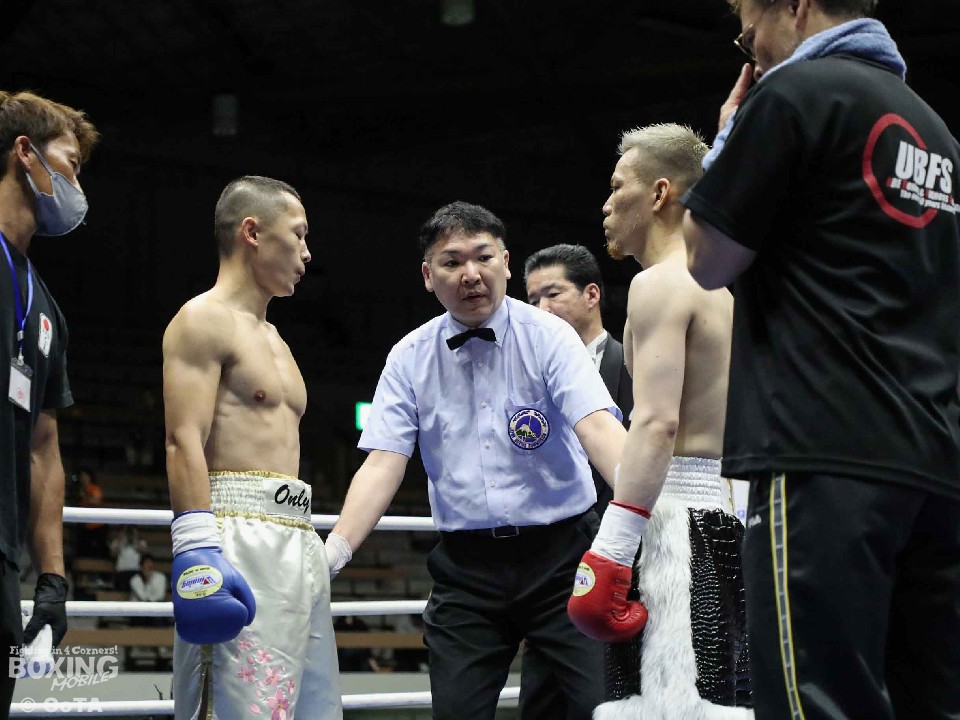 試合:前村が距離を詰めて右ストレートを好打、対する二葉も高いガードから右を返しペースを譲らず。緊張感のある立ち上がりを見せた。2回、二葉が前村の打ち終わりに左フック、右アッパーを重ねてヒットを重ねてペースを奪う。3回、くっついては右アッパー、離れては右ストレートが再三効果的に決まった二葉が攻勢をかける。続く4回も的確に飛んでくる二葉の右ストレートで攻撃を継続しきれない前村。最終回、ペースを一切崩さない二葉に対し、意地の粘りを見せた前村だったが、逆転に転じる事はできず。判定で二葉が勝利した。