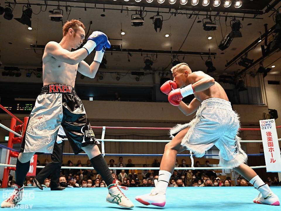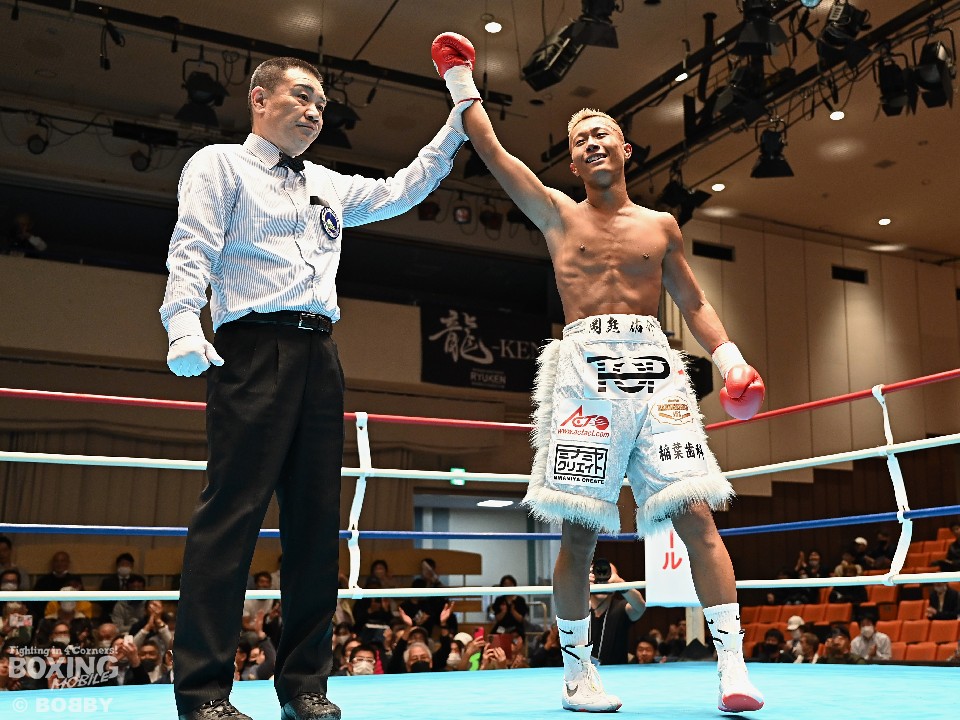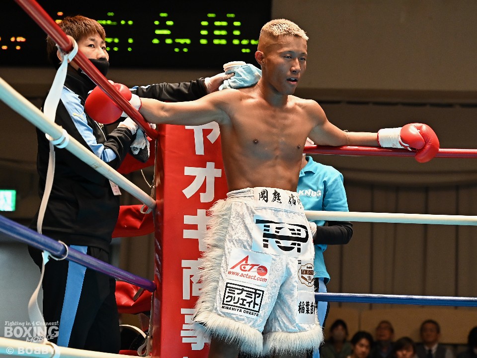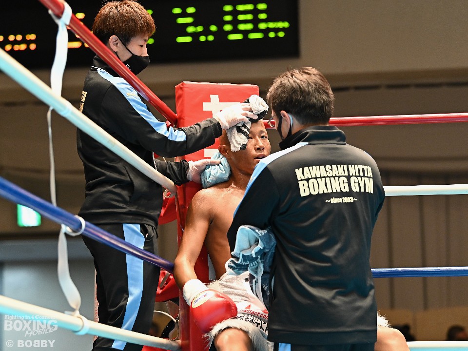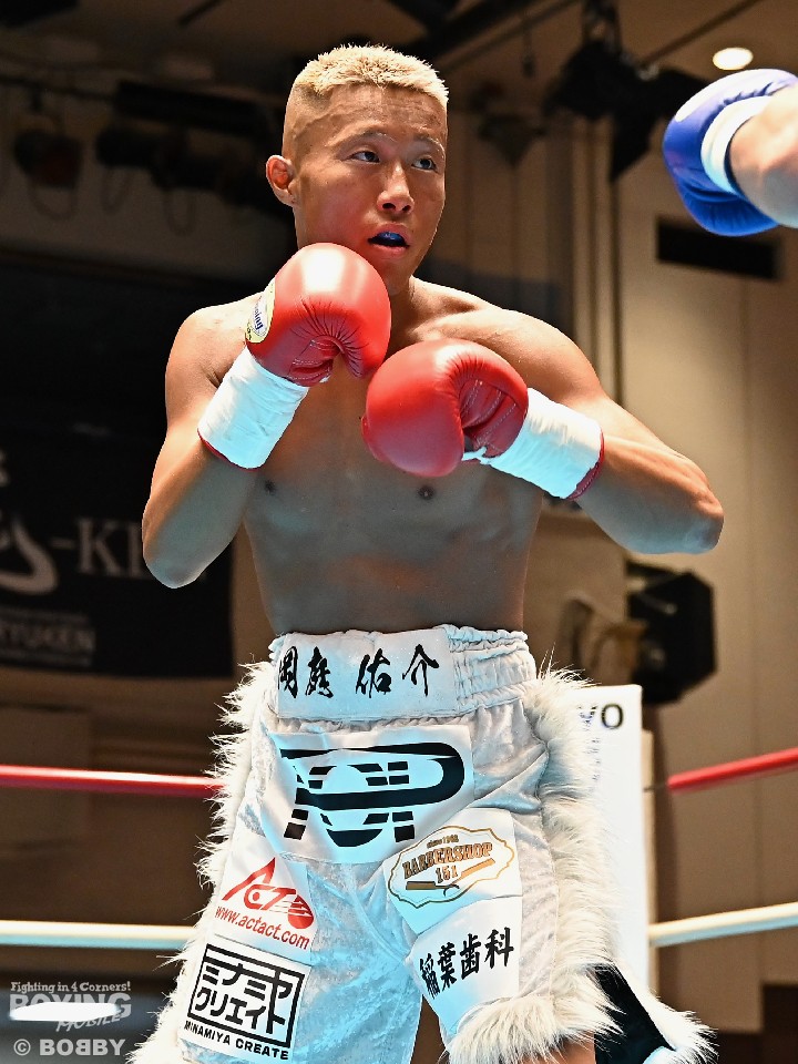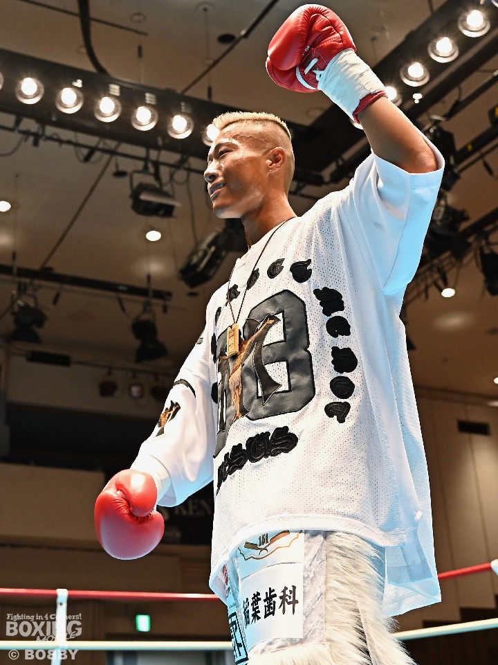 試合:中間距離でタイミングの探り合いからスタート。静かな展開の中、岡庭が単発の左フックをヒット。2回、相手の左フックに反応した吉川だが、クリーンヒットを奪うまでには至らず。3回、お互いに警戒が強くなかなか踏み込めないが、ラウンド終盤に吉川がワンツーをヒット。最終4回、先に仕掛けたのは岡庭。手数を増やして積極性をアピールした。アグレッシブな姿勢を見せた岡庭がデビュー戦を勝利した。