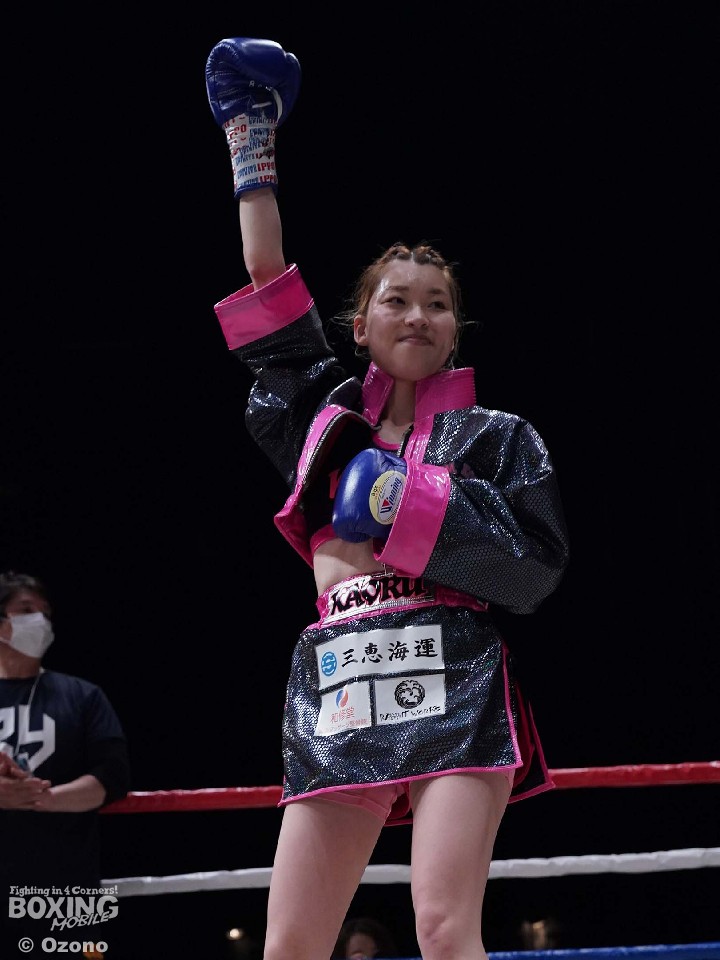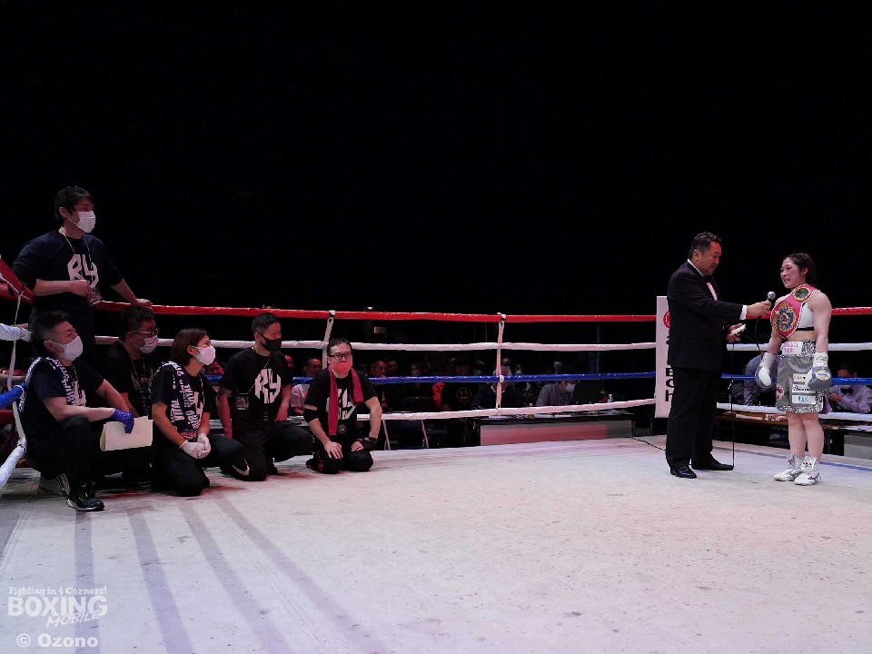 試合:WBO-AP王者の吉川のV1戦。挑戦者は前日本アトム級王者の伊賀。開始から吉川がプレスをかけて右フックで膝を揺らすとロープに詰めて連打で攻勢。上々のスタートを切った。2回も吉川は右フックから返しの左フックをヒット。動きが硬い伊賀だが3回、ジャブから右ストレートにつなげて反撃。しかし、吉川は臆することなく前に出て左フックをねじ込んだ。4回、吉川は重厚なプレスから上下のコンビネーションを披露。ポイントを挽回したい伊賀は手数を増やすが、吉川も真っ向から応戦。6回も吉川のラウンド。リズム感のある攻撃で有効打を重ねた。最終8回も吉川は右クロス、左フックで顔を弾き見栄えの良さをアピールした。2~8ポイント差をつけた吉川が初防衛に成功した。