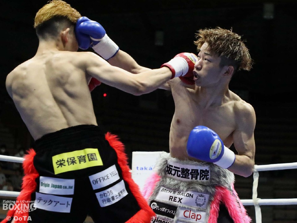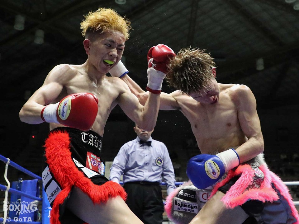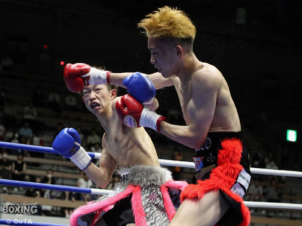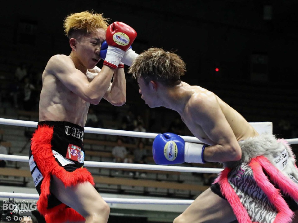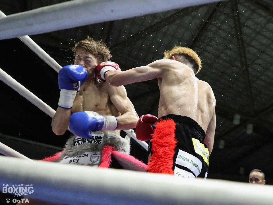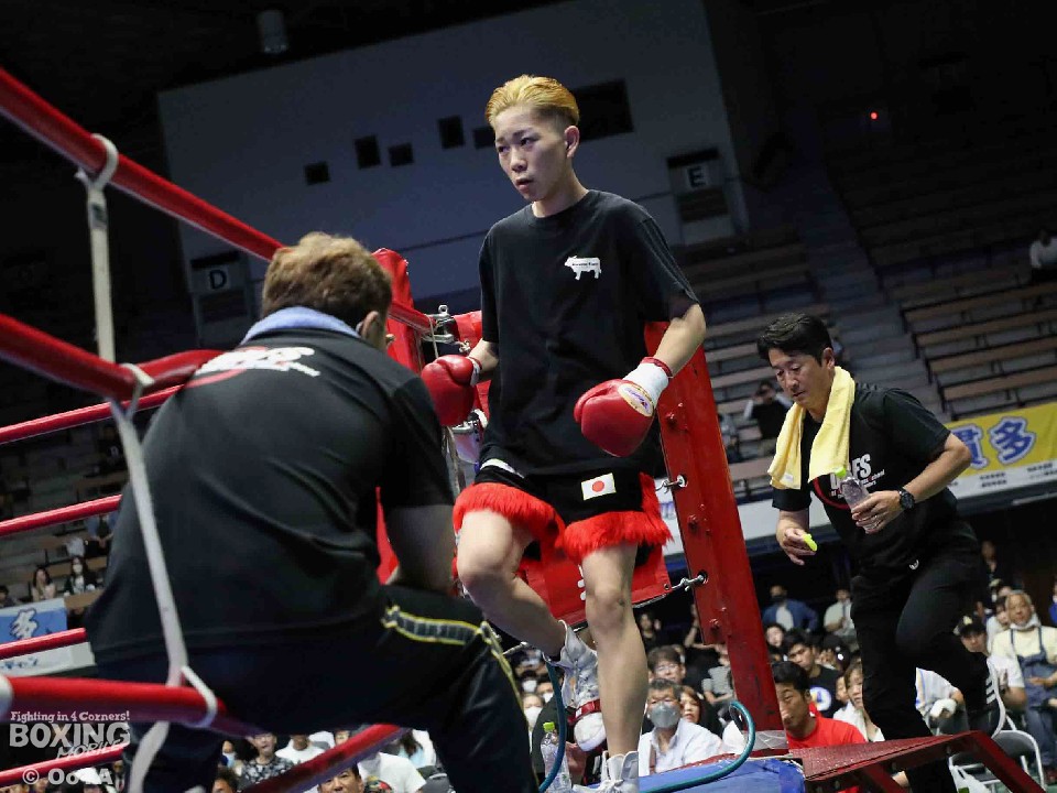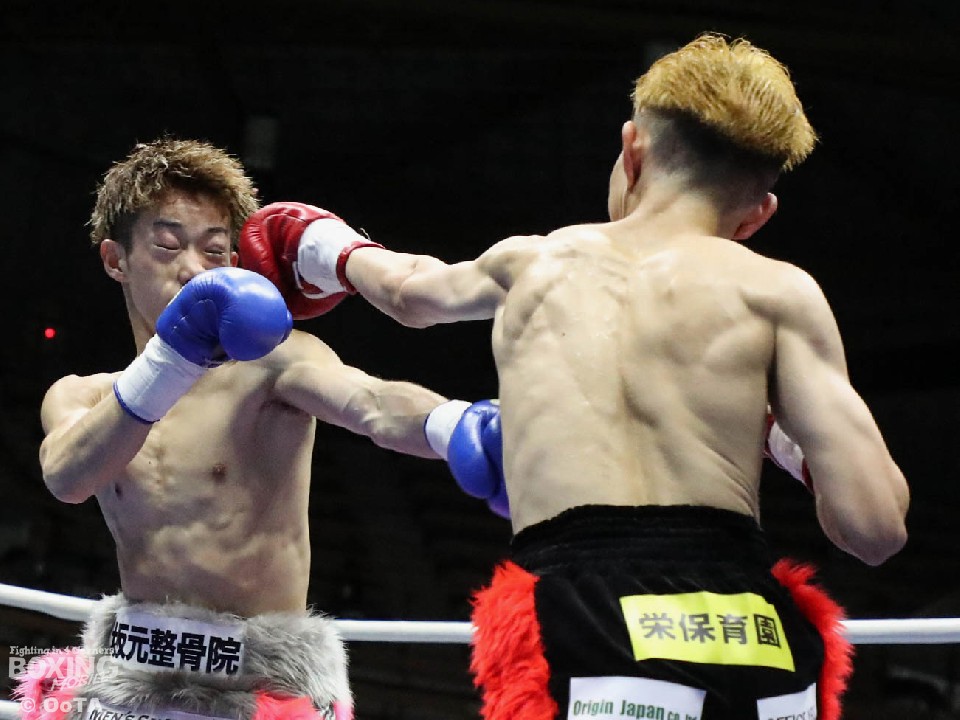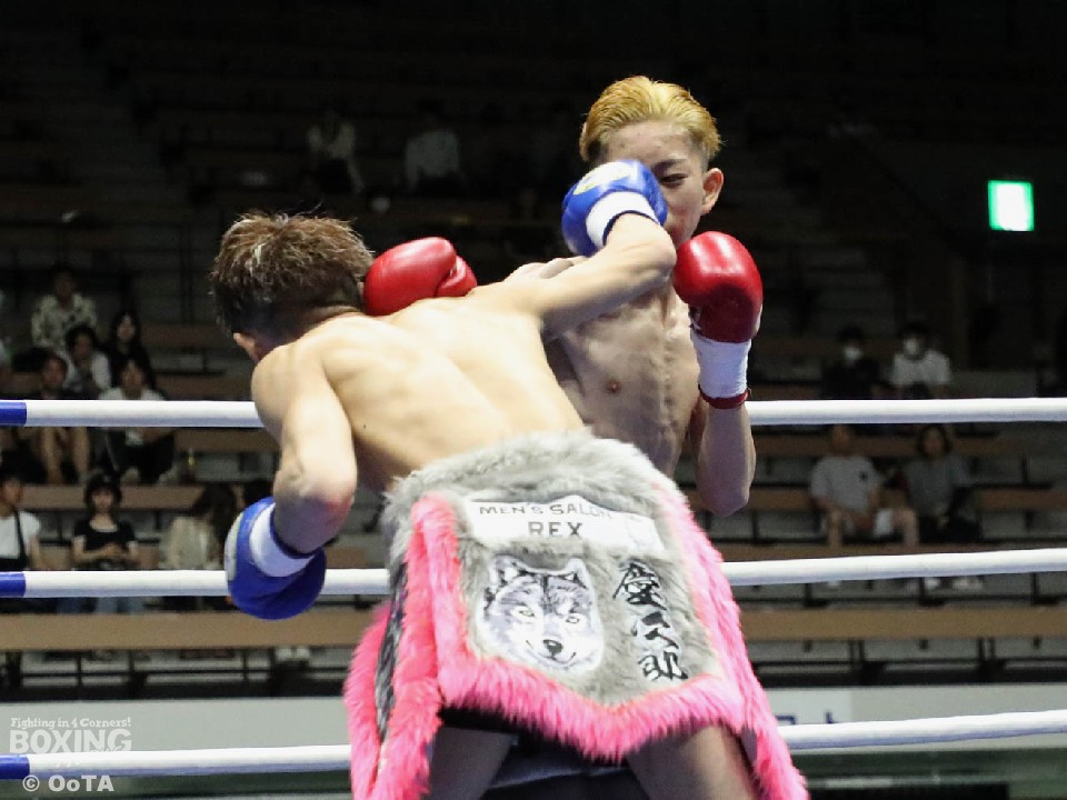 試合:前の手をコツコツと合わせる両者だが、サウスポーの河端がコンパクトな左ストレートで突き放した。2回、吉田がボディから上への攻撃で一気にペースを握ると、踏み込んでのフックの連打でポイントを加点。最終回、河端が左ストレートで吉田の腰を落とすと、要所でカウンターを返しポイントを奪いにかかる。打ち合いの中で終了のゴングが鳴った。結果はスピードを生かした攻めでポイントを稼いだ吉田が初勝利を上げた。