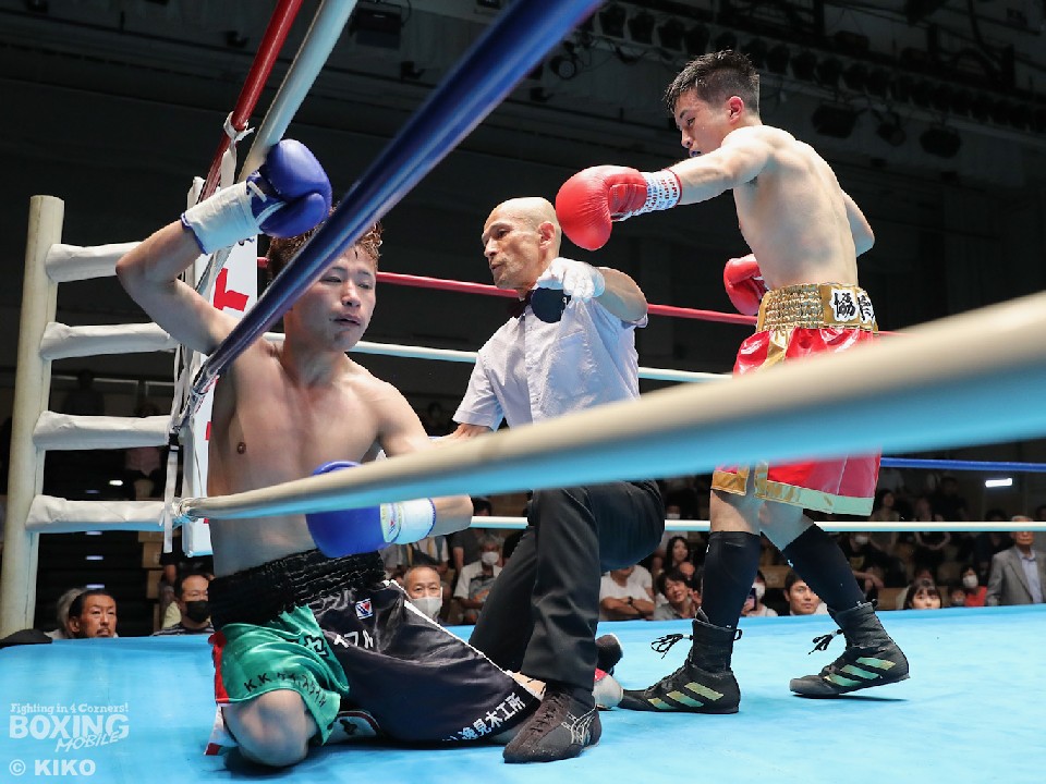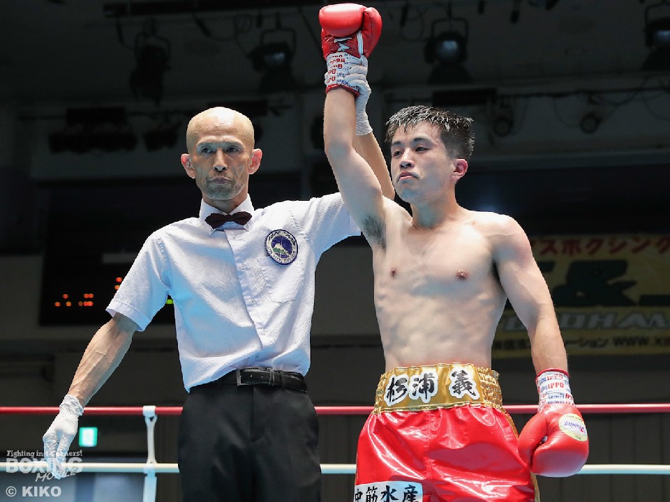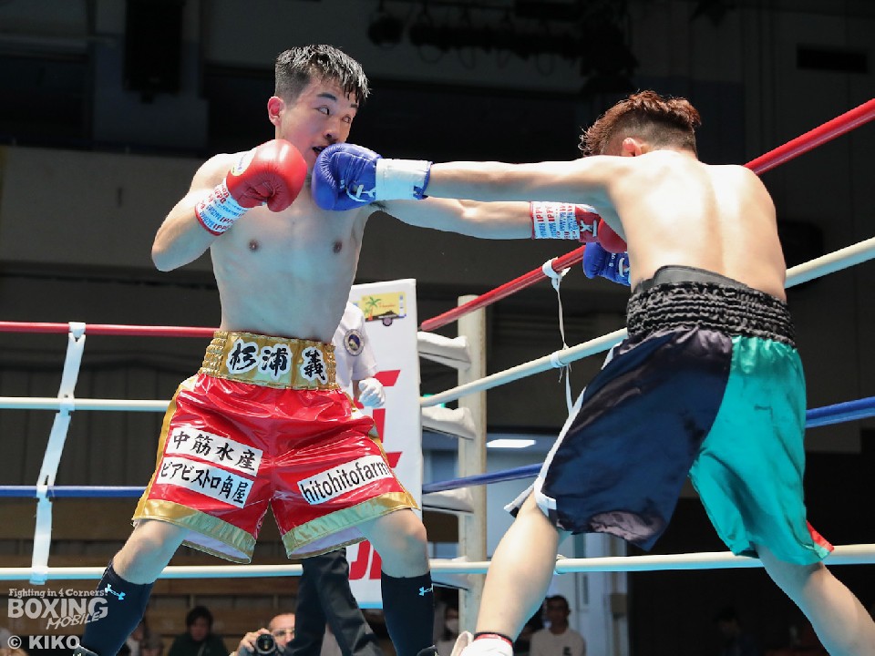 試合:杉浦がジャブを突き刺しながらプレスをかけると右クロスをヒット。左ボディを返した根岸だが、右につなげられず。2回、杉浦は硬いブロックから左ボディを痛打。緩急をつけたコンビネーションでジワリジワリと攻め立てた。3回、根岸は左右フックで反撃に転じるが、杉浦は冷静に対応。左ボディから上下に打ち分けて最後は右ストレートでダウンを奪い試合を終わらせた。