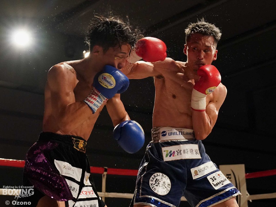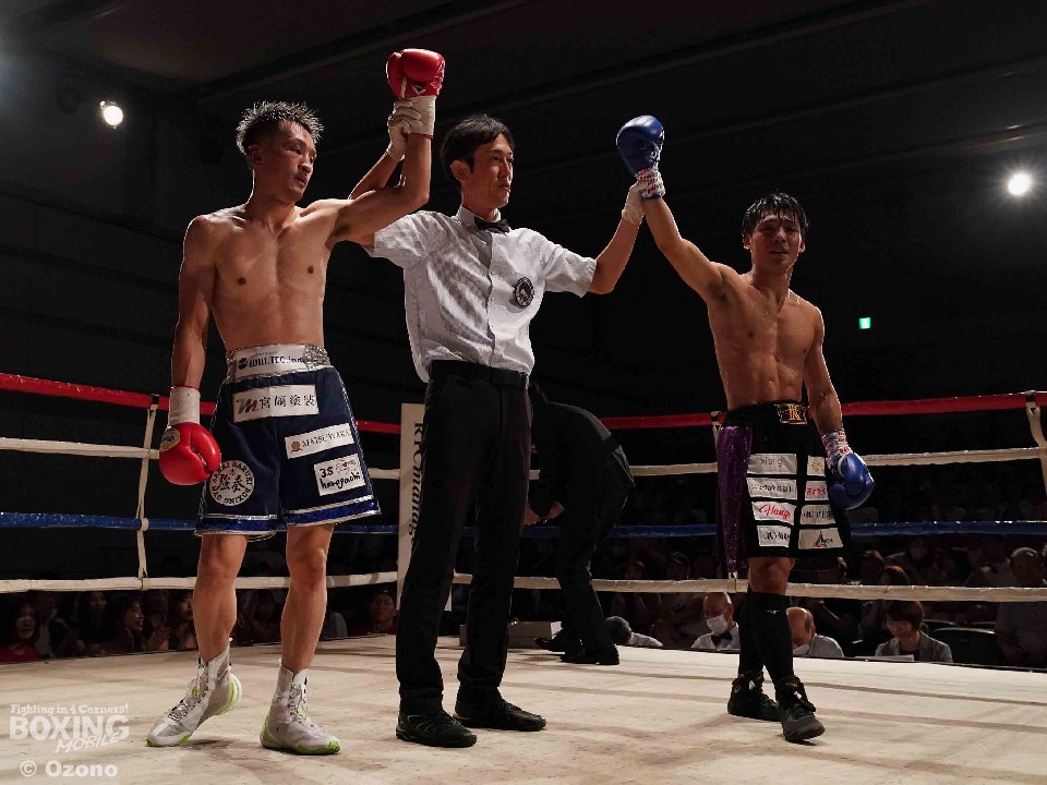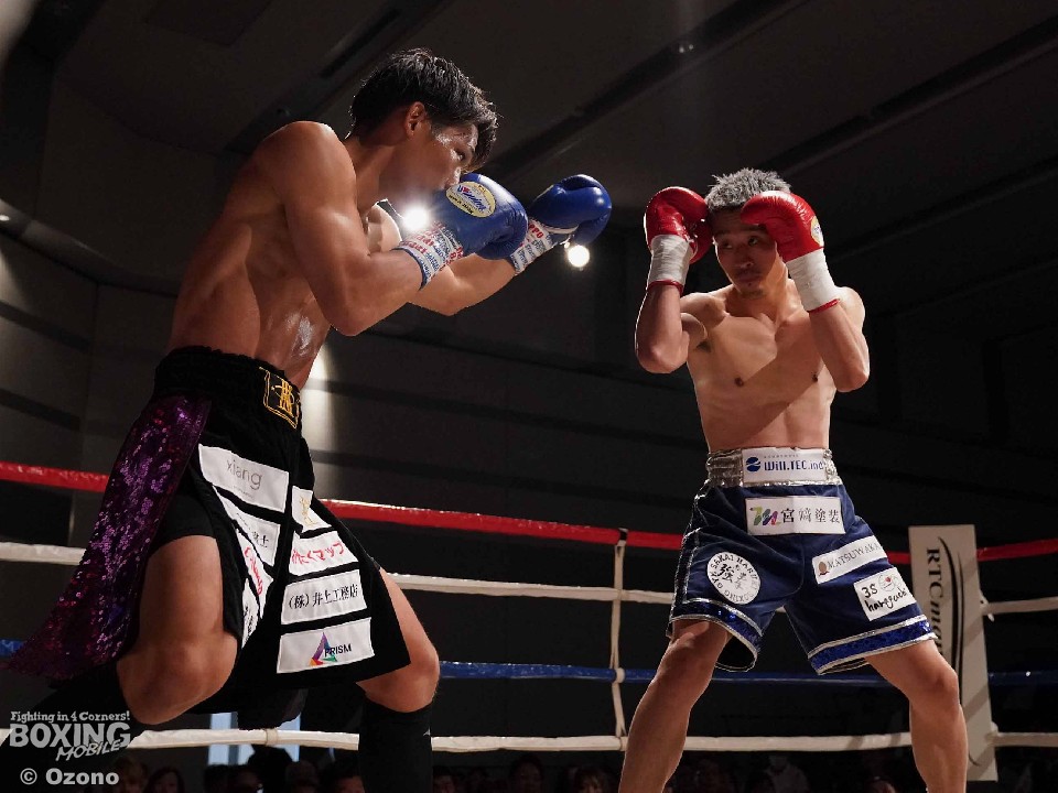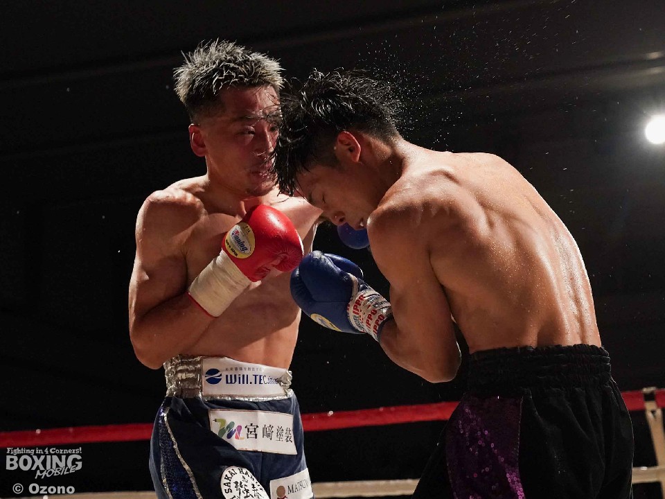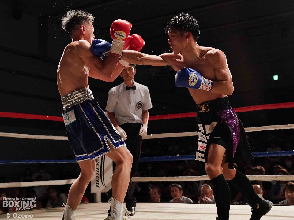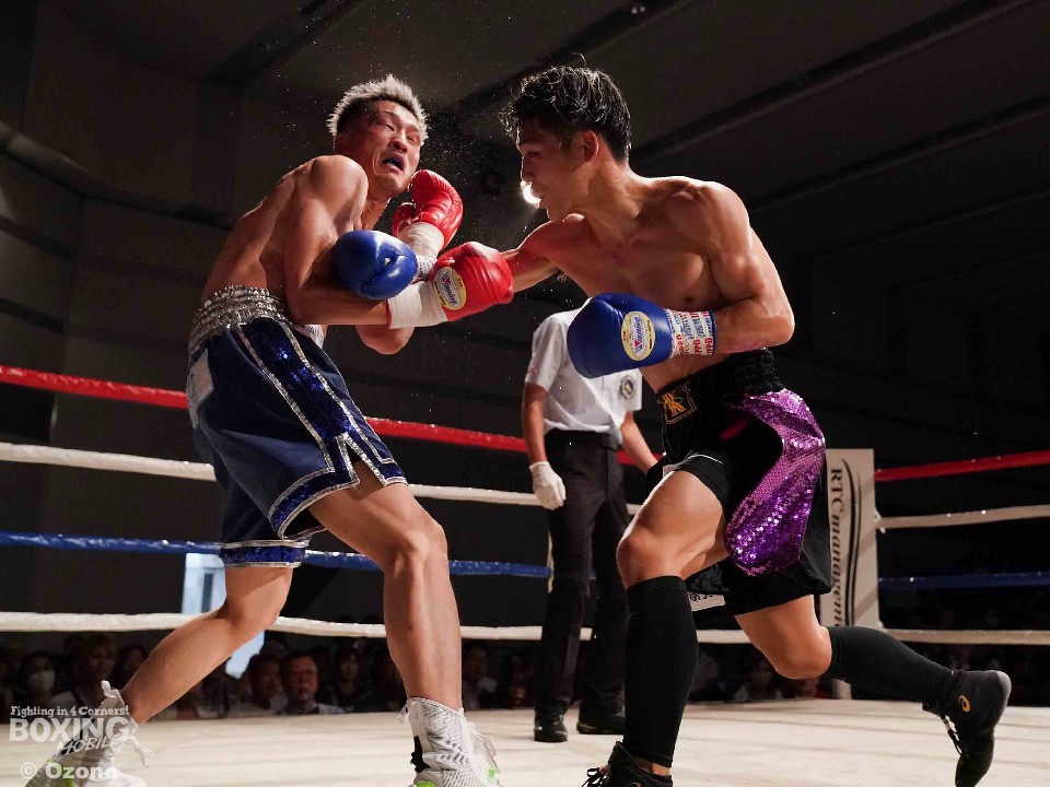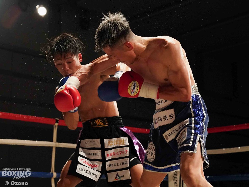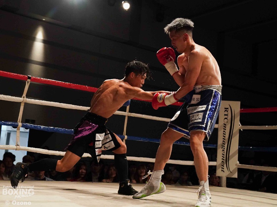 試合:左ジャブを突きながらサークリングして様子を伺う小林とジリジリと距離を詰め近距離で攻めるサウスポー河村の主導権の奪い合いに。2回、右のジャブから次の攻撃へ繋げたい河村に対し、ヒットアンドアウェイで冷静に応戦する小林。3回、距離を詰め強打を振る河村に対し、左右にポジションを変えカウンターを狙い放つ小林。4回、河村がプレスをかけ続け小林の退がらされる展開に。5回、両者共に強打でダメージ与え合う白熱したラウンドに会場は声援に包まれる。6回、主導権を奪い合う両者一歩も退かない撃ち合いへ。7回、上下へ打ち分け攻める小林に対し、ジャブを細かく放ち、左ストレートへ繋げ応戦する河村。最終8回、足を止め激しい撃ち合いを展開。どちらも譲らぬ攻防を広げるも決着は着かず判定へ。結果は引き分けとなったが観客からはこの日一番の拍手が送られた。
