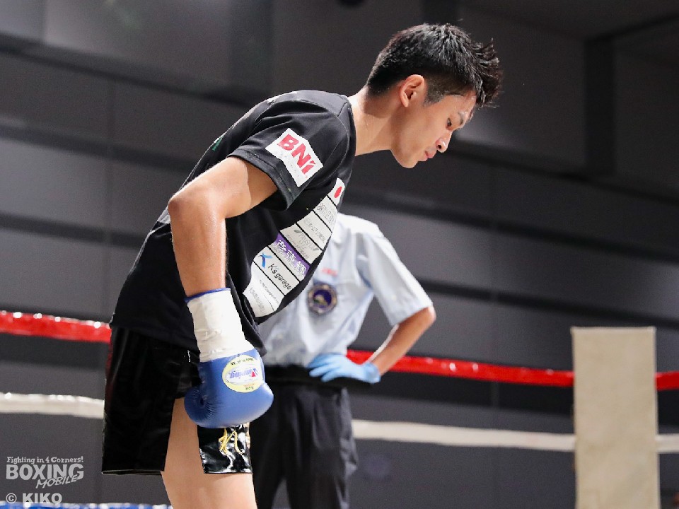 試合:北園がジャブから丁寧に組み立てると右オーバーハンドから仕掛ける。2回、後藤は相手のパンチをブロックすると単発の右ボディストレートをヒット。互角の打ち合いを演じた。3回、北園は偶然のバッティングで右目上をカット。お互いに決定打が出ないが、北園がわずかに上回った印象。最終4回もパンチを交錯させる中、北園はプッシュしながらワンツーを決めた。