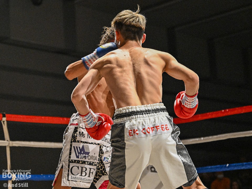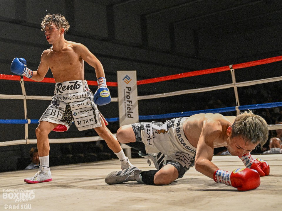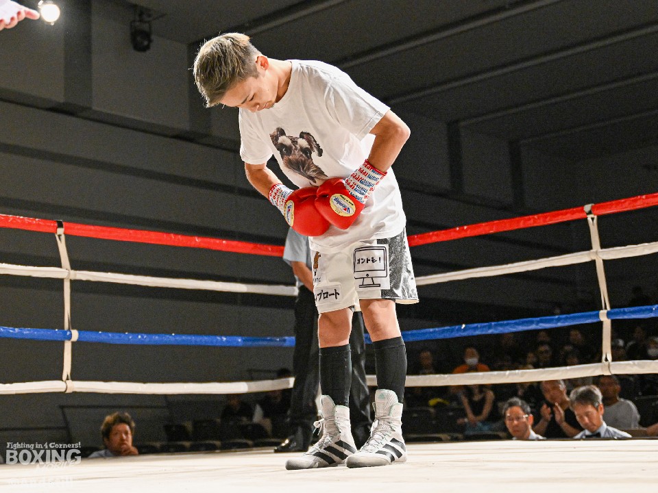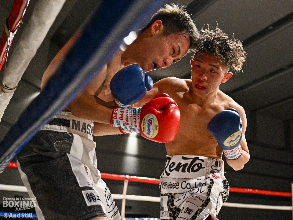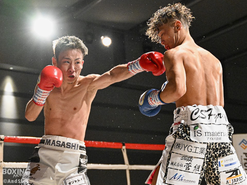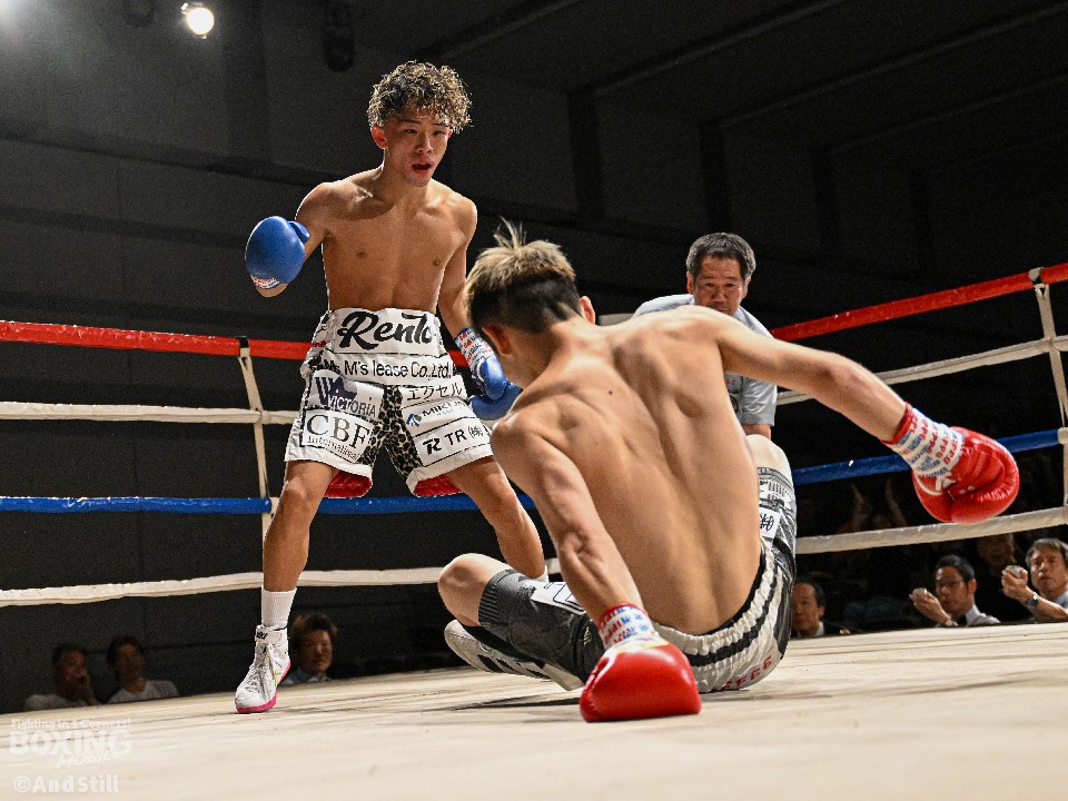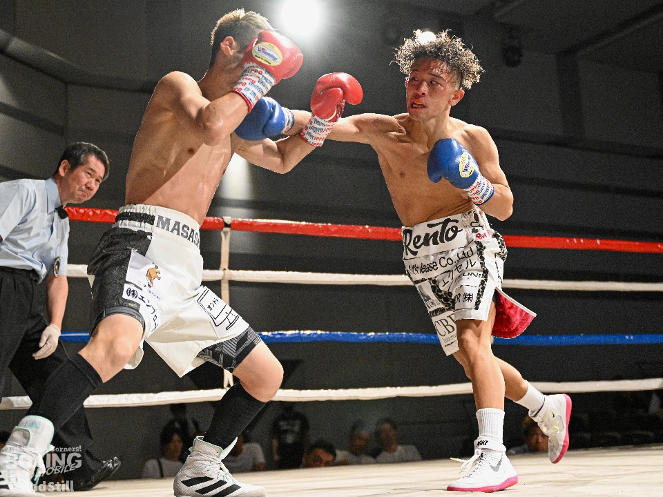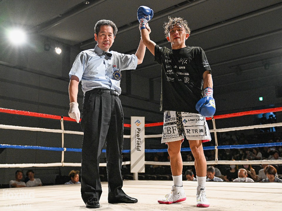 試合:昨年11月に西軍代表決定戦で対戦して以来の再戦。ジャブの差し合いから宮澤が右フックで膝を揺らし先制。緩急をつけた攻撃で攻め立てると、ラウンド終了間際に右クロスでダウンを奪った。2回、池田はプッシュしながら左右を繰り出すが、宮澤は右カウンターで2度目のダウンをゲット。再開後、ロープに詰めて怒涛の連打でレフェリーストップに持ち込んだ。宮澤がリベンジに成功しA級昇格を決めた。