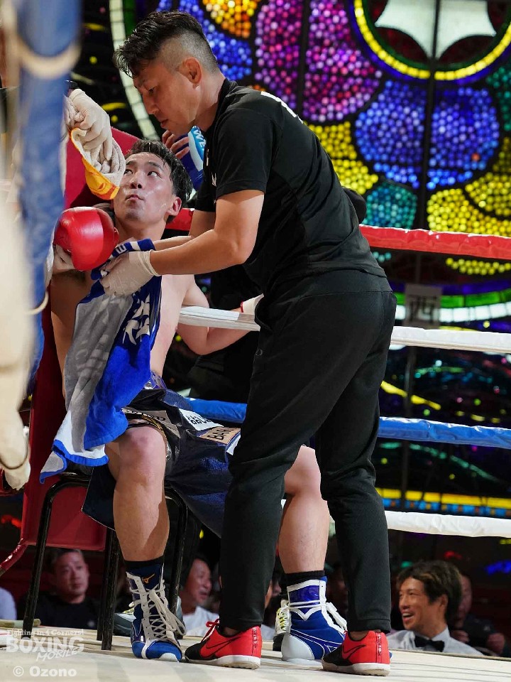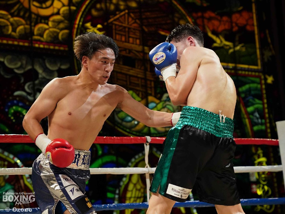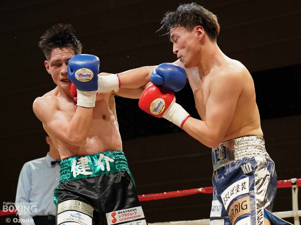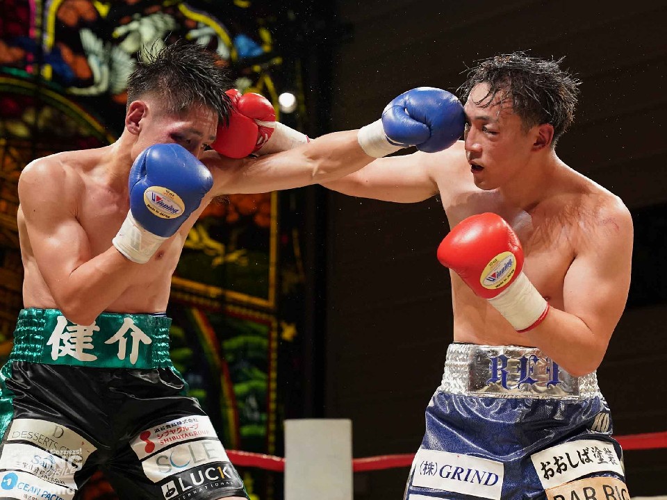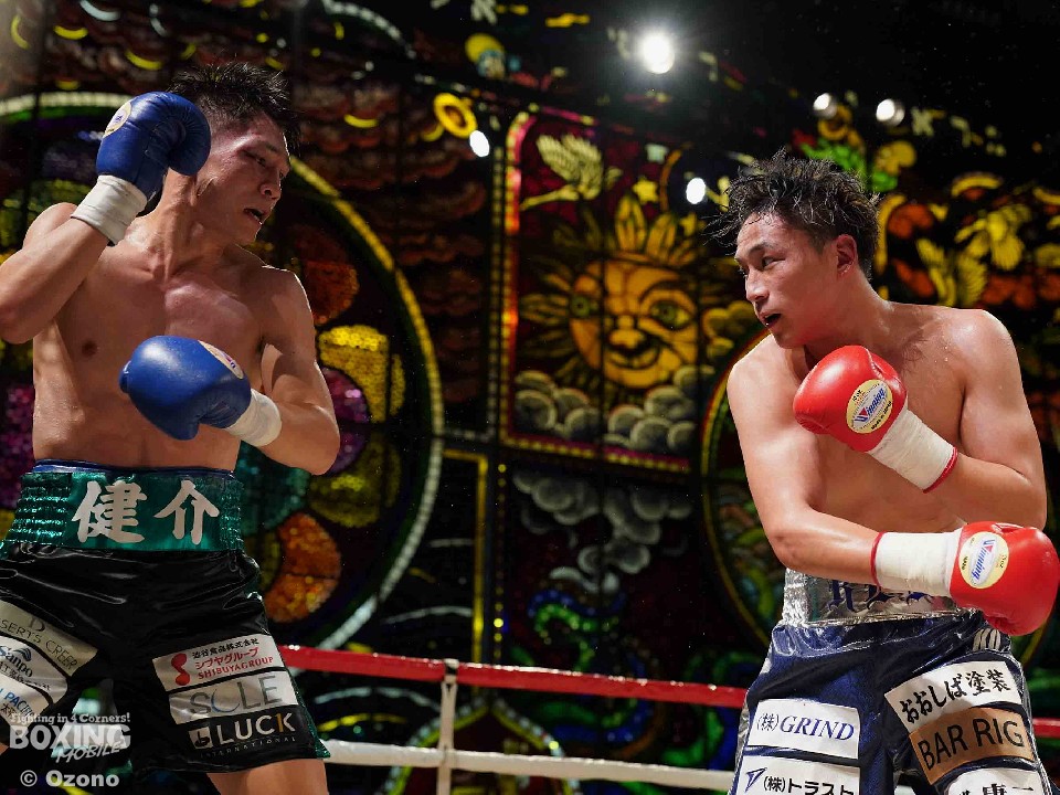 試合:サウスポー仲野が左オーバーハンドで膝を揺らすと右フックを強振。ブンブンとパンチを振り回し攻勢。後手に回った鈴木だがジャブから組み立てるとワンツーを返した。2回、鈴木は相手のパンチをブロックするとジャブからワンツーにつなげて反撃。仲野は折々で右フックを強振した。3回、仲野はダイナミックな左フック、右ボディを叩きつけるが、鈴木は右ショートアッパー、ワンツーで応戦。4回、仲野はボディワークでかわすと右フックをヒット。5回、鈴木は右ボディを突き刺すとコツコツとボディにパンチを集めて反撃。しかし、ヒッティングで右目上をカットした。6回、手数で鈴木、一発を返す仲野の構図。7回、仲野は右フックでグラつかせるとパンチをまとめてレフェリーストップに持ち込んだ。仲野が激戦を制した。