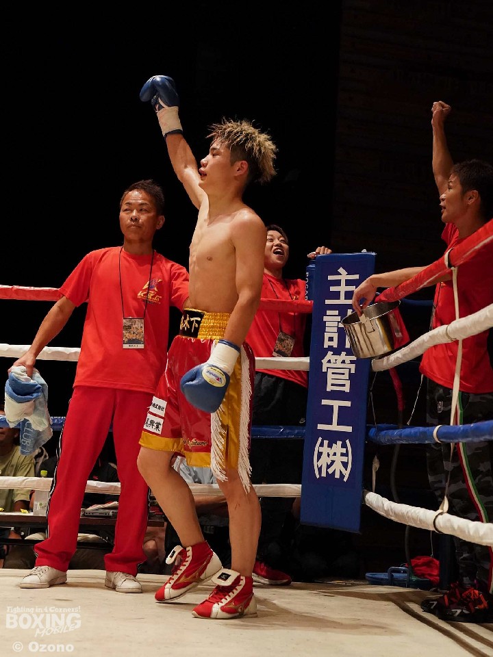 試合:デビュー戦同士の一戦は、松尾がジャブからワンツーにつなげて先制攻撃。やや後手に回った正學だがボディにパンチを集めて対抗。2回、正學は上下に打ち分けると足を使いながらメリハリのある攻撃を披露。3回、松尾はプレスをかけて左フックを好打。アグレッシブな姿勢を見せてジャッジに攻勢をアピールした。4回も松尾はグイグイと前に出ると右ストレートから切り込みポイントを奪った。17歳の松尾が初陣を飾った。