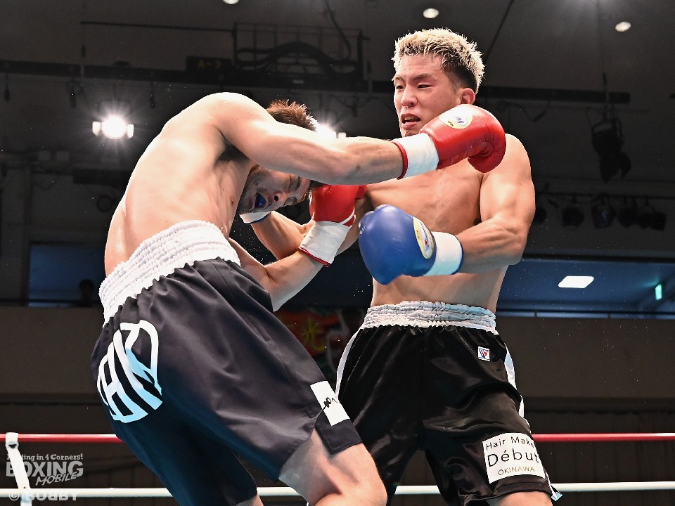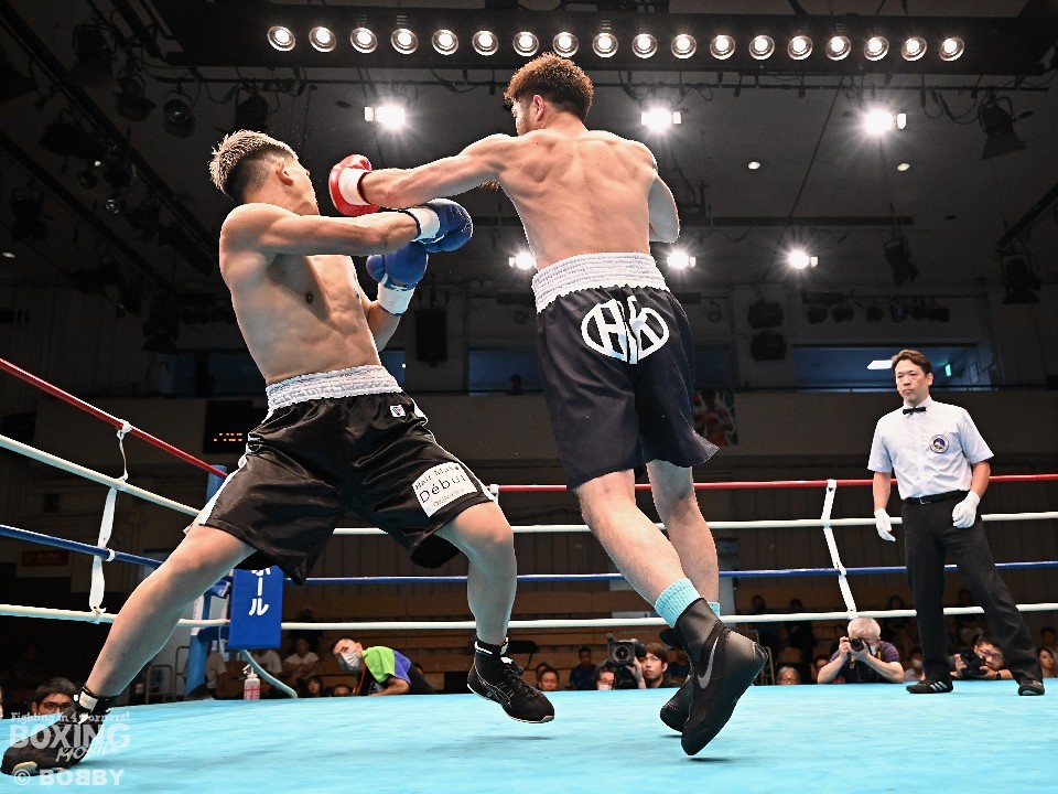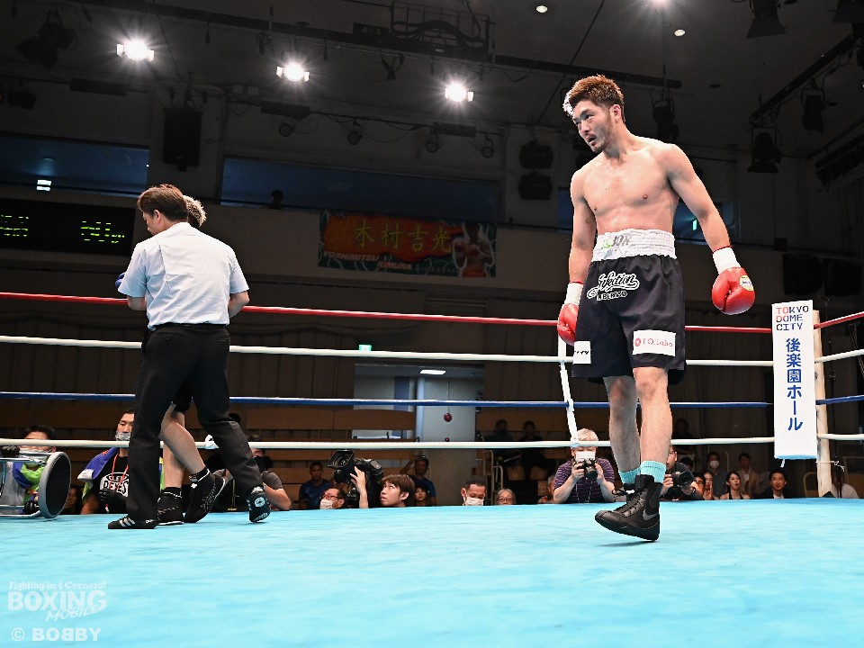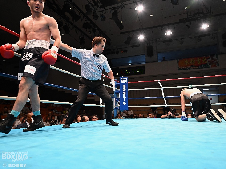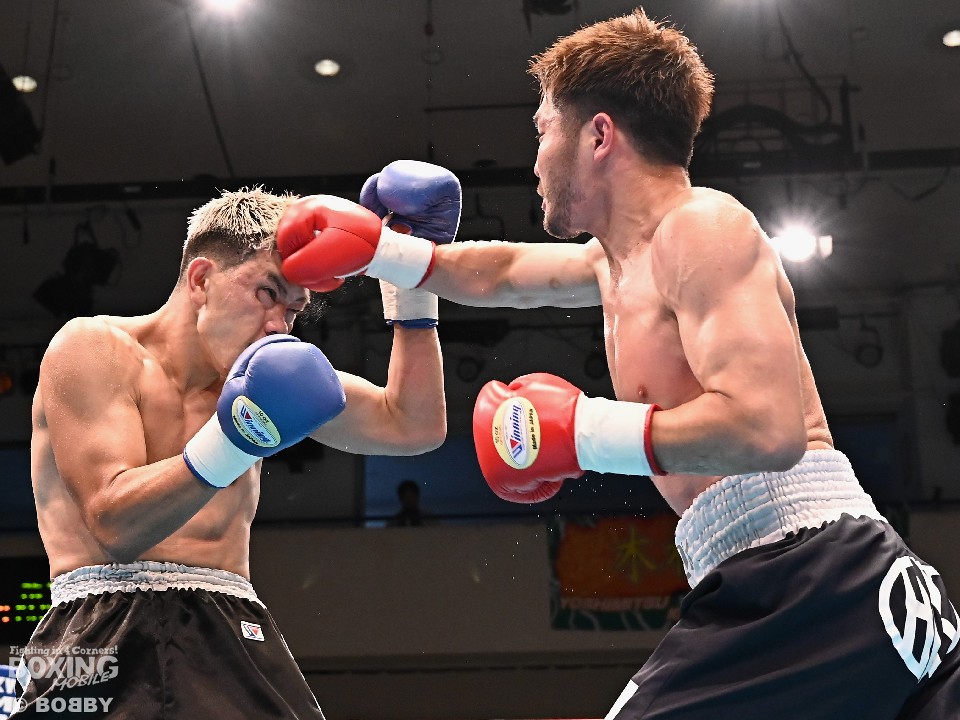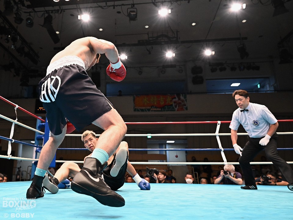 試合:タイミングの探り合いで慎重な立ち上がり。初回は大きな動きはないかと思われたが、ラウンド終了直前、左右田が左フックを振り抜きダウンを奪った。2回、左右田はステップインから右ボディストレートを好打。突破口を開きたい伊藤だが右につなげられず。3回、左右田はワンツー、左ボディで効かせると右から返しの左フックで2度目のダウンを演出。立ち上がった伊藤だがレフェリーは10カウントを数え上げた。
