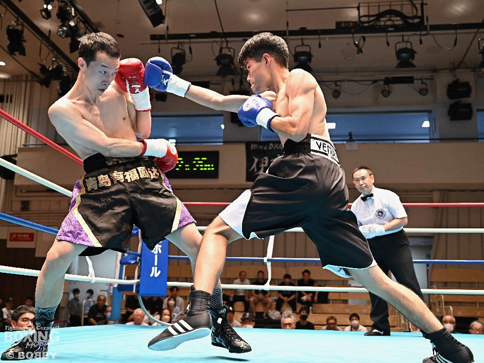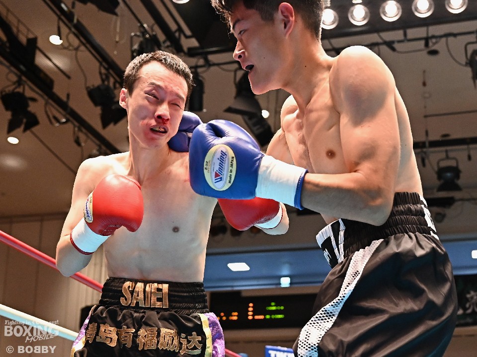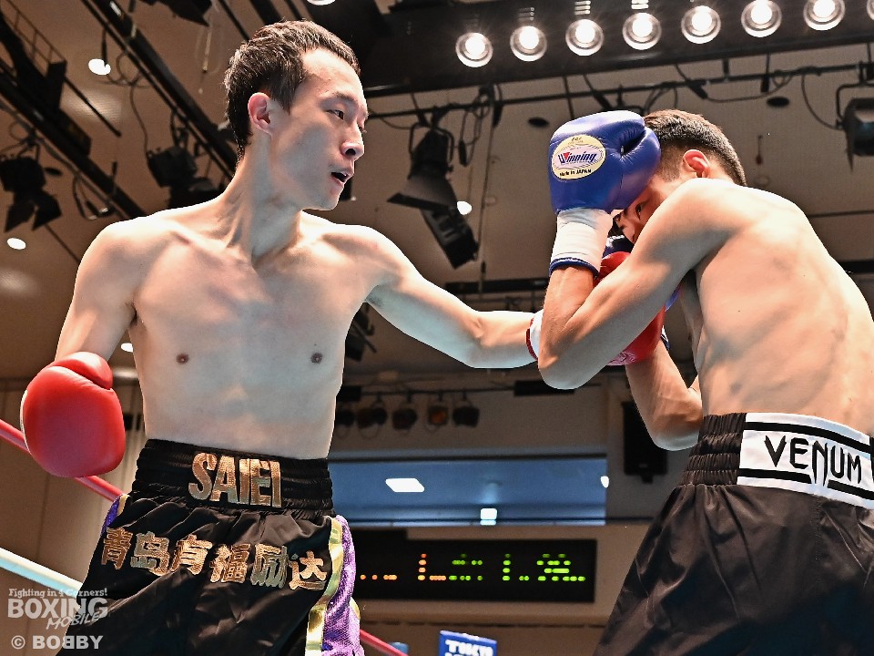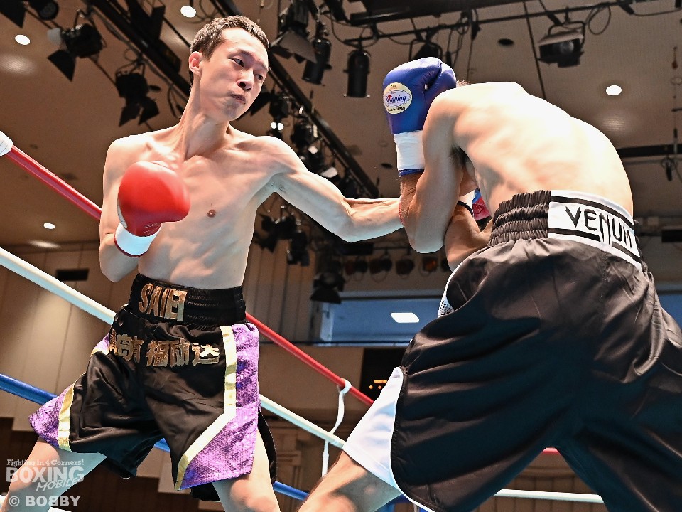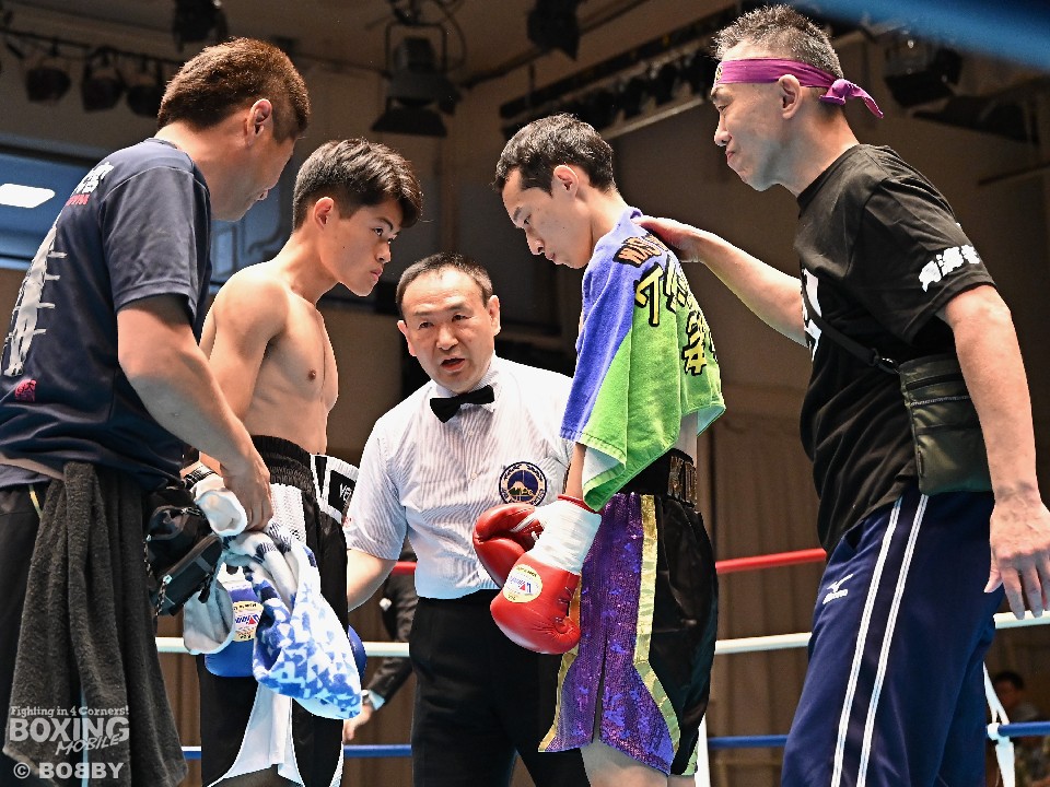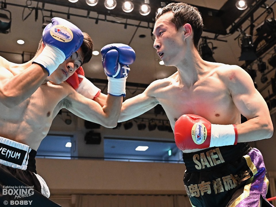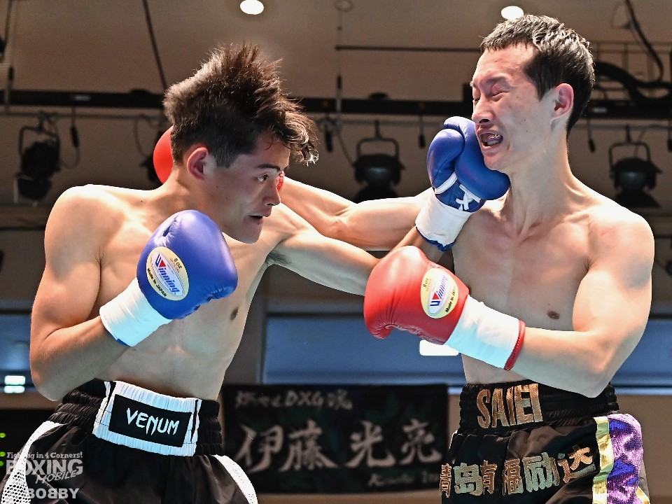 試合:今治が重心を落として右フックから左ボディをヒット。最初からエンジン全開でグイグイと攻め立てる。ペースを取られた斉は、右フックを返すが相手の勢いを止めることができず。2回も今治は攻撃の手を緩めずテンポよく左右を浴びせて攻勢。連打でレフェリーストップに持ち込んだ。17歳の今治が初勝利した。