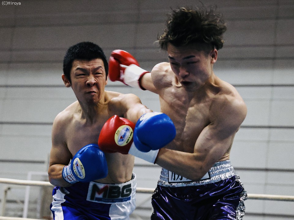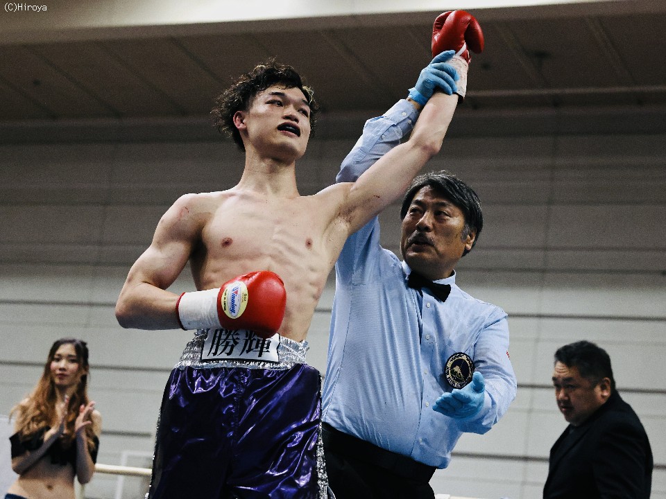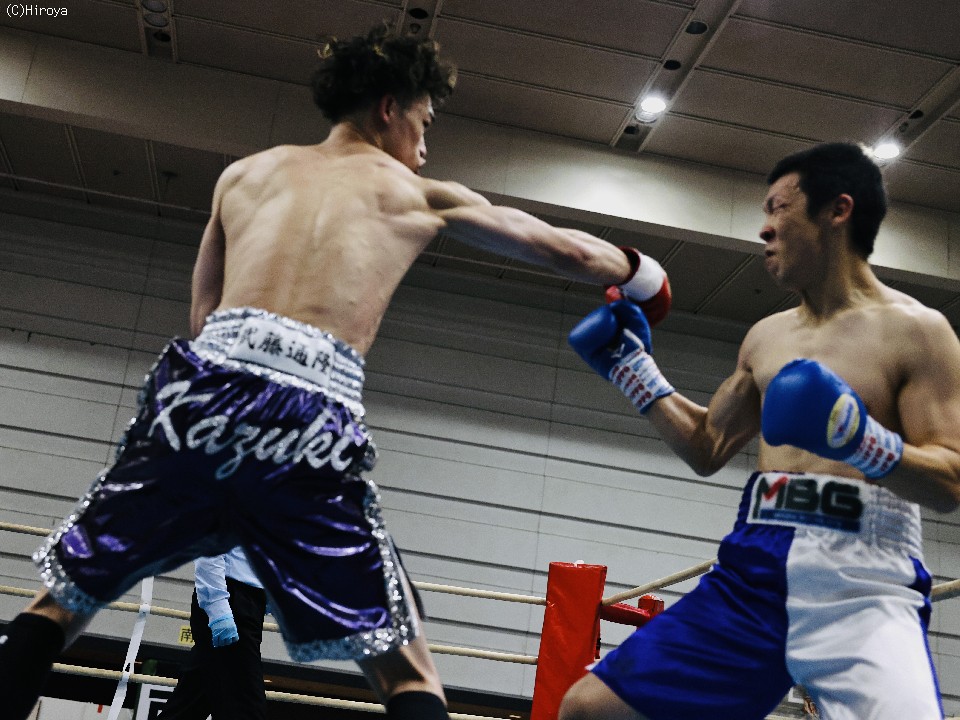 試合:サウスポー同士の一戦は西条が左オーバーハンドを叩きつけて先制攻撃。岩崎は右ボディを返して対抗。2回、岩崎はジャブから丁寧に組み立てると右フックを合わせて見栄えの良さをアピール。3回、岩崎はワンツーでガクッと腰を沈めさせるとパンチをまとめてダウンを先取。再開後、ボディにパンチを集めるとダメージの深さを考慮したレフェリーが試合をストップした。