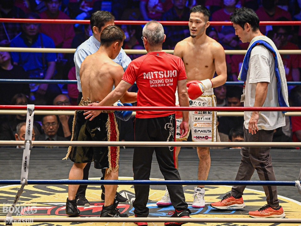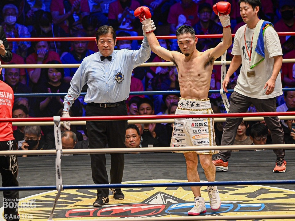 試合:日本スーパーバンタム級5位の池側とランカー挑戦の岸根の対戦。サウスポー同士による一戦は、ジャブの差し合いからスタート。池側が飛び込んで右アッパーを決めれば、岸根は打ち終わりに左オーバーハンドで対抗。2回、左フックを強振する岸根と左カウンターを狙う池側だが偶然のバッティング。足元がふらついた岸根に対し、レフェリーは休憩を与えた。岸根は頭がぶつかり左頬をカットした。3回、池側は左カウンターを好打。強気に前に出る岸根だが、池側は距離をキープすると逆ワンツー、上下の打ち分けと持ち前のテクニックを披露。5回、池側はワンツーで顔を弾くとパンチをまとめてペースを維持。ラウンド終盤にもカウンターの右フックでダメージを与えた。勝負が決まったのは6回。池側はフェイントを織り交ぜながら右アッパーでダウンを奪うと、連打でレフェリーストップに持ち込んだ。