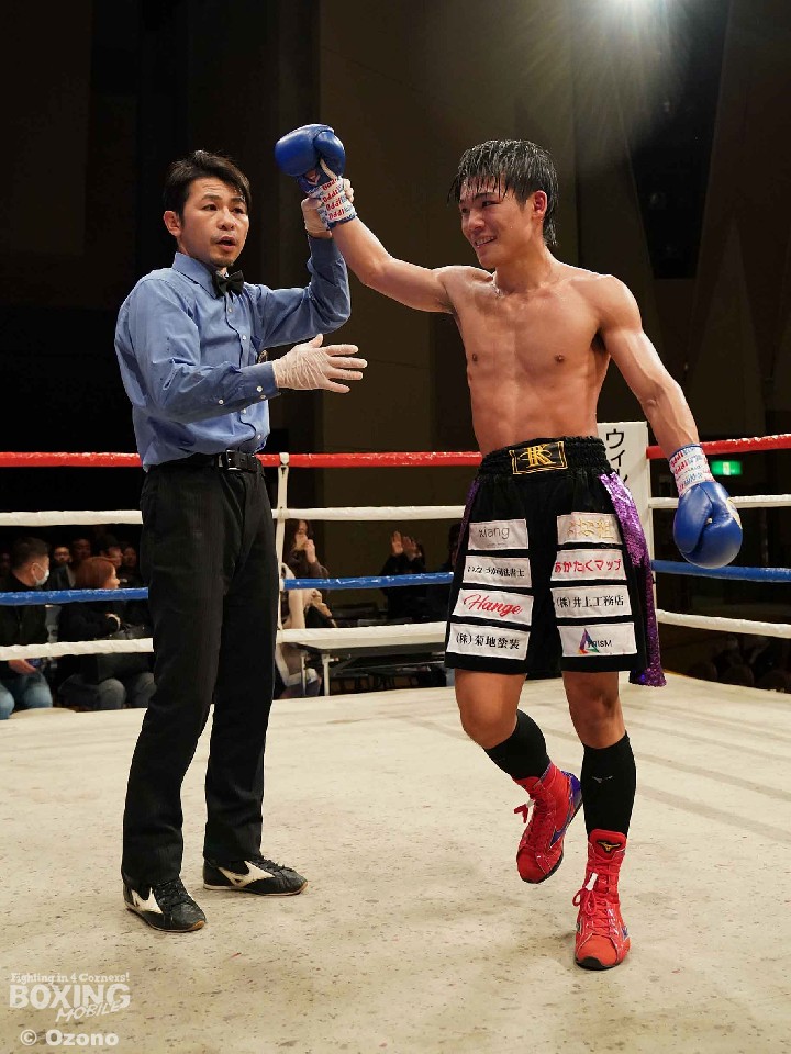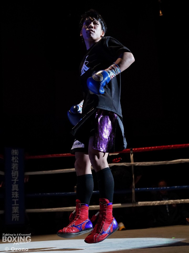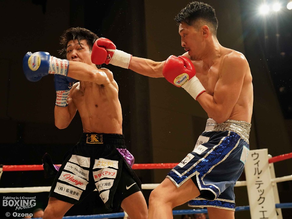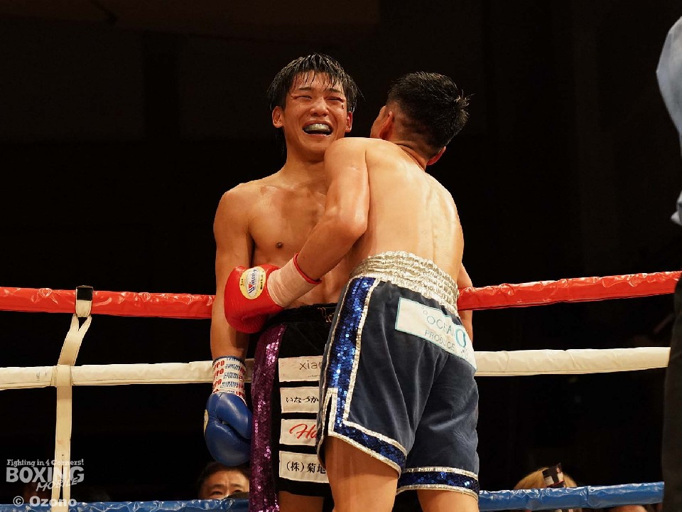 試合:接戦を制したのは小林。初回、河村が広いスタンスから右を伸ばした。小林は一歩前に出てワンツーを打つ。サウスポーの河村は左ストレートを2発、右フックも1発クリーンヒットした。試合が動いたのは3回、小林の右ストレートが河村をしっかり捉えて、ダウン。ダメージを残しながらも河村は右を当て返した。4回は激しい打ち合い。小林はバッティングで右目上をカットした。5回、河村が回復。前の手を突いた後に左ストレートをヒットした。6回は、河村が距離をキープすると、連打で前に出てきた小林の打ち終わりにカウンターを合わせた。7回、小林の猛烈なラッシュに河村も手数で応戦。バッティングで河村は右目をカット。最終回、頭をつけて打ち合った両者だが、決定打には恵まれず。