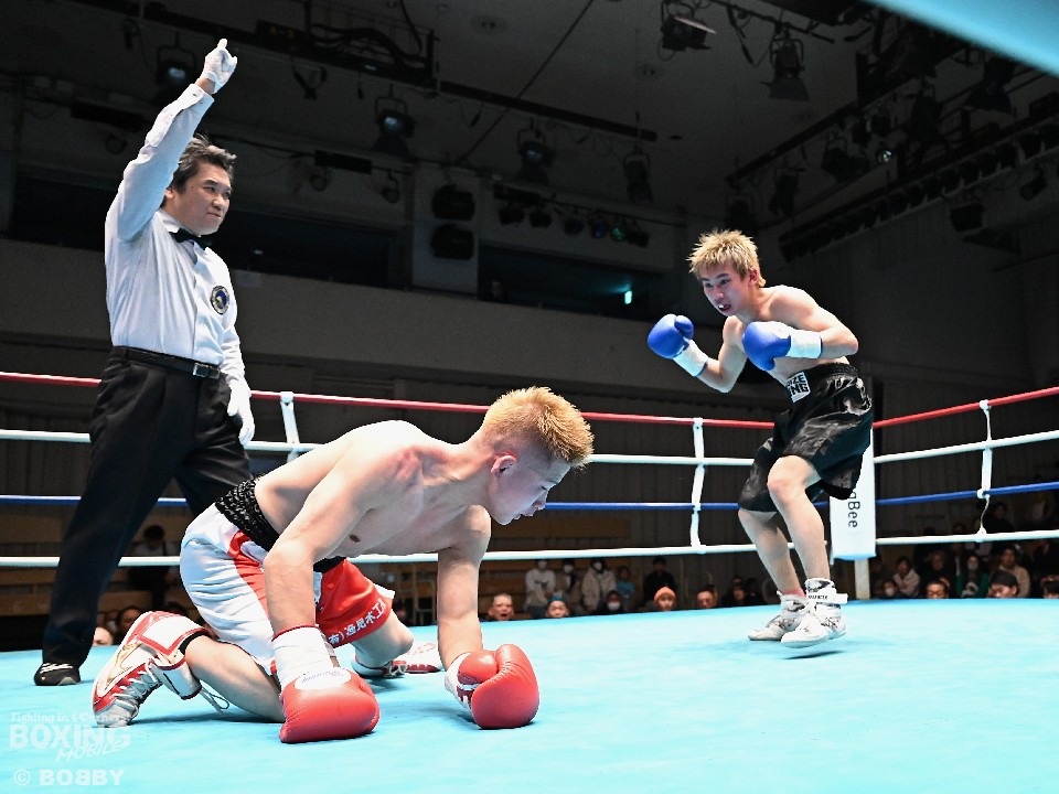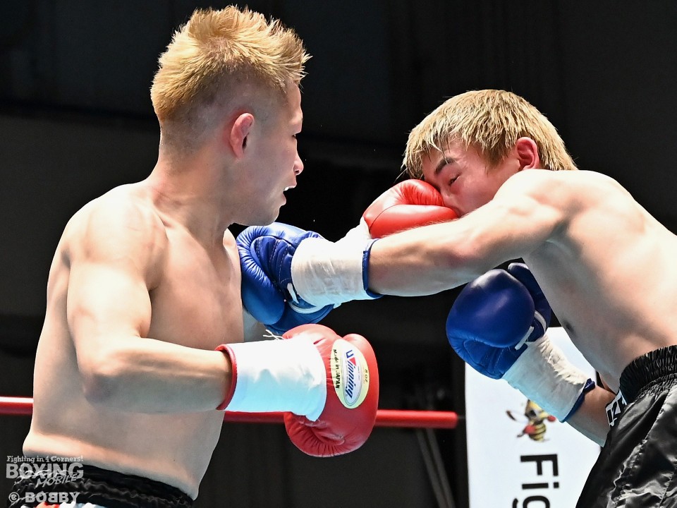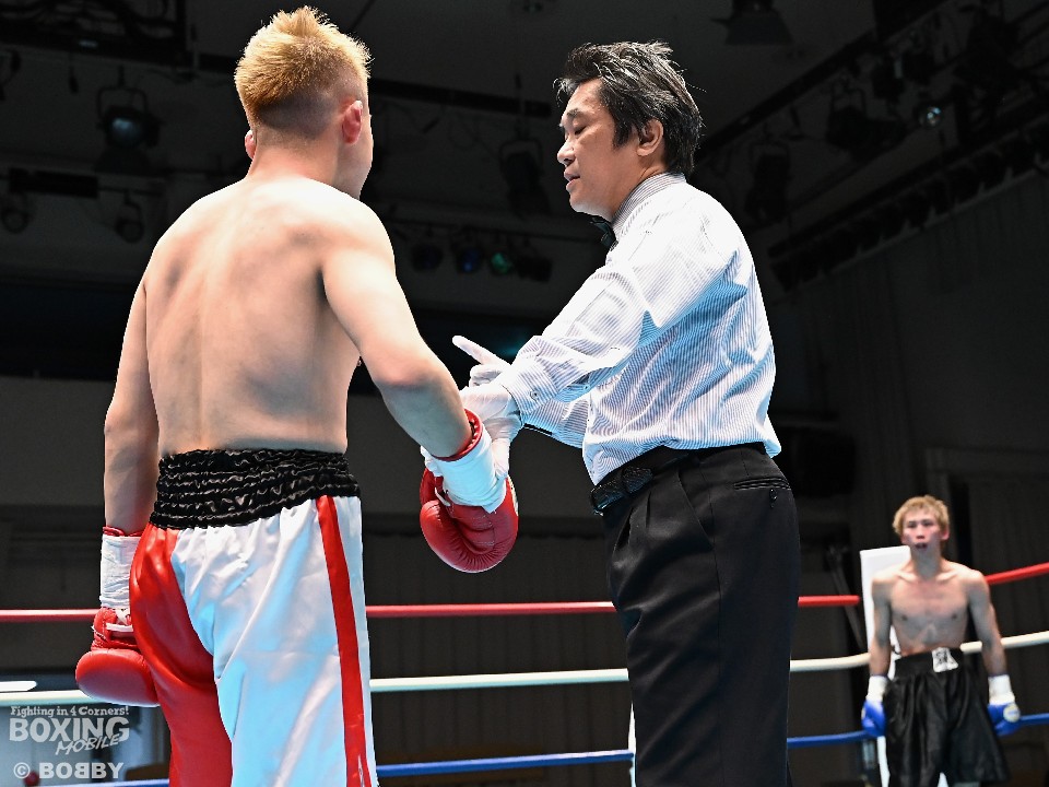 試合:根岸と山田の対決。テンポの速い展開。ジャブを突いて右ストレート、左フックとコンパクトに手を出した山田に対して、根岸は打ち終わりに右ストレートを合わせた。2回、ジャブの差し合いからプレスをかけた根岸が右アッパーをコンパクトに振り上げてリズムを作った。山田もジャブと右ストレートに左を返して右アッパーを返した。3回、近距離での打ち合い右アッパーと左ボディを叩いた根岸。山田は下がらず左フックとジャブで突き返した。根岸がプッシングで減点1。最終回、山田はアウトボクシングしながら、ワンツーと左フックリズムを作る。根岸は前に出て体をつけて右アッパーを混ぜて打ち込むが、試合終了間際に山田が右ストレートをカウンターに合わせてダウンを奪った。立ち上がった根岸だが、試合終了のゴングが鳴った。
