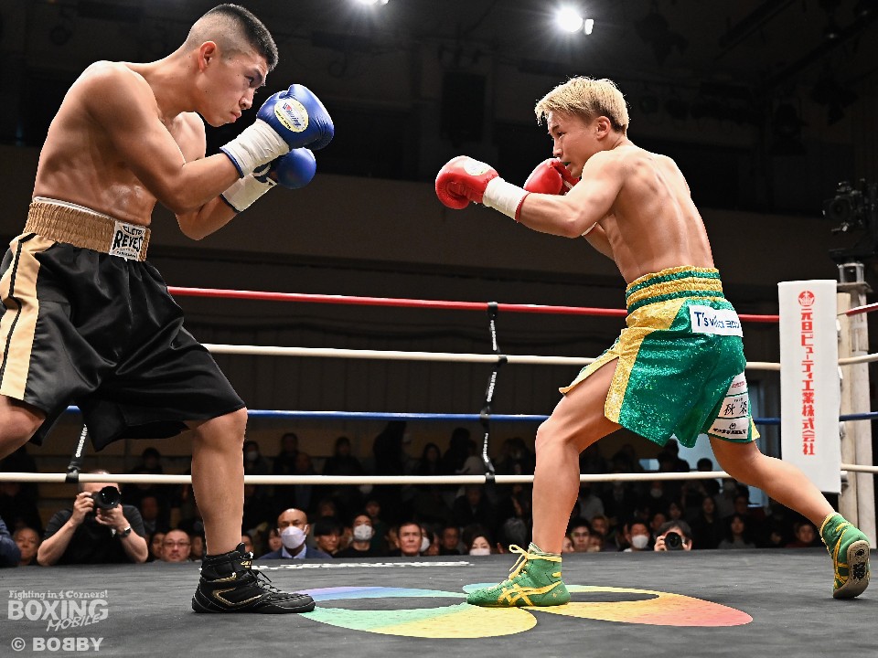 試合:ジャブの差し合いでスタートした試合は、川上が右オーバーハンドで膝を揺らして見栄えの良さをアピール。2回、出入りを意識しながら右フックを叩きつける川上に対し、矢作は左ボディをコツコツと集めて対抗。し烈なペース争いが続いた。3回、中間距離でパンチを交錯させる中、矢作が左ボディを突き刺した。4回、激しい打撃戦が最後まで続きお互いに譲らず。試合終了のゴングが鳴った。ジャッジ2者が引き分けとしたため勝敗がつかなかった。