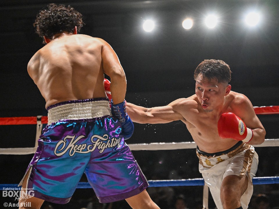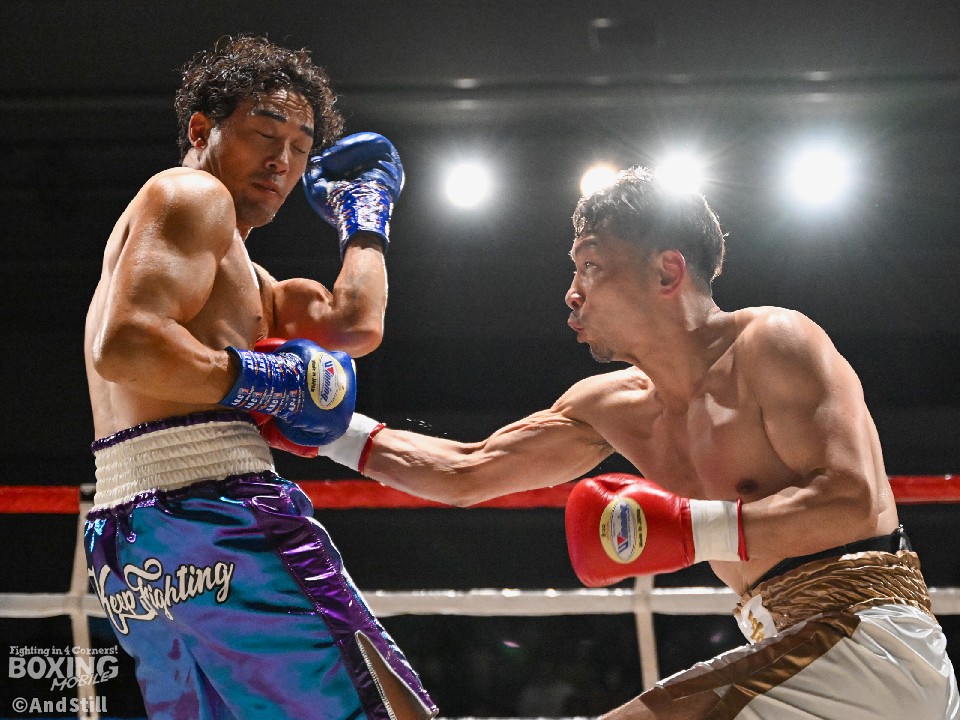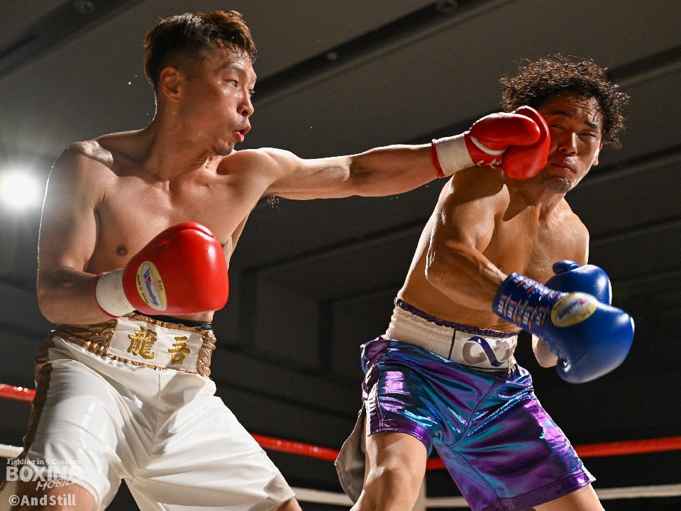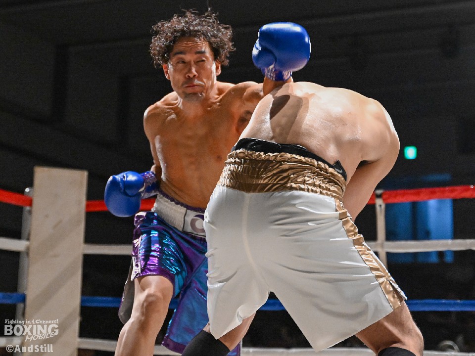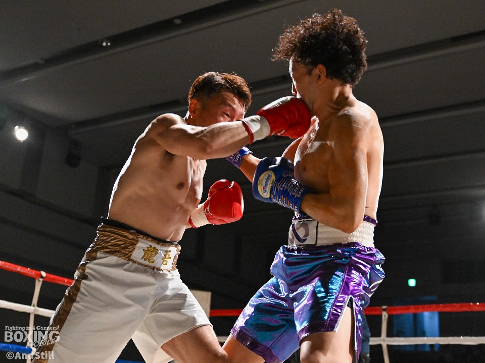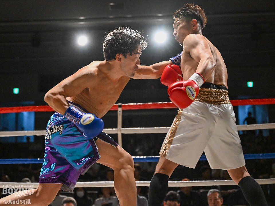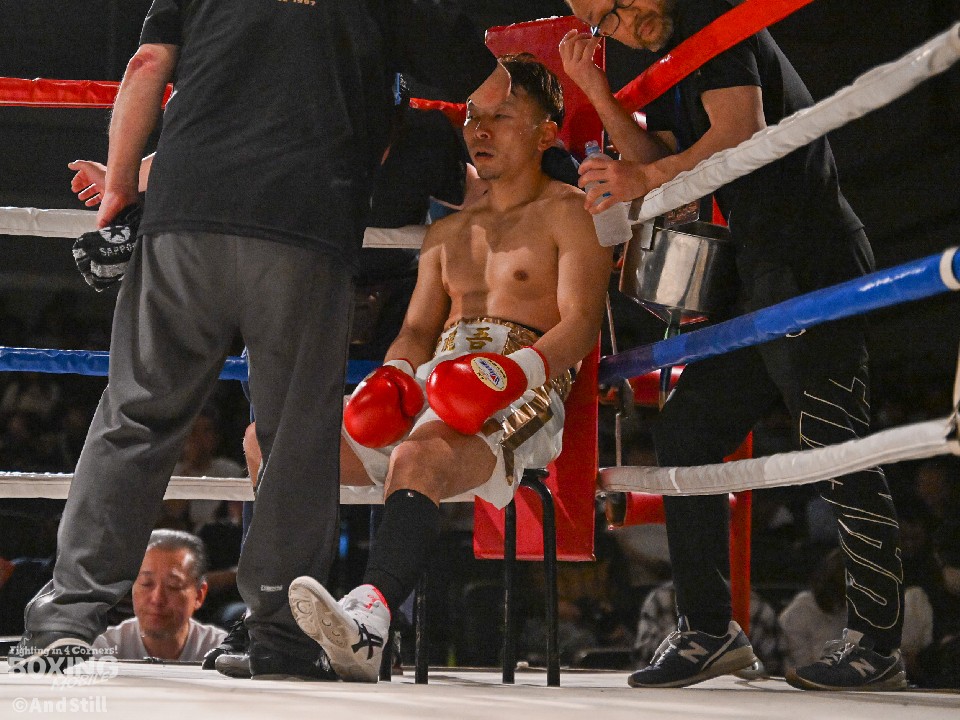 試合:34歳同士による一戦は、お互いに慎重な試合運び。サウスポー高橋が左ストレートを決めれば、岩崎は右ボディストレートで対抗。2回、中間距離で偵察戦が続き、決定打を打ち込めず。3回、岩崎は右フックでバランスを崩させて見栄えの良さをアピール。4回、高橋はワンツー右フックをヒット。しかし、その後はお互いに決定打を作り出すことができなかった。採点は割れたが岩崎に軍配が上がった。