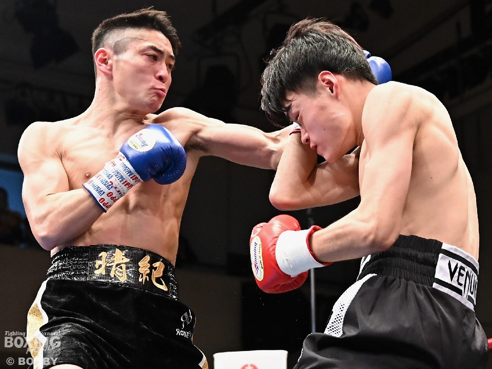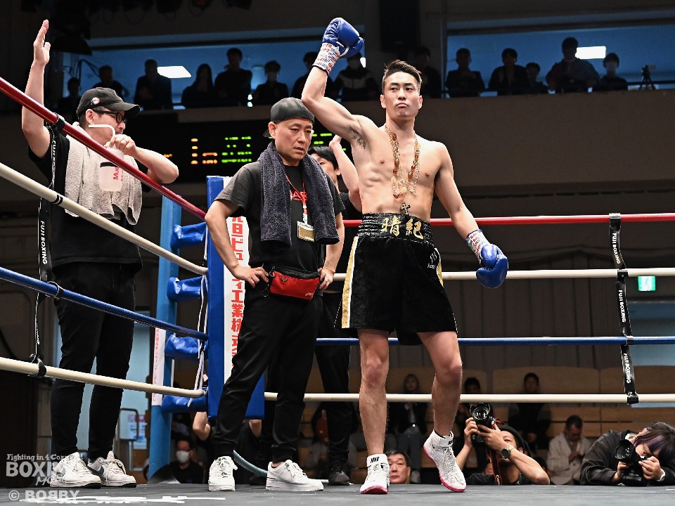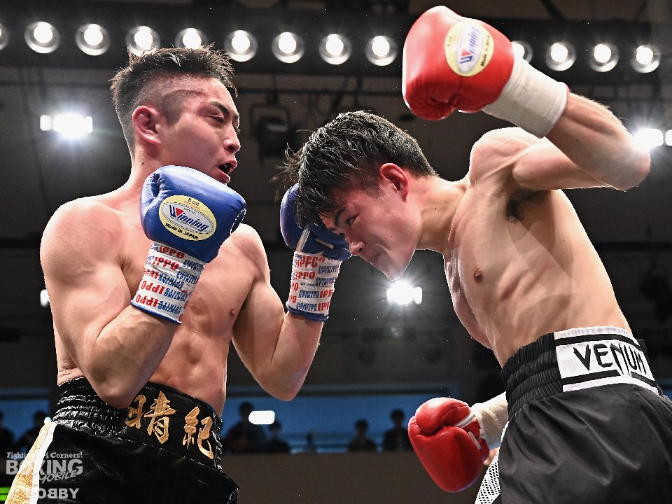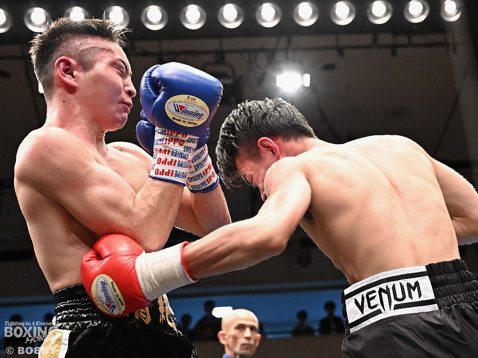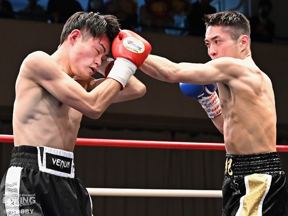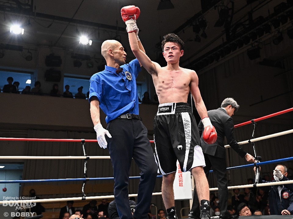 試合:右ストレートから切り込む今治に対し、飯塚は右で迎え撃つと左ボディをヒット。前に出てくる相手に上手くパンチを合わせて有効打で上回った。2回、飯塚は左右フックで押し込み攻勢をかけたが、ここを踏ん張った今治は右ストレートで顔を弾きペースを手繰り寄せた。3回、体力の消耗が激しい中、今治の手数が上回った。飯塚は顎を痛めたようだ。4回、今治の攻勢が続く中、飯塚の顎の腫れがひどくレフェリーはドクターチェックを要請。これ以上の試合続行を不能としたレフェリーが試合をストップした。