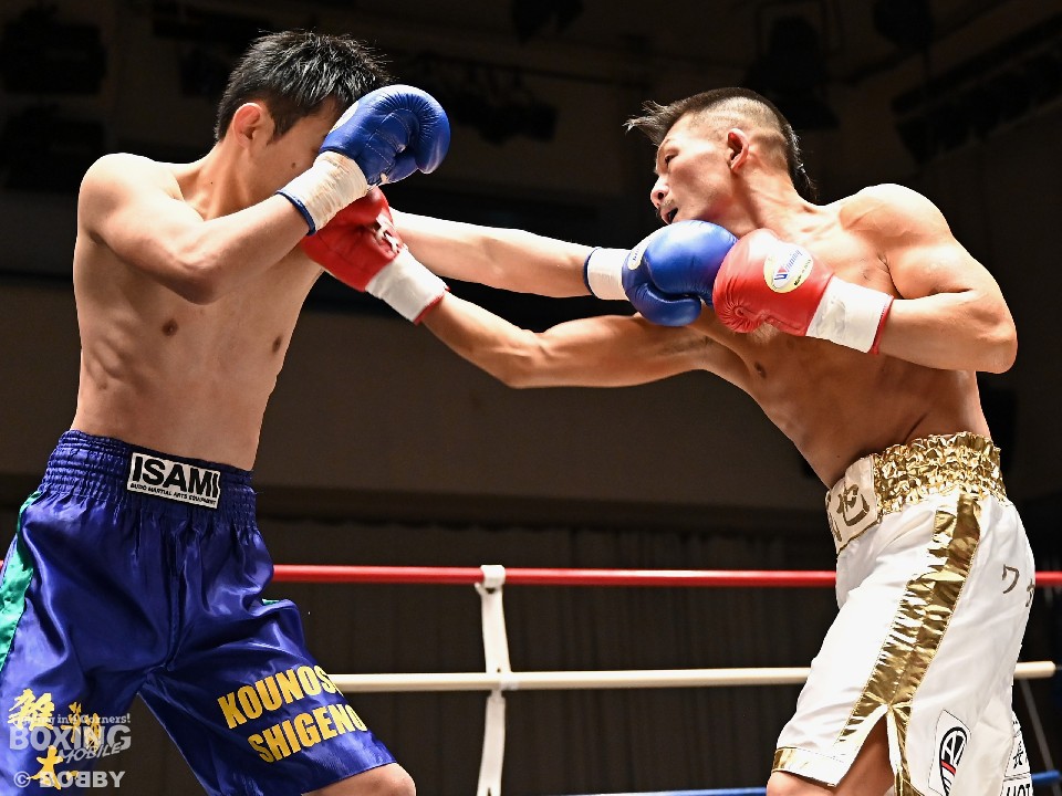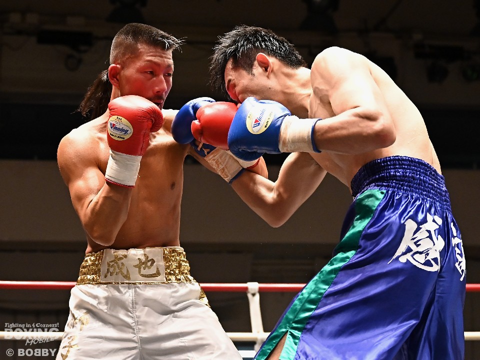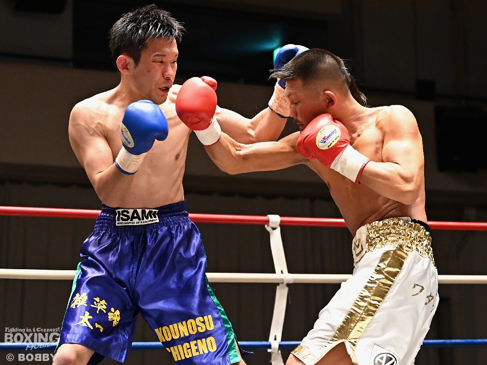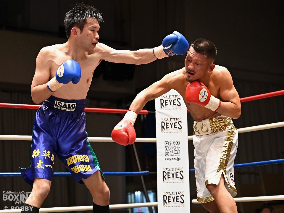 試合:山口が右アッパーからコンパクトなコンビネーションで先制攻撃。太一はガードで被弾を最小限に抑えると、右フックをねじ込み見栄えの良さをアピール。続く回も太一は打ち終わりに右クロスを決めてポイントを加点した。リズムを掴んだ太一は3回、ジャブから左フックを好打。ラウンド終盤には右フックで顔を弾いた。4回、山口は左ボディを突き刺し反撃。5回も山口はボディに的を絞りコツコツと当てるが、太一も負けじとボディを叩くとロープに詰めて連打を浴びせた。6回、回転力を活かした連打で打ち合ったが、ここでも太一の有効打が上回った。ジャッジ3者ともに4ポイント差をつけた太一が勝利した。