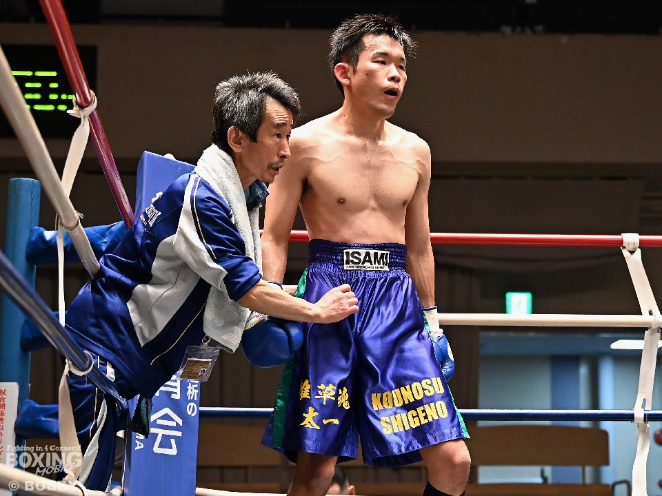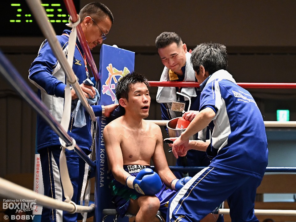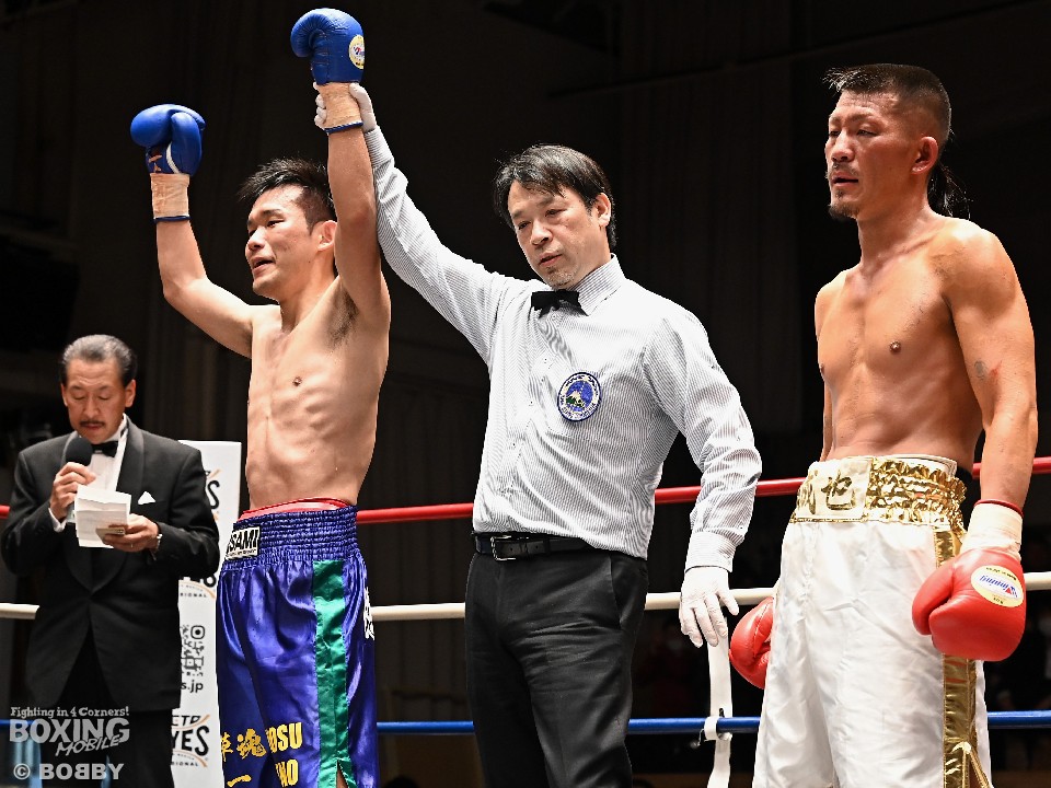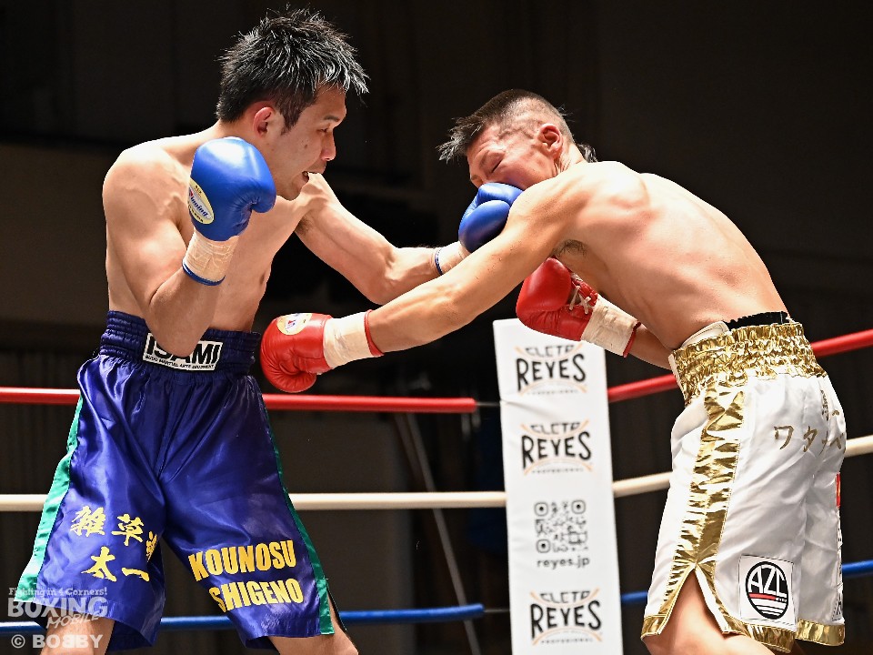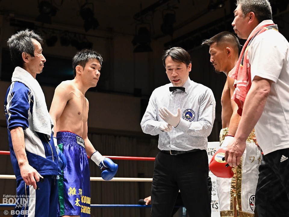 試合:山口が右アッパーからコンパクトなコンビネーションで先制攻撃。太一はガードで被弾を最小限に抑えると、右フックをねじ込み見栄えの良さをアピール。続く回も太一は打ち終わりに右クロスを決めてポイントを加点した。リズムを掴んだ太一は3回、ジャブから左フックを好打。ラウンド終盤には右フックで顔を弾いた。4回、山口は左ボディを突き刺し反撃。5回も山口はボディに的を絞りコツコツと当てるが、太一も負けじとボディを叩くとロープに詰めて連打を浴びせた。6回、回転力を活かした連打で打ち合ったが、ここでも太一の有効打が上回った。ジャッジ3者ともに4ポイント差をつけた太一が勝利した。