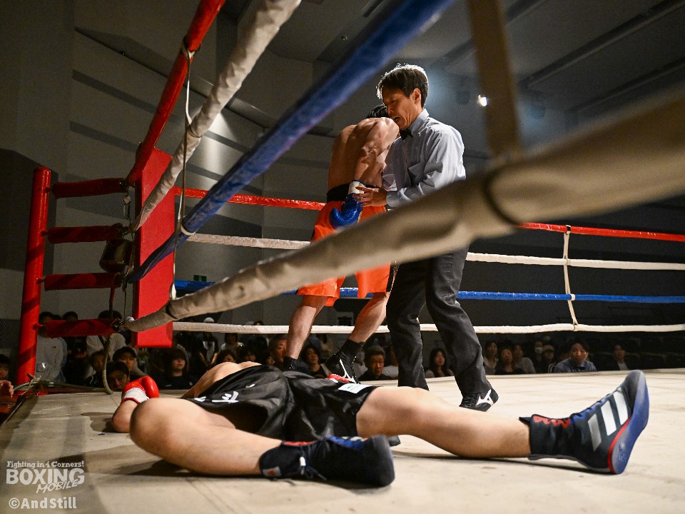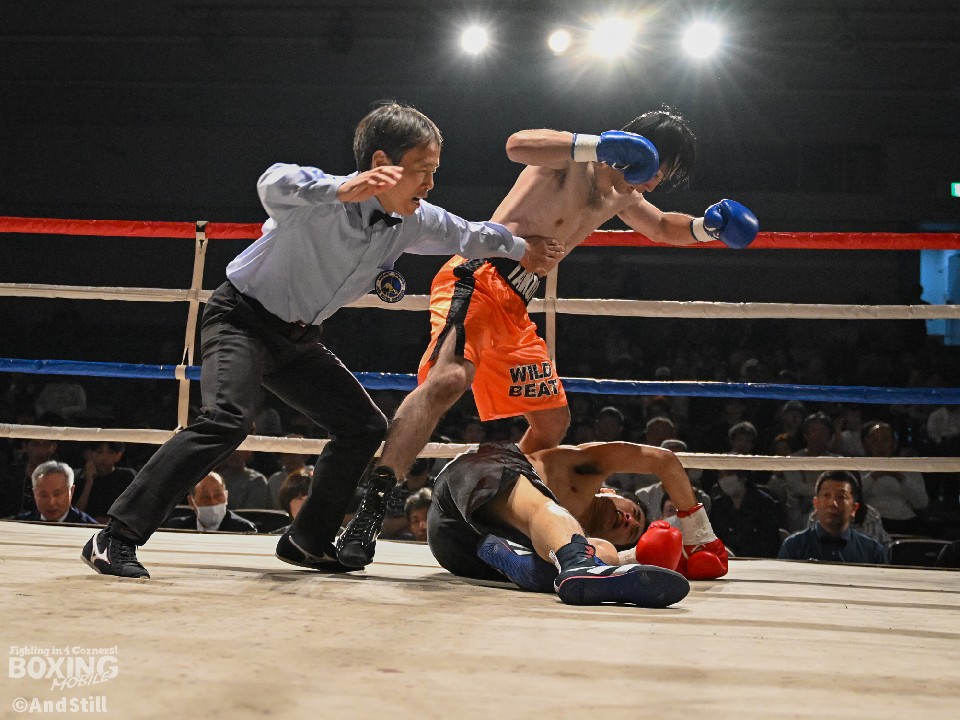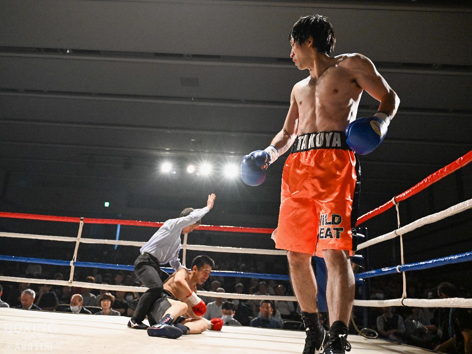 試合:志田が頭を振りながら右から切り込むが、橋本はジャブで突き放してペースを掌握。すると右ストレートを振り抜きダウンを演出。再開後、右フックを叩きつけて倒すとレフェリーはカウント途中で試合をストップした。橋本が連敗脱出に成功した。
