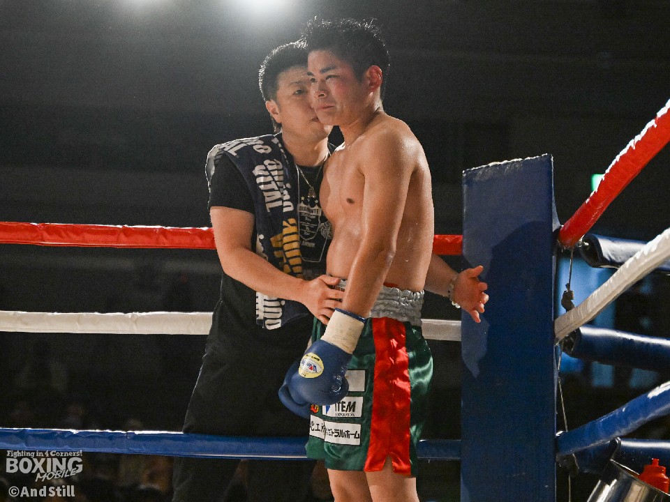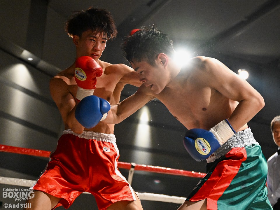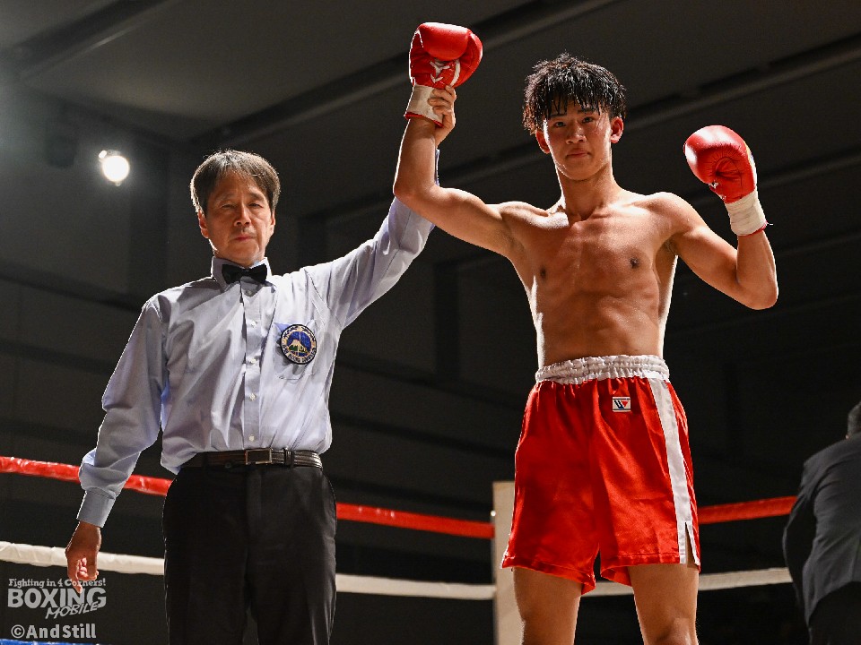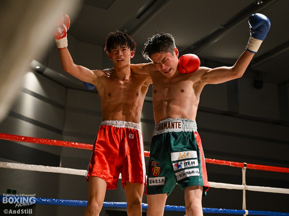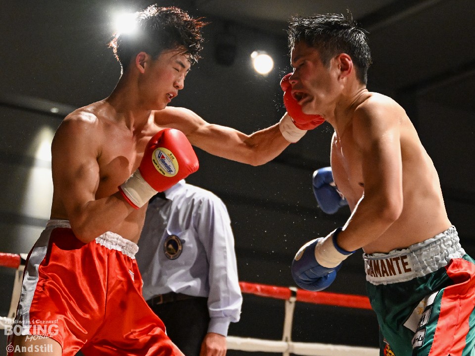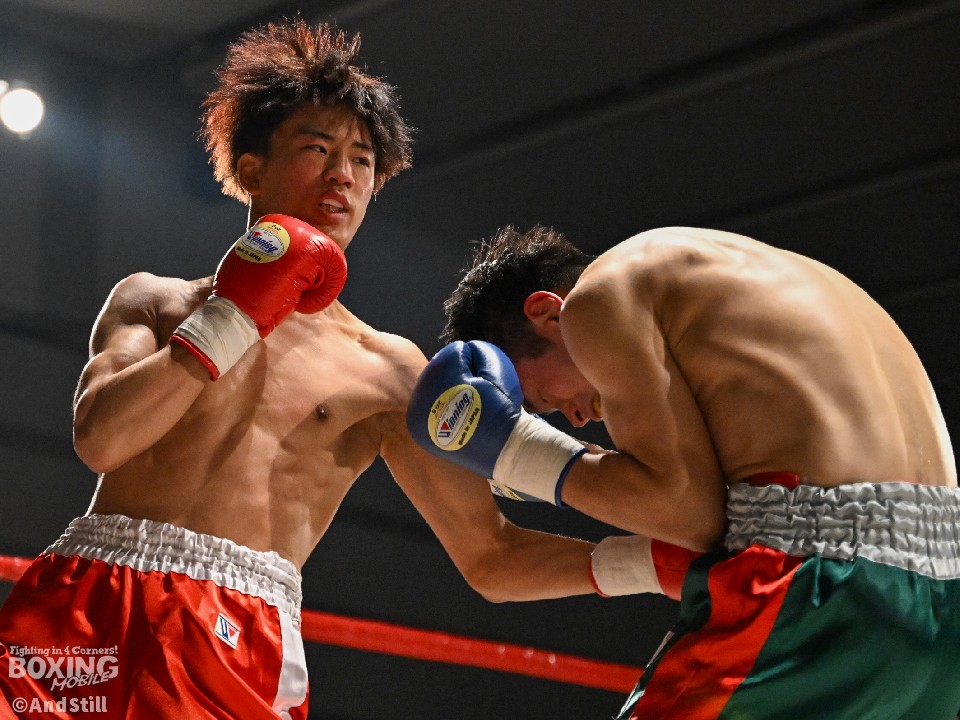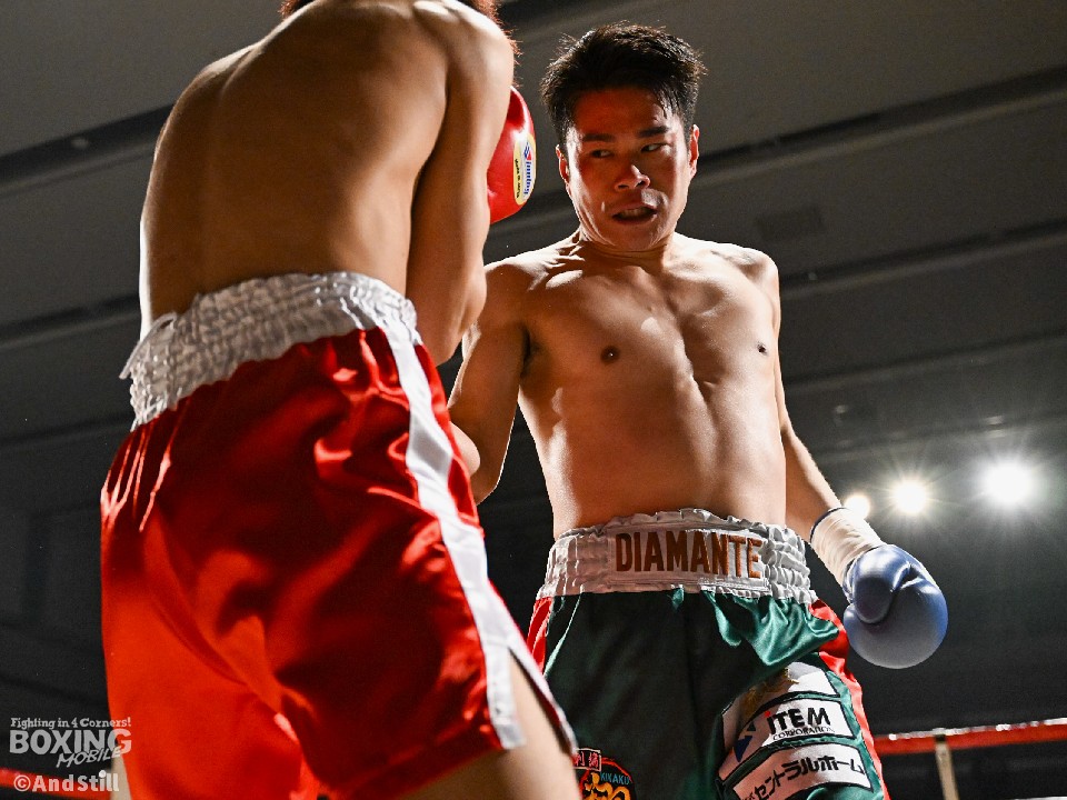 試合:中原がジャブから左ボディにつなげて先制攻撃。前林は左右フックを叩きつけて対抗。初回は中原のテンポの良さが光った。2回、前林はブンブンと左右を振ったが、中原は左ボディから上下に打ち分け優勢をアピール。3回、中原はジャブを軸に足を使って回り込むが、前林は圧力をかけて回転数を上げた。4回、前林はボディにパンチを集めて積極的な攻撃。中原はジャブを忘れずコツコツと当ててペースを渡さず。6回、「良則」コールに後押しされた前林は最後の力を振り絞ったが、中原はアウトボクシングを徹底した。終始、有効打で上回った中原が勝利した。